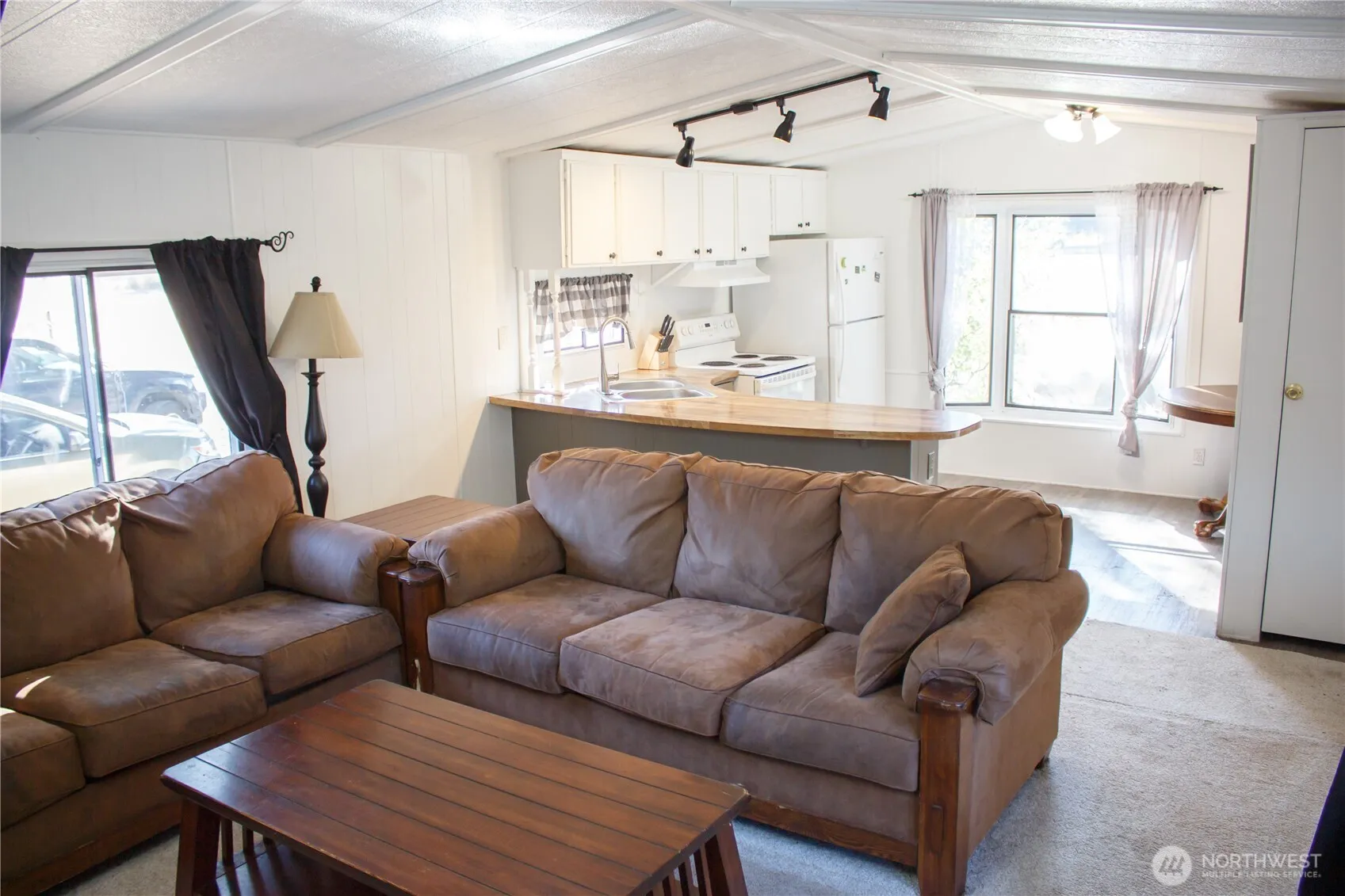An affordable way to enjoy the country life! Come see this 924 SqFt single, 2 bedrooms 1 bath home with an open living room, dining and kitchen area. Primary is spacious, plus another bedroom. Easy to care for metal siding and metal roof atop a concrete block tie down foundation. All this is close to town, to amenities and an easy commute to JBLM. Washer and dryer convey.