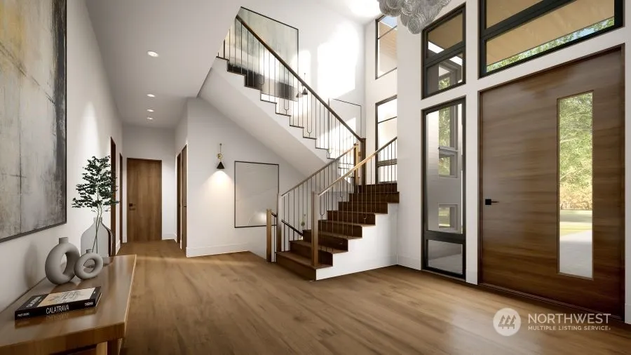 Experience opulent living in Medina Heights by Thomas James Homes. This custom NW Modern masterpiece offers 6 bedroom suites, gourmet and scullery kitchens, a grand suite, versatile spaces, fitness room, office, bonus room, wine cellar, and a private rooftop deck with captivating lake views. Nestled in a desirable community near Seattle, this home provides unparalleled access to top schools, upscale shopping, and fine dining. Move into this new construction residence in Sep 2024 and enjoy its East-facing orientation, providing sunrise to sunset exposure, along with an outdoor covered terrace and a spacious southern sun-soaked side yard.