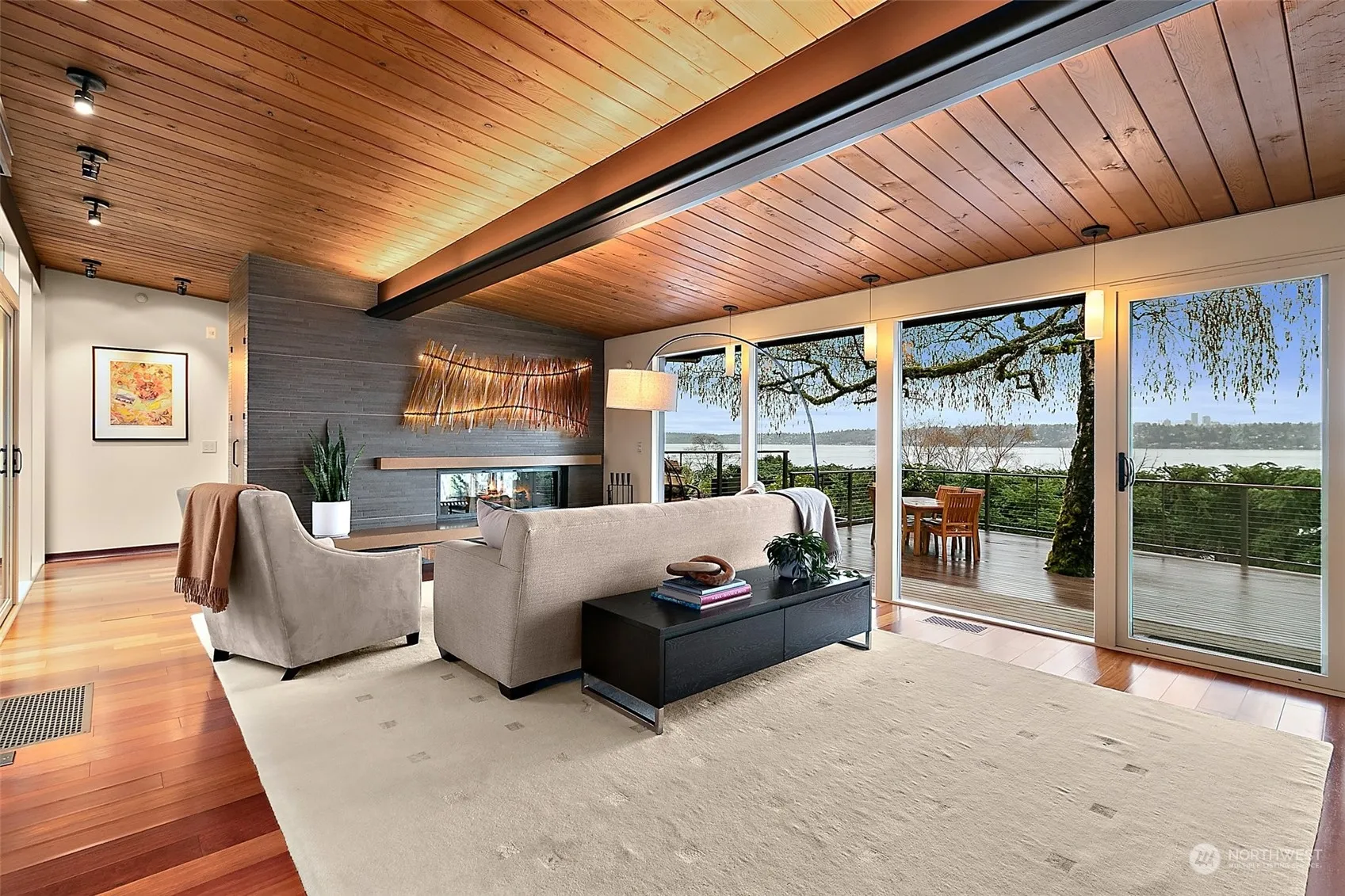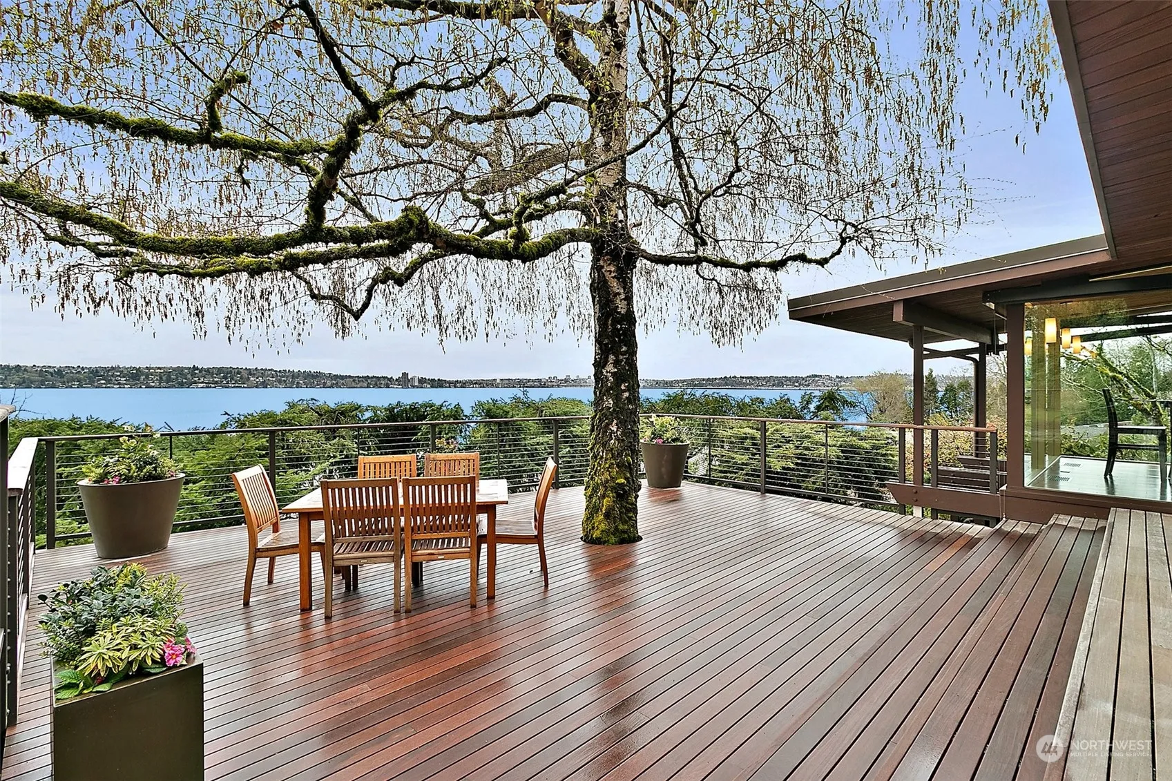 Stunning mid-century modern home boasts the best of Medina lifestyle w/timeless sophistication & serenity. Floor-to-ceiling WEST facing windows w/custom remote blinds allows spectacular & awe-inspiring 180-degree Lake Washington, Seattle skyline & Olympic mtn views! Ultimate floorplan design for max privacy w/primary bedrm & spa-like luxury bath on private wing. Kitchen/dining, social area & office all on main floor + elegant downstairs guest quarters. Radiant heated flrs thru-out & dual-sided fireplace. Entertain on the WEST facing deck or relax in the secluded EAST-facing Zen Garden. Minutes to top-rated Bellevue schools/trails/parks, 405/520, shops/dining & more! SMART tech systems, plumbed for hot tub +private beach access. PREINSPECTED