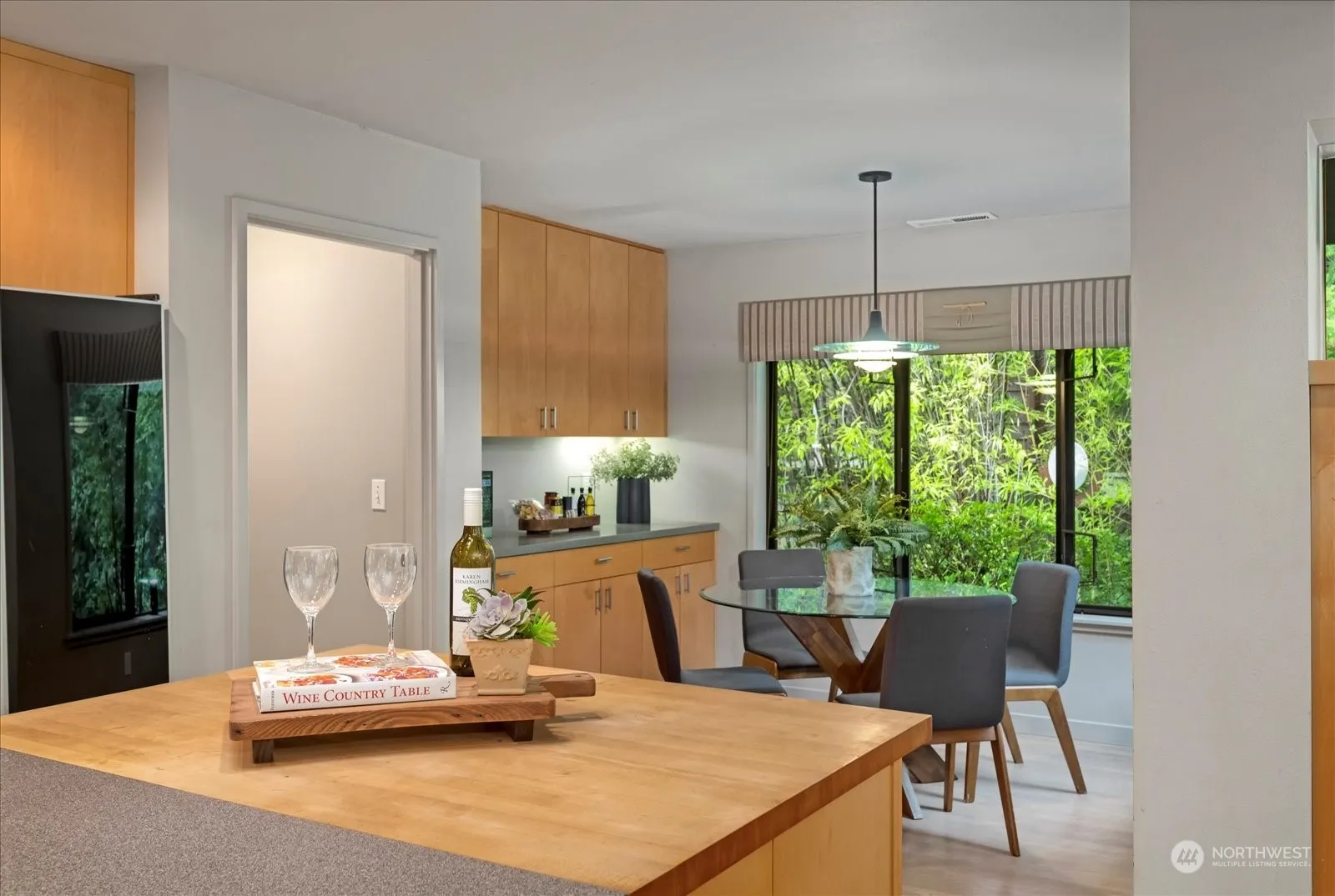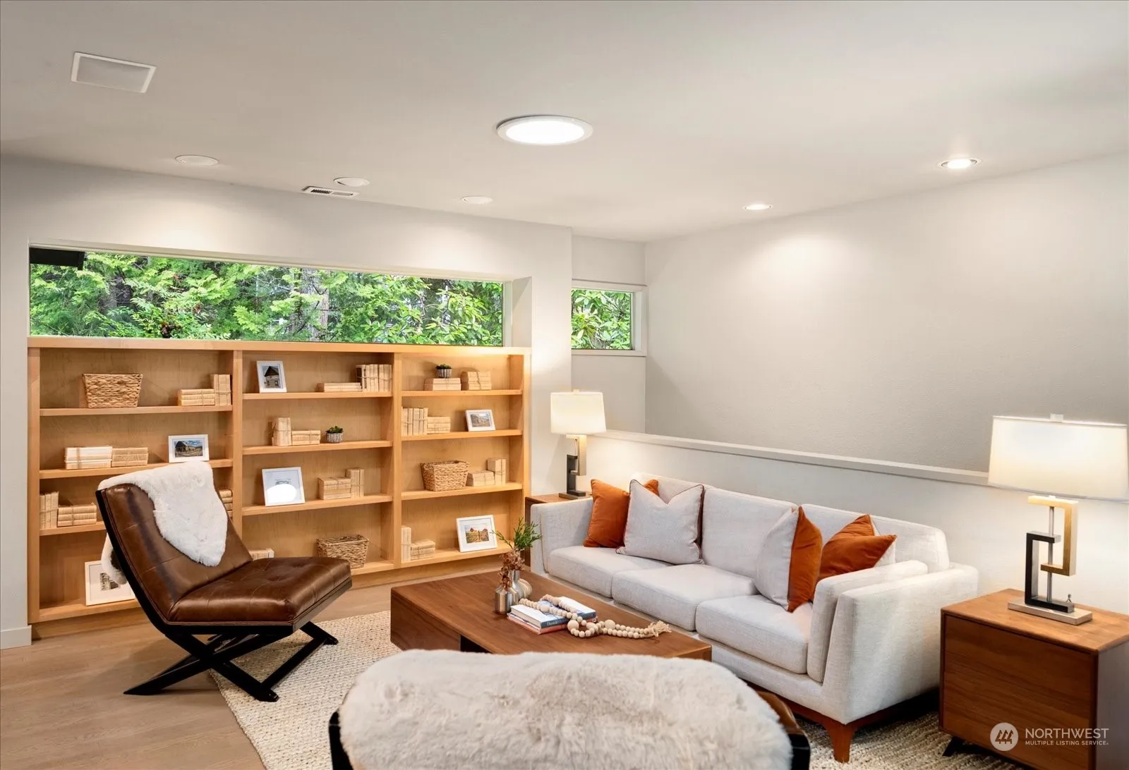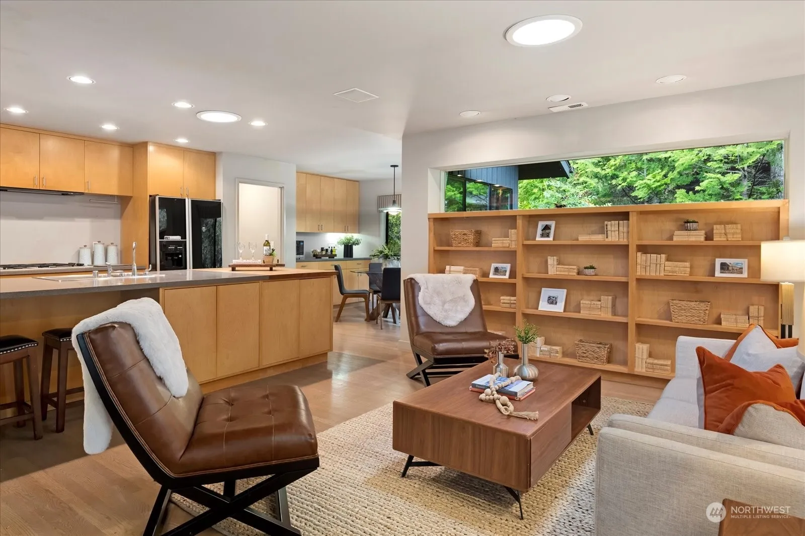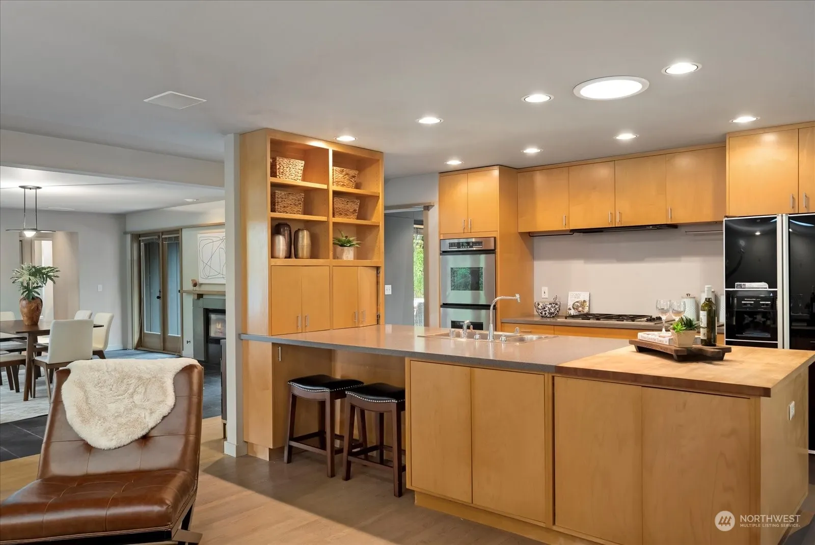 Comfortable mid century modern home w/ lots of charm located on much desired street in heart of Medina. Primary bedroom w/ bath on the main floor. 4 bedrooms, 3 bathrooms, cozy living room w/ fireplace & vaulted ceilings & book cases galore, dining room w/ fireplace & french doors that opens to back deck. Open & spacious family room, kitchen w/ eating bar and kitchen nook. Very quiet, private secluded back deck & yard w/ hot tub. Partially fenced yard w/ garden space. One car garage & carport. Home was remodeled a few years ago – bring your updating ideas. Great location!!! Walk to schools, (Medina elem school 1/2 block away) parks, churches, Medina dog park located just down the street. 4 blocks to Medina beach & Medina Kitchen market.