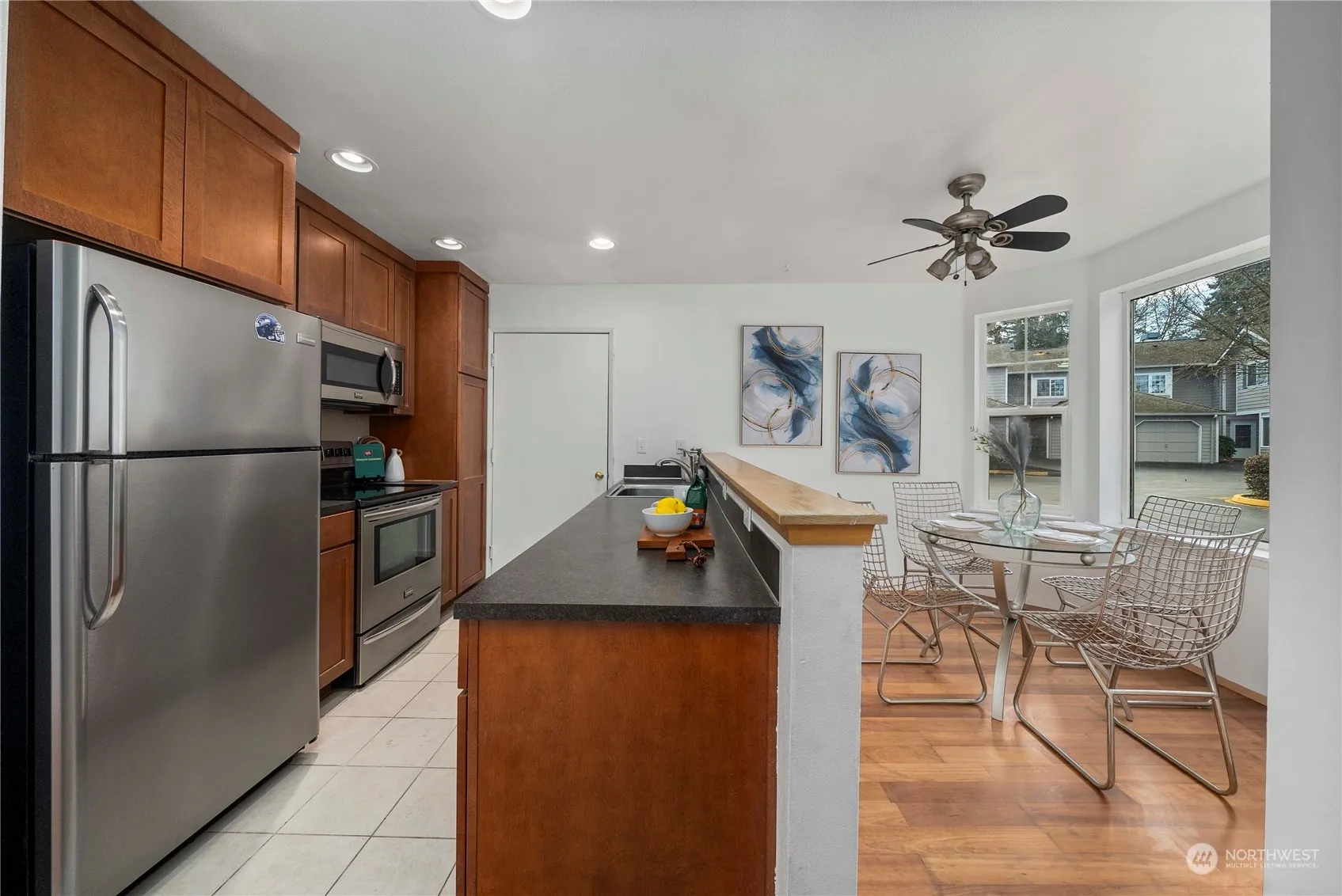 Welcome to Wildcliffe Shores and your new townhome, beautifully updated with new flooring throughout, fresh paint in every room, and updated light fixtures! Step into the stylish kitchen adorned with sleek stainless-steel appliances overlooking the dining area. Entertain effortlessly in the living room, complete with a cozy wood-burning fireplace. Unwind on the back deck, ideal for grilling. Upstairs, discover the 2 bedrooms and the full bathroom. Abundant storage options throughout the home, and in the attached garage. Additional guest parking ensures hassle-free entertaining. Explore the walking trails & the charming gazebo. Easy access to Rhododendron Park, Marina, Inglewood Golf Club & Burke Gilman trail.