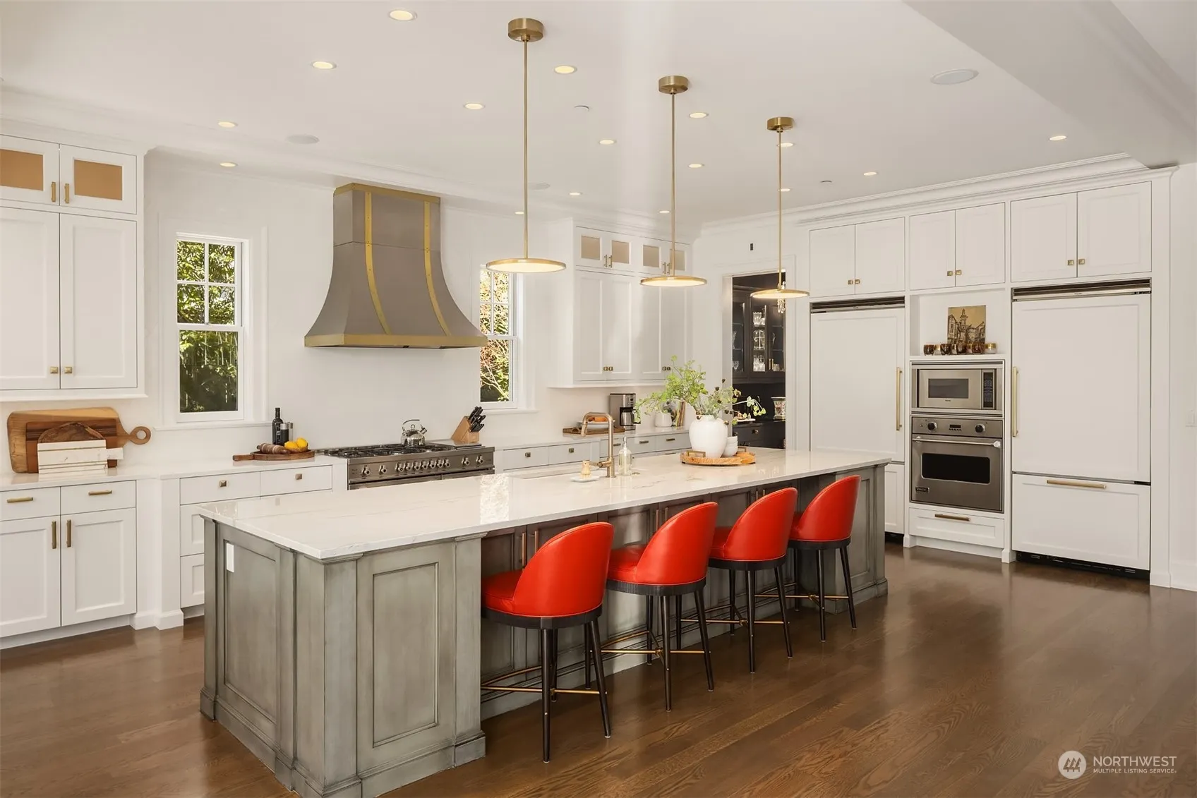 Elevated Hamptons style in the heart of Medina Heights. A perfect balance between classic & fresh with a light, airy aesthetic incorporating rich design details & refined interiors including wood floors, high ceilings & fabulous lighting. Both formal & casual living spaces are warm & richly layered in the tradition of homes that only get better over time. The updated kitchen boasts a generous island, 6-burner range & butler’s pantry. Nothing is missing in 7,080 sq ft: 4 bedrooms up plus one on the main (currently an office), 5.5 baths, bonus, theater & rec room. Seamless interior & outdoor living offering privacy all around: lush gardens, trellised dining, built-in BBQ & fire pit. Coveted location close to world-class Bellevue amenities.