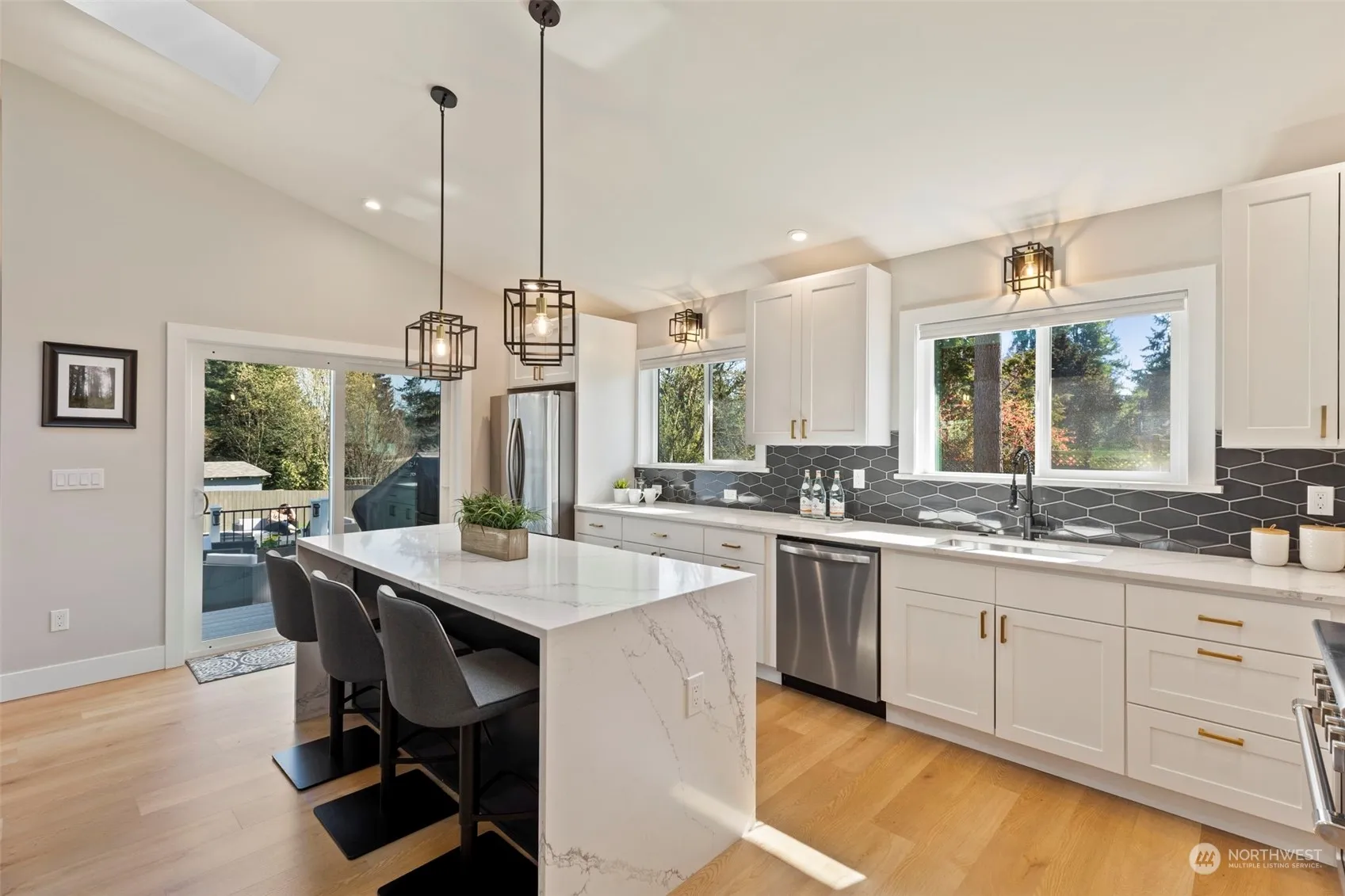 Welcome to this meticulously updated tri-level home offering a perfect blend of modern luxury and comfort. Spacious 3 bd home is completely customized with modern finishes throughout; custom closet, high-efficiency heat pump w/central A/C, commercial grade gas range with pot filler, electric car charger outlet and over $35K in outdoor improvements. An entertainer’s dream! Sip coffee with the sunrise in the private back yard, unwind after a long day in the hot tub, BBQ on the 2-tiered back deck/patio with built in gas, or simply cozy up in the great room with the gas fireplace. The possibilities are endless in this beautiful home perfectly located in a quiet neighborhood that’s close to downtown Kenmore and 1.6 miles to Log Boom Park.