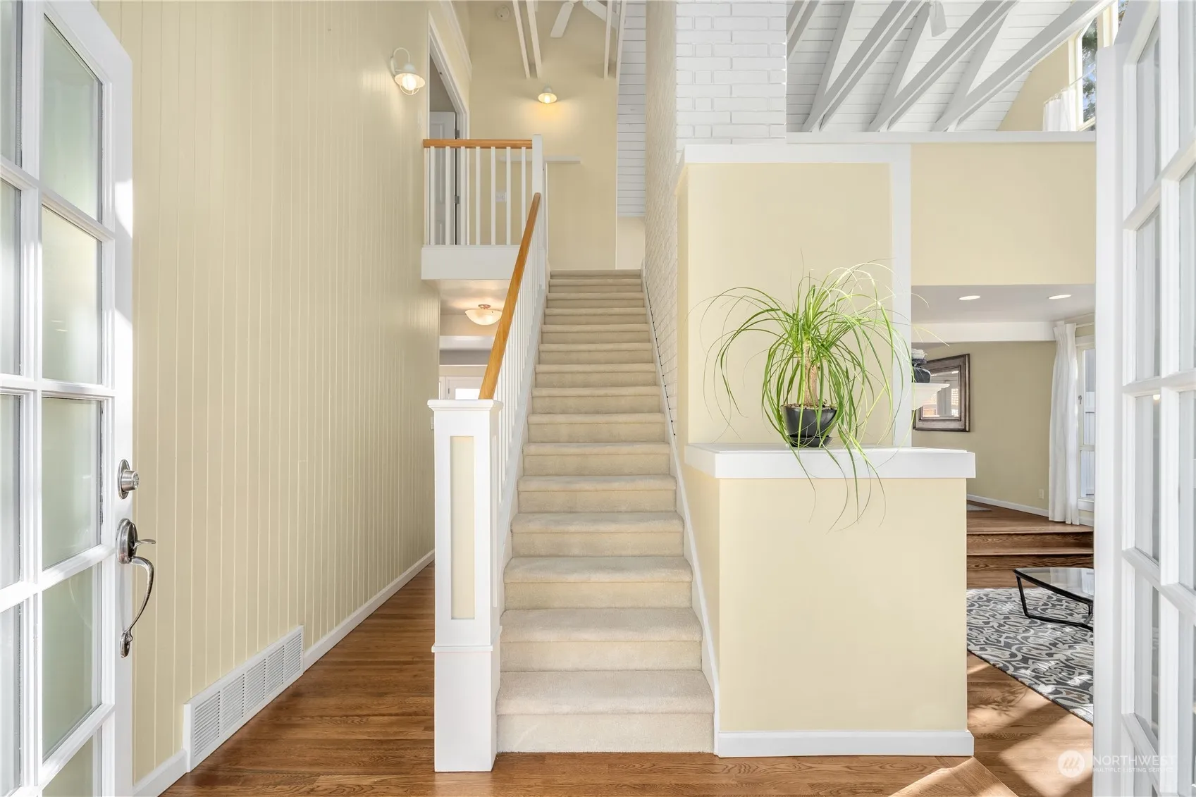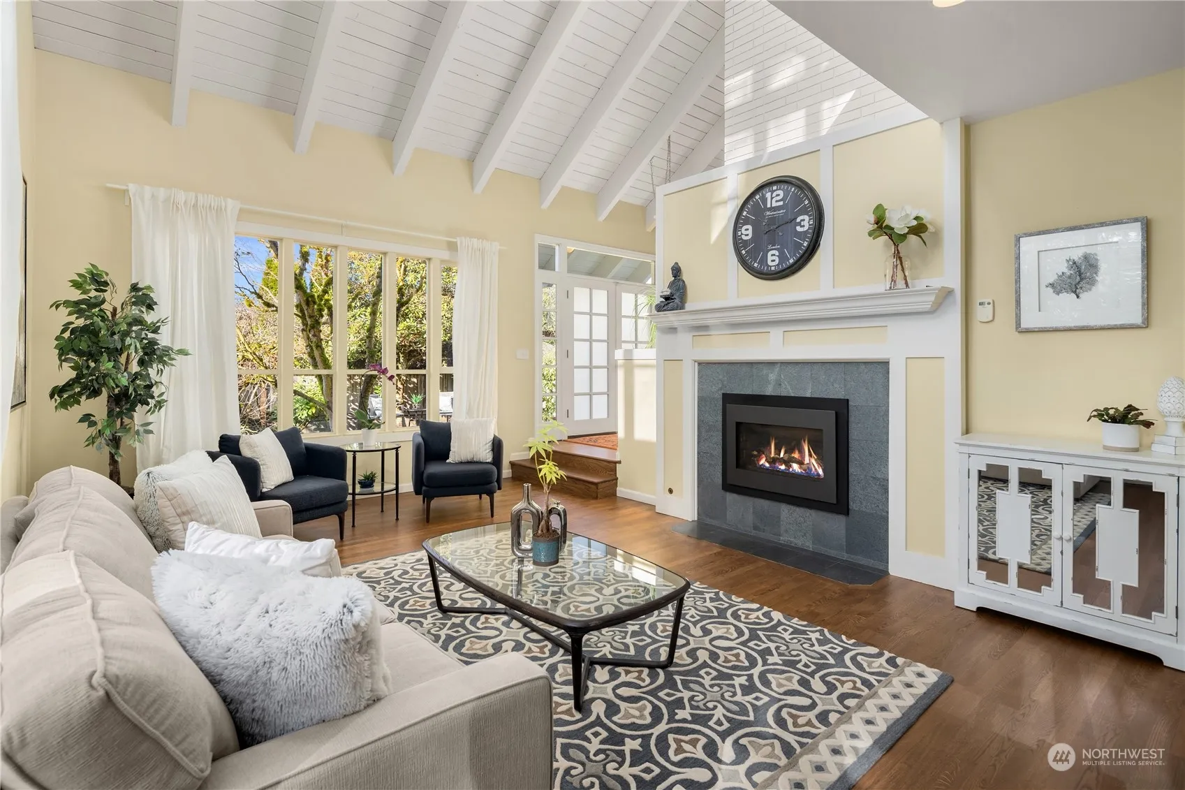 Updated corner-lot home in the coveted Inglewood neighborhood! This 2850 sqft 4 bed, 3 bath offers an abundance of natural light and vaulted cathedral ceilings with exposed beams. Gorgeous refinished hardwoods throughout! Chef’s style kitchen with quartz counters, large island, and skylights. Primary bedroom with ensuite on the main level, and 2 other spacious bedrooms with all new carpet! Second primary bedroom with ensuite on the upper level along with a massive balcony style loft! Enjoy longer daylight hours outside on the large patio or relax under the covered cabana and deck. Don’t miss the outside flex room great for an office, play space, or exercise room. All new exterior paint! Award winning Northshore Schools!