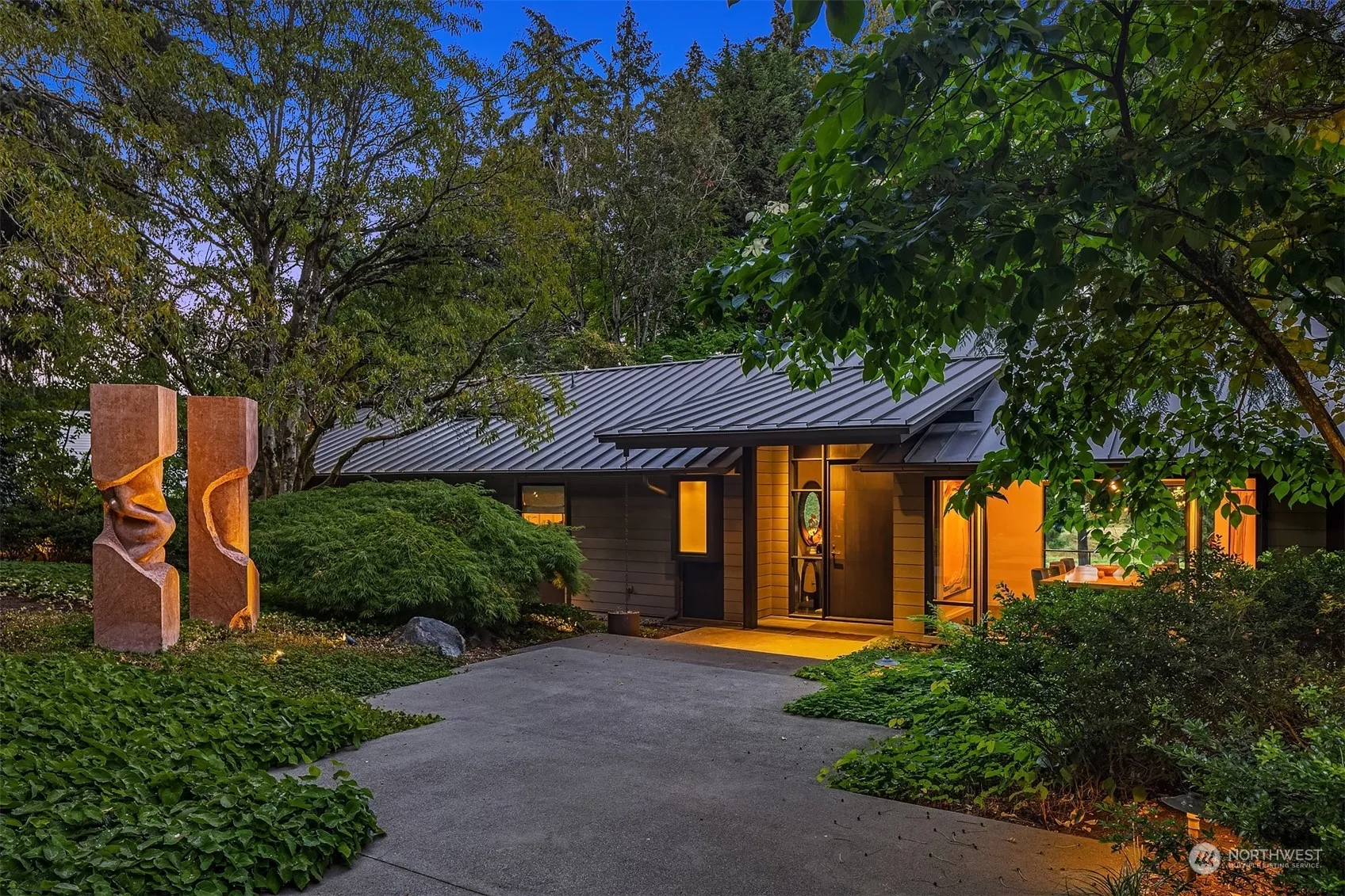 Discover premier living on Medina’s beautiful Overlake Golf & Country Club. This architecturally significant PNW home was completely renovated in 2016 and enjoys a unique setting at the end of a cul-de-sac— minutes from Bellevue & Seattle. The home greets you with expansive fairway views and unfolds almost entirely on a single level. A sunroom of cedar and glass opens up to the park-like setting for seamless indoor-outdoor entertainment. The private living spaces are all sanctuaries. Outside, the property boasts landscaped grounds, all set against the golf course’s scenic backdrop. Office; guest suite; home gym; attached 3-car garage. This home encapsulates sophisticated living, merging elegance with the natural beauty surrounding it.