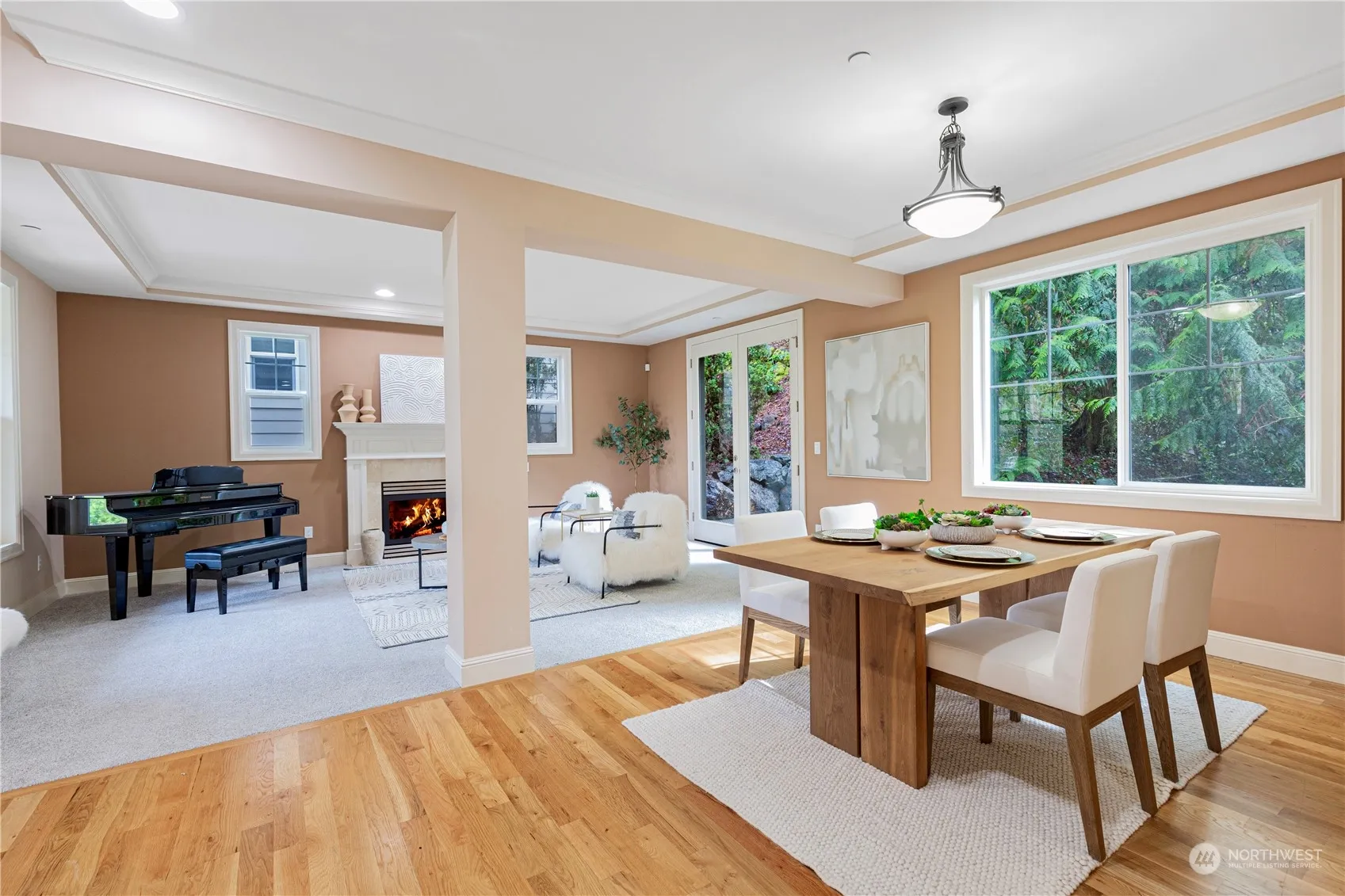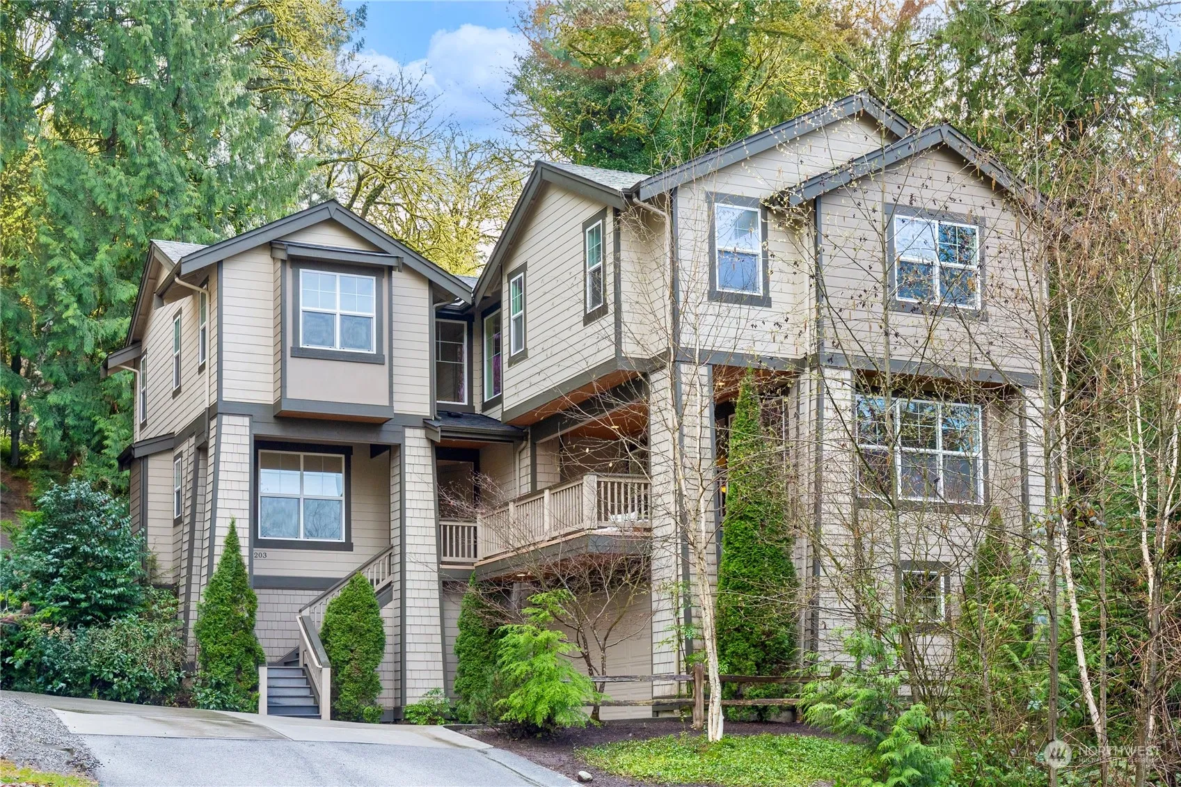 Tucked away amidst the trees, this 2008 gem is ready for immediate occupancy. This 4-bedroom, 2.5-bathroom home showcases a stunning chef’s kitchen equipped with granite countertops, stainless steel appliances, an island with an eating bar, spacious living areas, large bedrooms with built-in desks, two fireplaces, and two bonus rooms. Its meticulously maintained classic design features formal living and dining rooms on the main floor, along with a vast great room and an entertainment deck off the kitchen. Freshly installed carpet. A haven of privacy and tranquility awaits. Conveniently located with easy access to highways and the highly rated Northshore School District.
