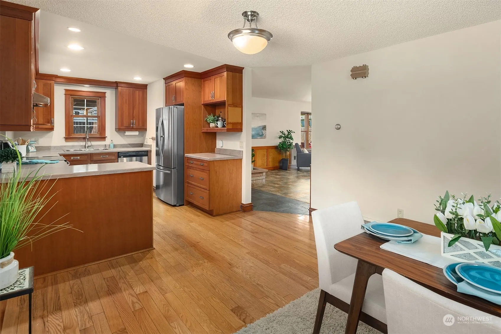 Mid-Century Rambler with great floor plan in desired Kenmore location. This 1,620 SF one-level home lives large with spacious living room w/fireplace, window seat and custom wainscoting. Remodeled kitchen with gorgeous cherry cabinets w/pewter pulls, an abundance of cabinets, huge dining room. 3 bedrooms and 1.75 baths. Large laundry room with extra hobby & storage space. New interior paint. Hardwood floors. If you love spending time outdoors you will enjoy the beautiful private backyard with garden space, slate patio with gazebo, 10×15 shed and 12×20 small shop w/loft & 220amp. Home is pre-inspected. Located just minutes to all amenities, parks and miles of trails. Northshore School Dist.
