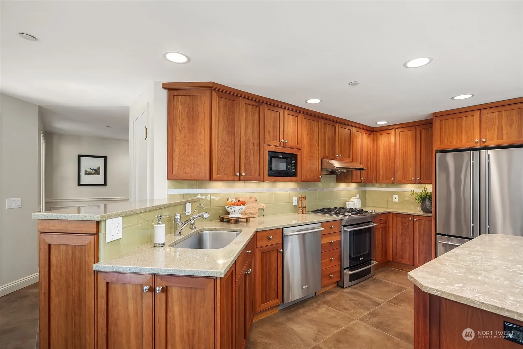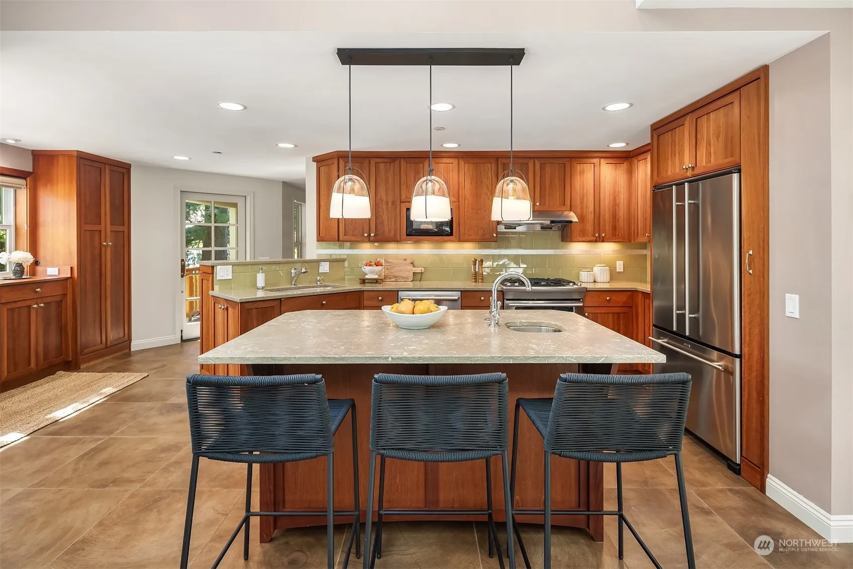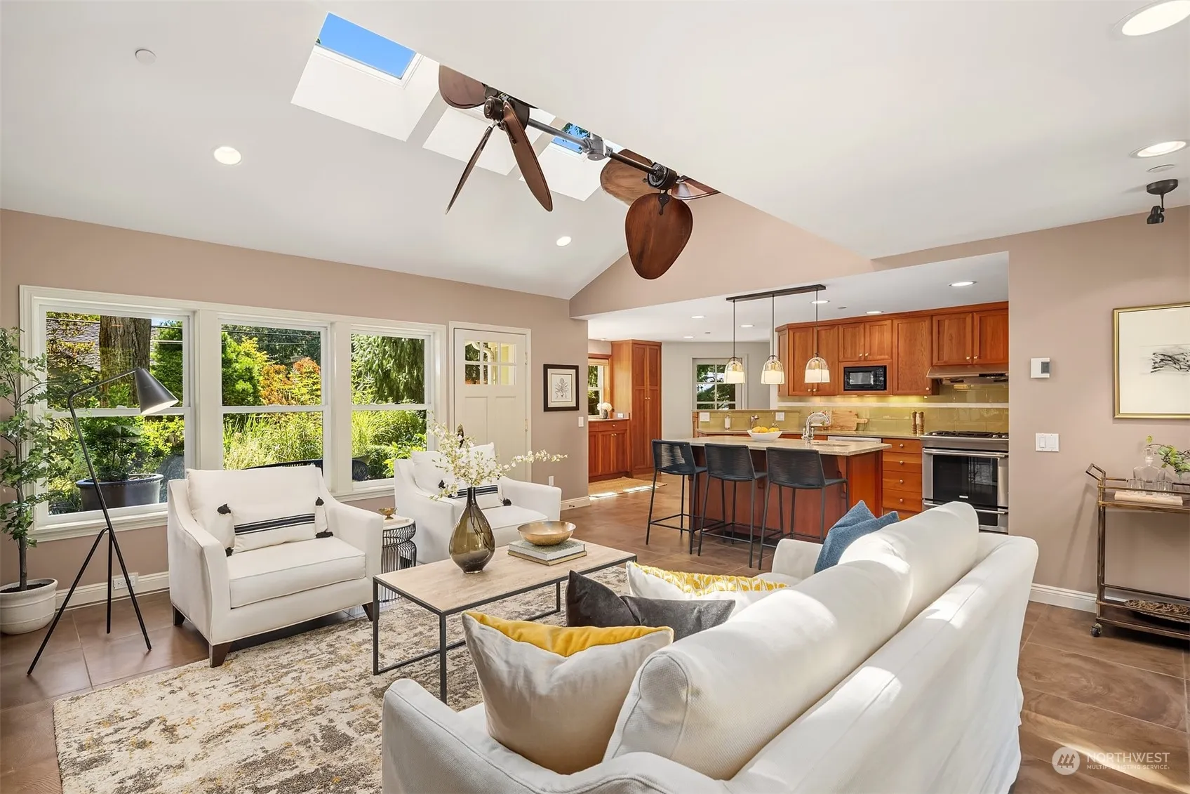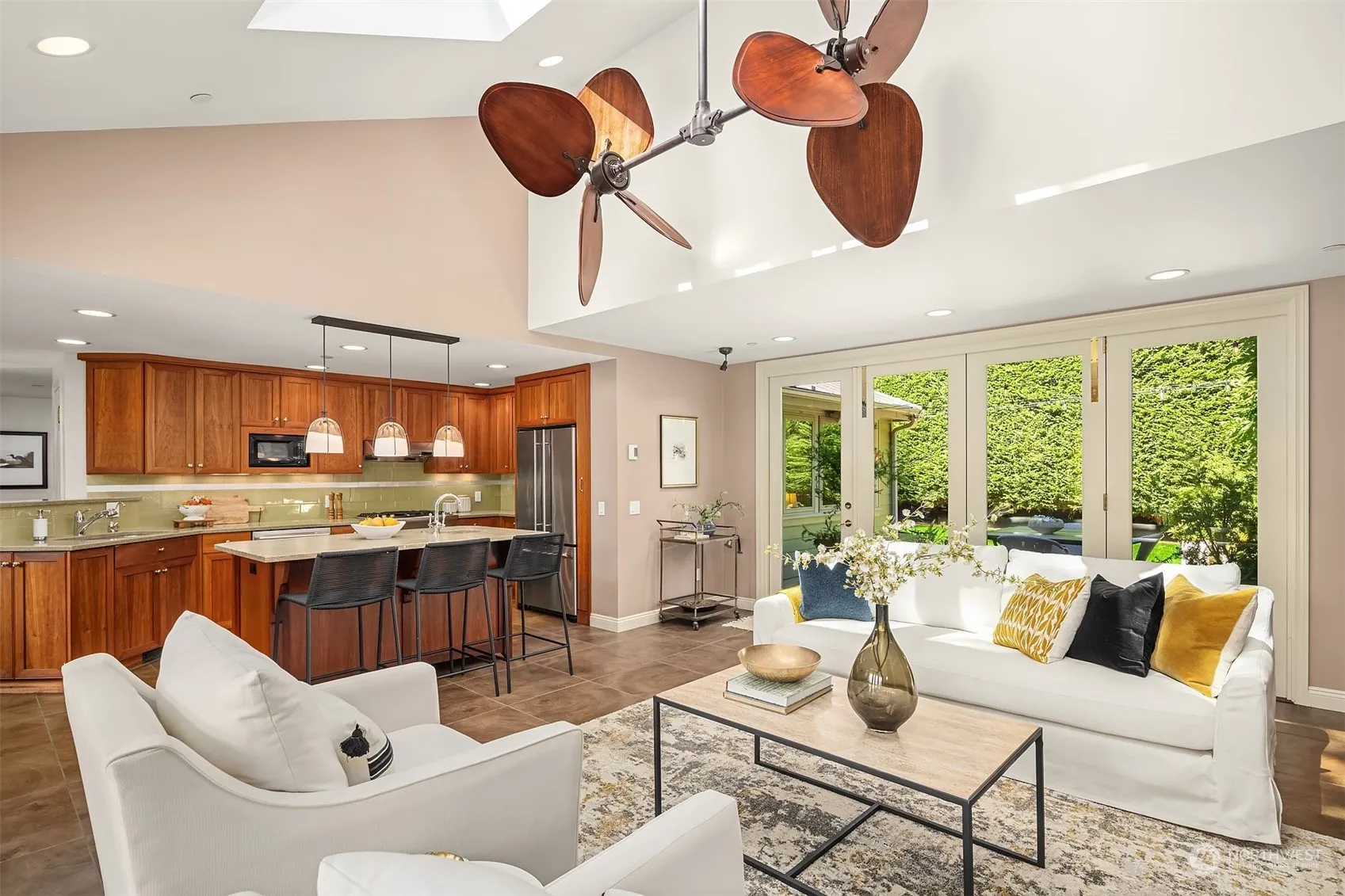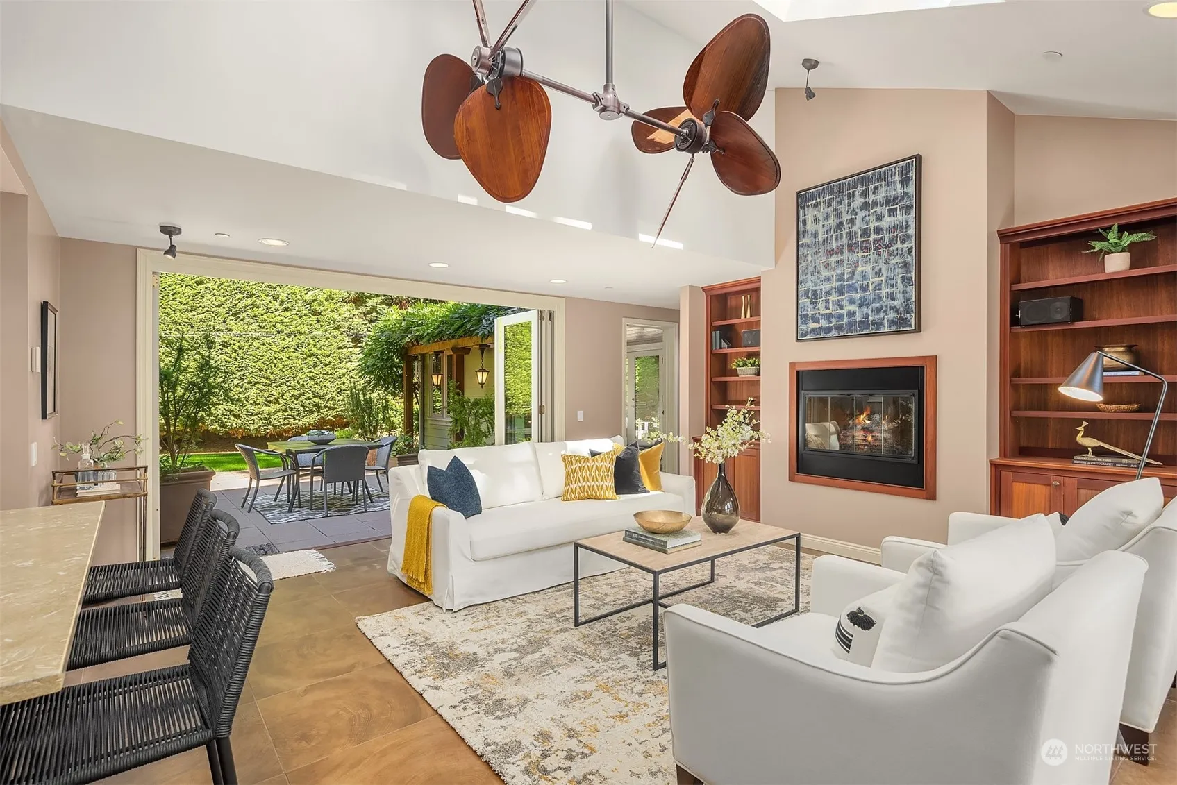 Thoughtfully re-designed in 2011 with flexibility at the forefront, this haven surrounded by an abundant landscape offers a tranquil retreat. Captivating great room accented with woodsy warm radiant tile floor, sun filled skylights and a nano-style glass wall blurs the lines between inside and out, seamlessly extending the living area out into the garden. Overlooking the grand tree-lined street, the primary suite offers a quiet sanctuary and a bonus area perfect for an office, nursery or dressing room. Large third bedroom can easily transform into a media lounge or hobby space. Those looking for outdoor relaxation and reflection will be drawn to the various gardens, including the outdoor spa, encased in a lush green wall of privacy.