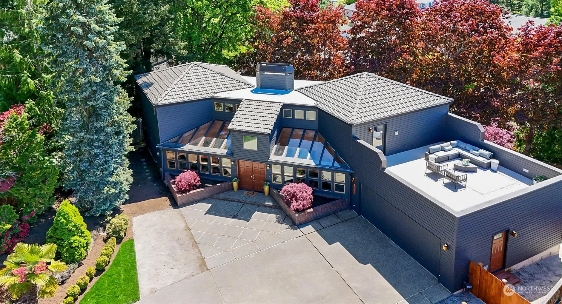 Stunning home located in sought after Kenmore in the Nshore School District.As you enter this home you step into a beautiful plant solarium that is one of a kind.This 5 bedroom,3.25 bathrooms is updated throughout w/new carpet,new interior & exterior paint,new sod & landscaping & freshly refinished real hardwoods w/ new gas fireplace to cozy up to in the amazing sunken living room.Bedroom on the main can be used as an office or broom with 2 laundry rooms.This home features a downstairs basement w/ 2 brooms & a full kitchen & laundry for possible rental potential & movie theater room,upstairs features 2 bedrooms w/a primary ste, loft & rooftop deck for the best sunset views.Near Saint Edwards Park & Inglewood Golf Course.