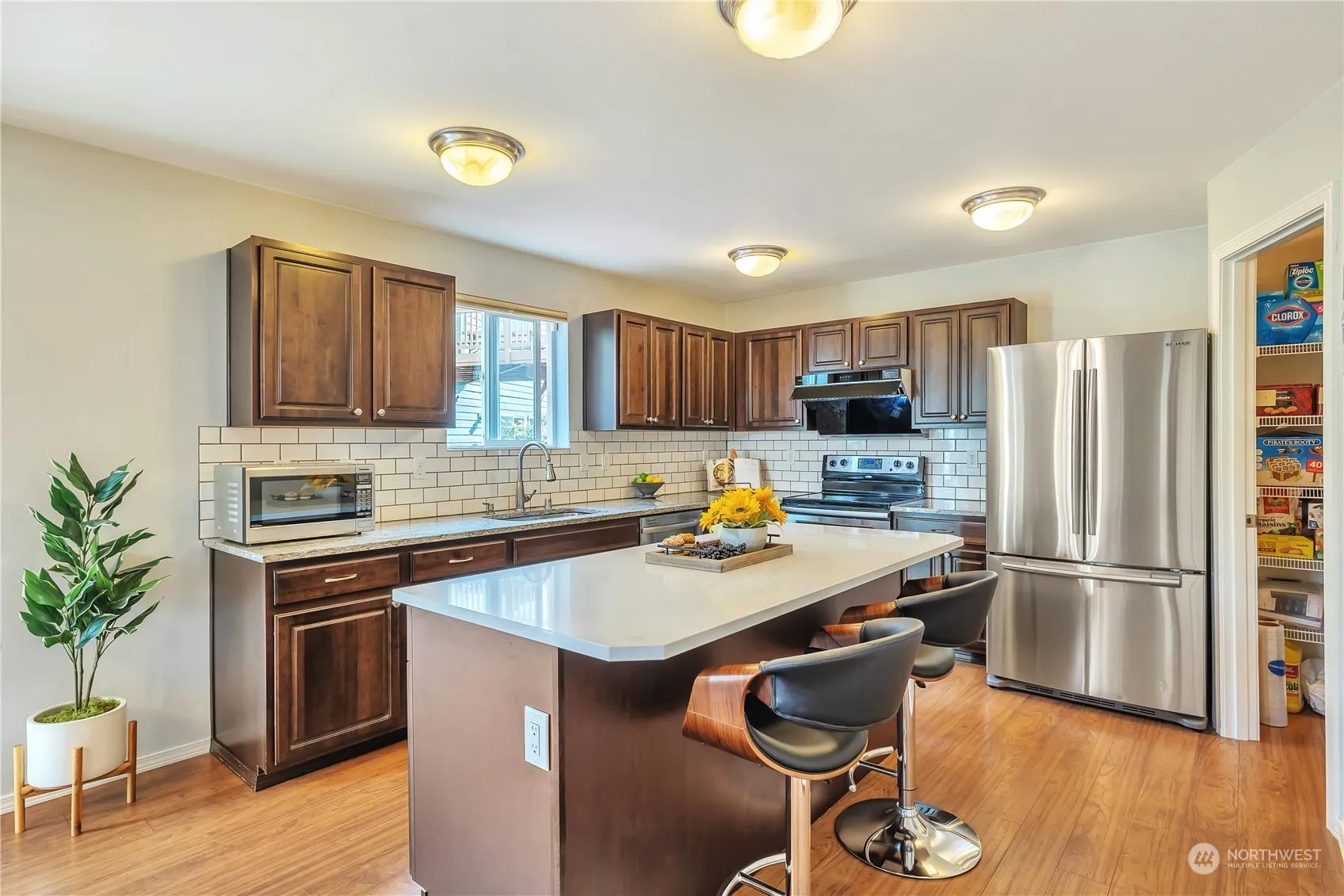 Bright and cozy 4-br Kenmore home! Open floor plan with sunny exercise area connected to family room. Well updated kitchen with granite counters, modern tile backsplash, Stainless appliances, large Island and pantry! Large entertainment deck with built-in benches leads to private hot tub and welcoming fire pit. Master bedroom featured with relaxing sitting area & 2 walk-in closets. 3 additional bedrooms, full bath and bonus living space complete the upper level. Gas fireplace and Heat pump to heat and cool. Great Northshore Schools. AC is ready for a cool summer!