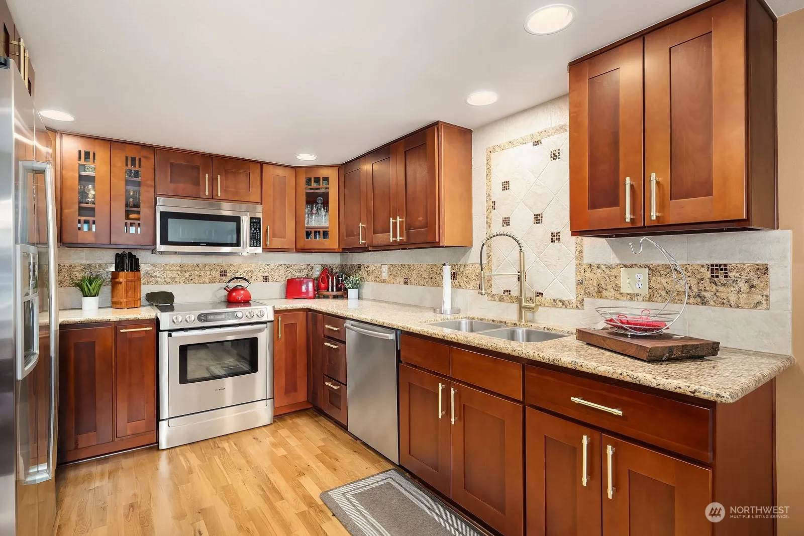 Impeccably maintained townhome style condo in the Rose Garden community! Located on a peaceful dead-end street, this home offers 1,548 sqft, 3 beds and 2.5 baths. Gorgeous main level hardwoods welcome you to the open concept living, dining, fully renovated kitchen area with high end SS Bosch appliances and elevated cabinetry. Upper-level massive primary with gorgeous ensuite and walk-in closet. 2 other spacious bedrooms complete the upper level with fully renovated bathrooms. Enjoy an easy to maintain courtyard style patio with gardening space! 2-car covered garage and excellent HOA. 2-minute walk to Burke-Gilman Trail, shops, dining and entertainment! Easy access to 522/405. Northshore school district.