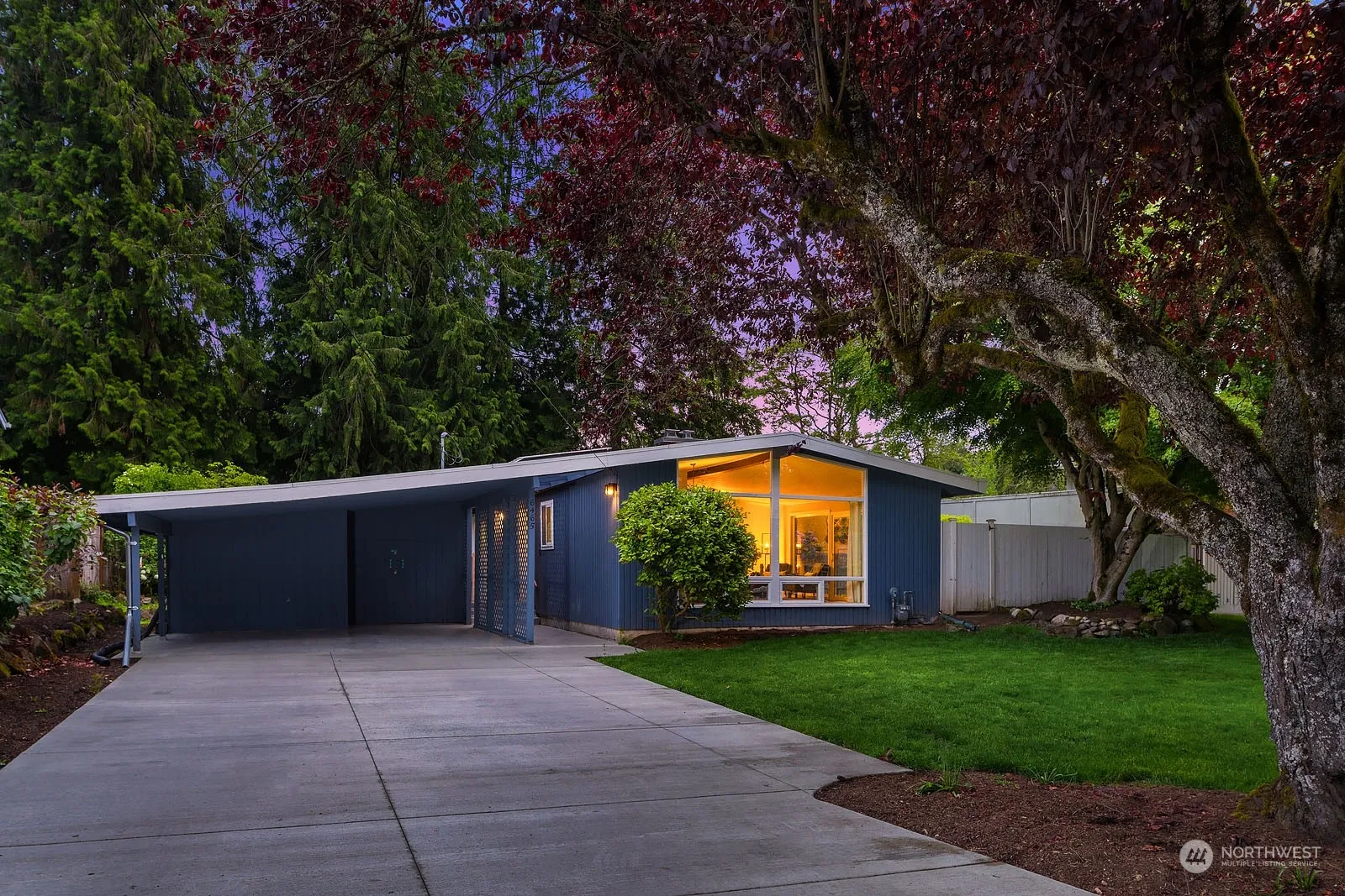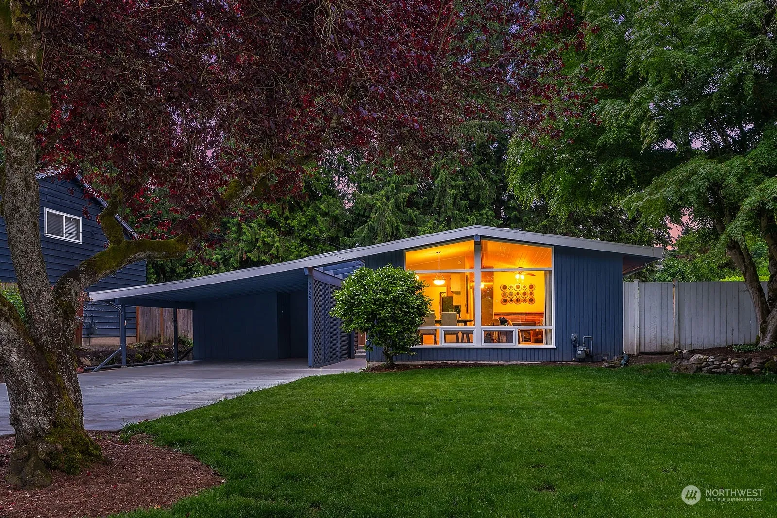 Exuding timeless architectural pizzazz, you’ll dig the vibe of this move-in ready mid-century modern stunner set on a spacious 1/4 acre lot in sought-after Arrowhead Point! Alluring curb appeal with lush ornamental trees, deep new driveway, sleek sweeping carport & covered courtyard entry. Stylish period details throughout include T&G open-beam cathedral ceilings, pristine hardwoods, roman brick fireplace & dazzling walls of expansive floor-to-ceilings windows. Grand living room blends seamlessly to massive paver patio. Dining space opens to kitchen with quartz counters. 4 beds & 2 baths include primary bedroom with custom walk-in closet & lavish upscale ensuite. Short walk to elementary school, parks & miles of forested beachfront trails!