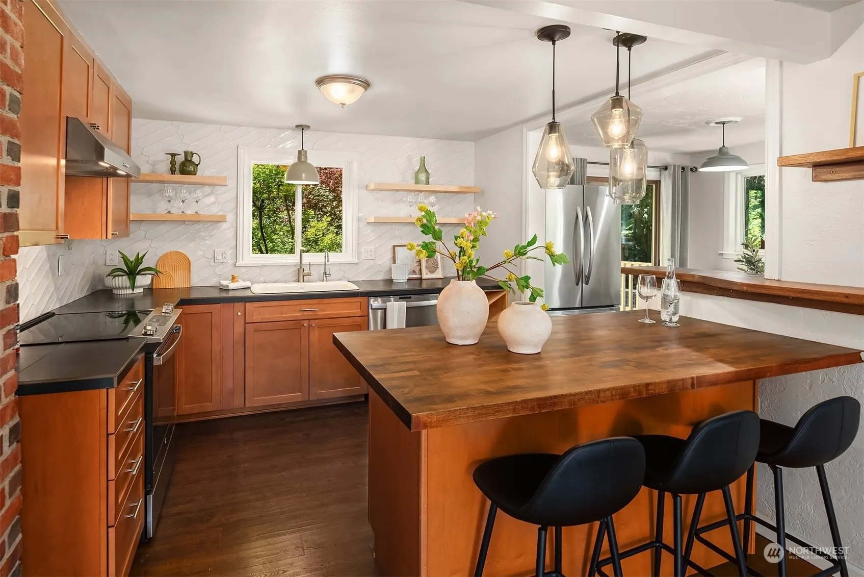 {{Perfect Kenmore Retreat}} Delightful 3-bed, 1.5-bath cottage-style home presents w/ a freshly painted interior, updated kitchen w/butcher’s block breakfast bar & porcelain counters & formal dining space. The lower level features a bedroom w/ French doors leading to a tranquil patio. Outside, immerse yourself in a lush oasis, mature gardens, a fully fenced backyard w/ a covered deck, patio, paved walkways, & a charming garden folly. Water features round out this gardener’s paradise, yet easy to maintain. Downstairs features a heated workshop & outback is an artist studio, this extraordinary home offers a serene and enchanting living experience. Updated plumbing and electrical. plenty of parking & EZ access to shopping. Make It home today!