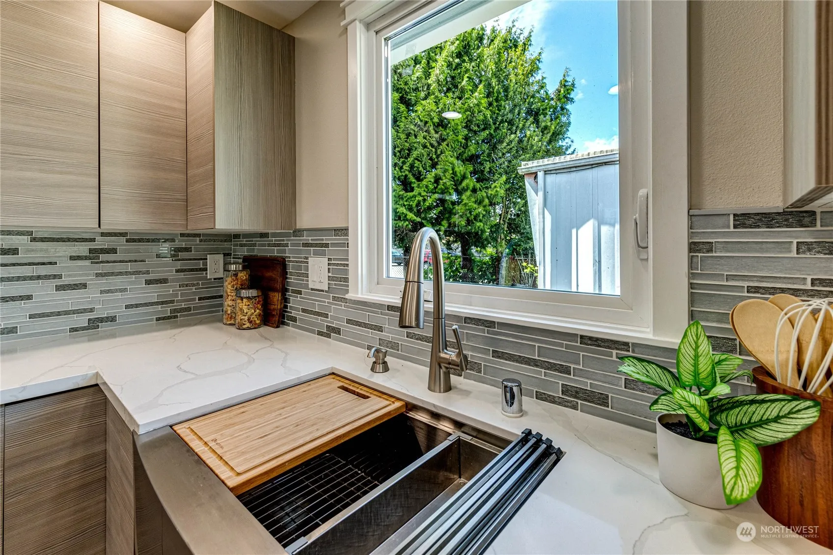 No surface untouched in this better than new remodeled 2 bed/2 bath home in desirable Lakewood Villa MHC 55+ Park. High end finishes at every turn with LVP floors throughout, new kitchen with quartz counters, generous island, & modern cabinets, two gorgeously updated baths with tile floors/enclosures. Entertainers dream with open living area leading to refinished covered deck. Two parking spots sit next to well maintained lawn. Park is set along beautiful Sammamish River, offering owners a riverside picnic area with wonderful array of wildlife & several public waterside parks & boat launches within minutes, some walking distance. Ideal location minutes to transit, restaurants, shops, Burke-Gilman trail, services, parks, & easy 405 access.