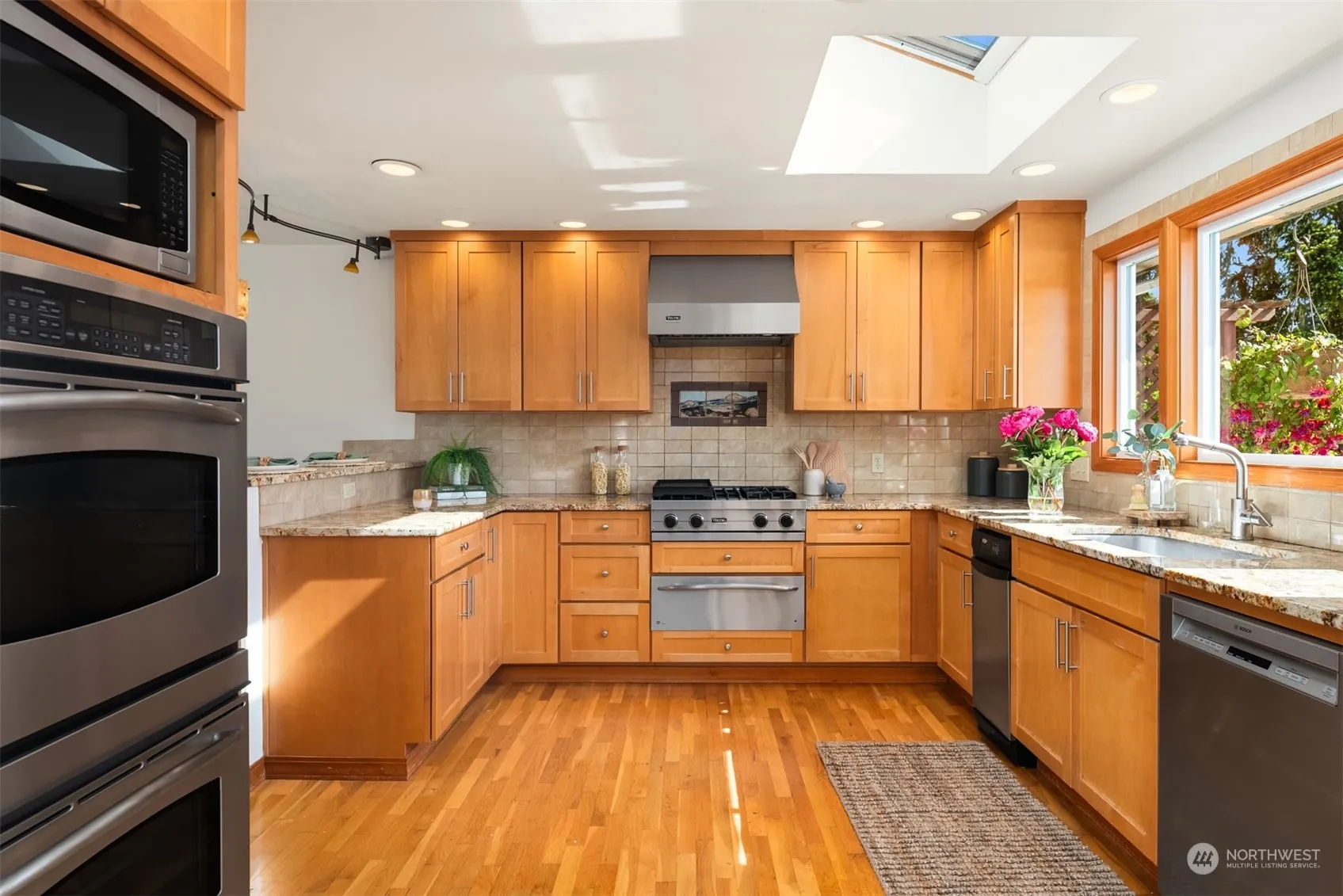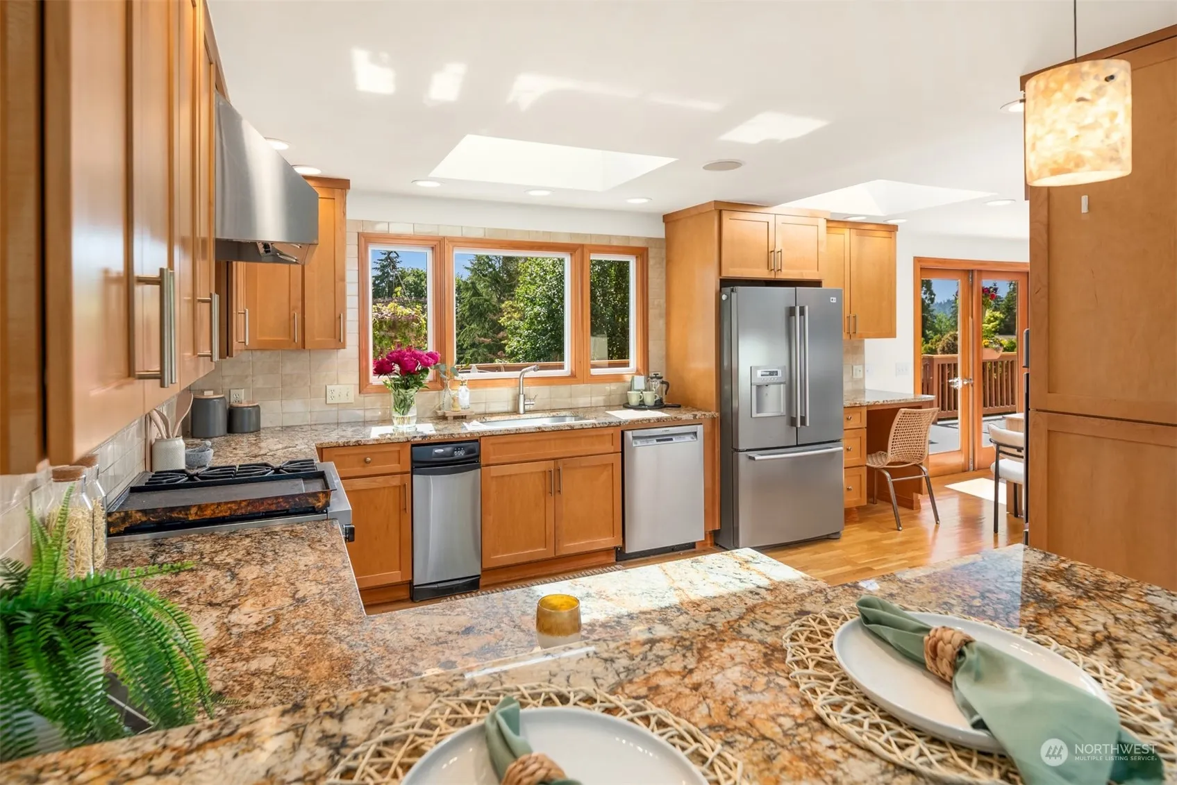 Discover a beautifully remodeled haven in Kenmore. Perfect for entertaining, this home offers everything you need to host memorable gatherings. Entryway & living area are filled w/ natural light. Hardwood floors. Kitchen features a Viking stove, double oven, warming drawer & wet-bar. Large primary bd w/ ensuite opens up to expansive deck w/ double doors. Fully finished lower-level is designed for versatile living, boasting a living area, bedroom, 3/4 bath/mudroom, & a guest-ready kitchen. Heated pool w/hot tub. The pool-house conveniently holds all pool toys & equipment. Fully-fenced yard provides plenty of privacy. Fresh interior paint breathes life into every room. Close by to Burke Gilman Trail, Inglewood Golf Club, & Rhododendron Park.