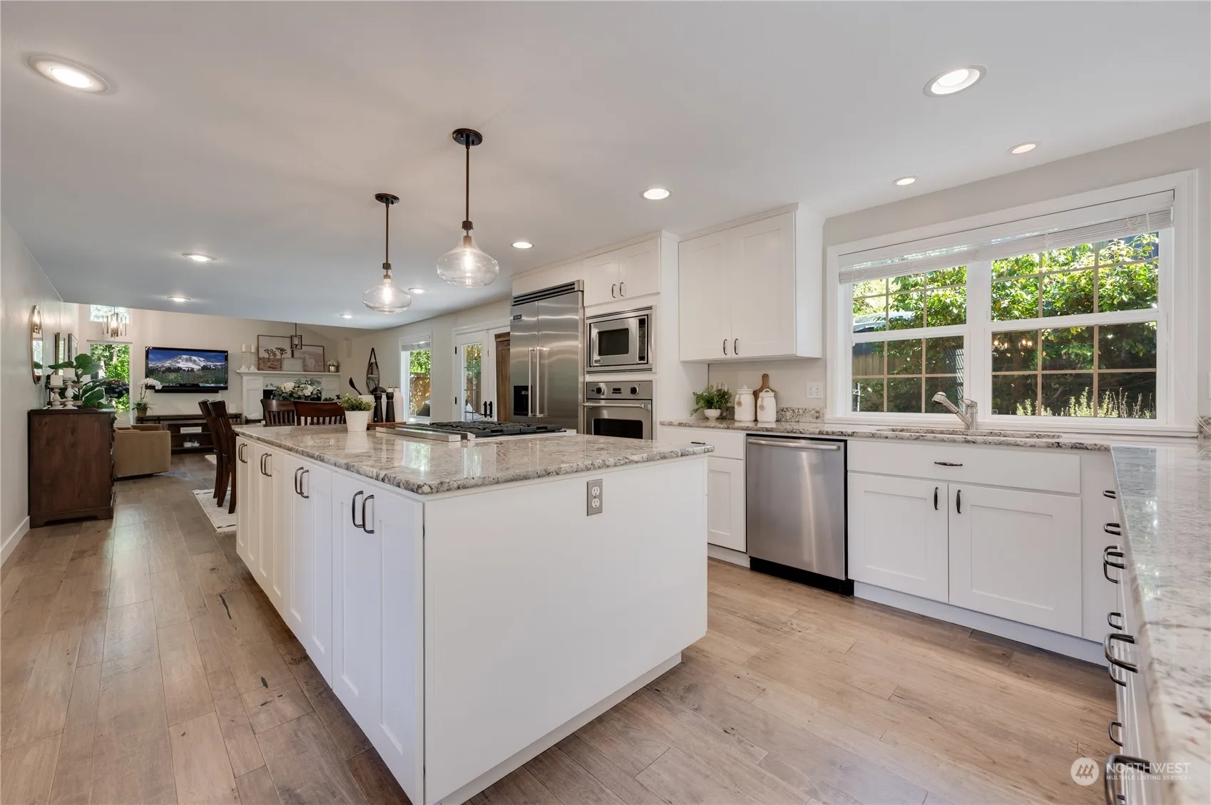 Nestled on the 12th hole of the Inglewood Golf Club, you will find tranquil living in this home where virtually every inch has been updated. Outside – a spacious, covered Trex deck w/course views, peek-a-boo lk views, 2-car gar & an expansive driveway to accommodate all your cars & toys. Inside – the amazing kitchen w/breakfast nook, bar seating, dining area & tons of storage. Vaulted ceilings soar in dual living rooms, all bathrooms have been remodeled, 4 bedrooms + bonus rm + laundry upstairs. Newer flooring, light fixtures, doors & trim throughout the home. A/C, updated insulation & a reliable generator ensure comfort, efficiency & peace-of-mind. The home marries modern amenities with magazine-ready style. Just sit back, relax & enjoy!