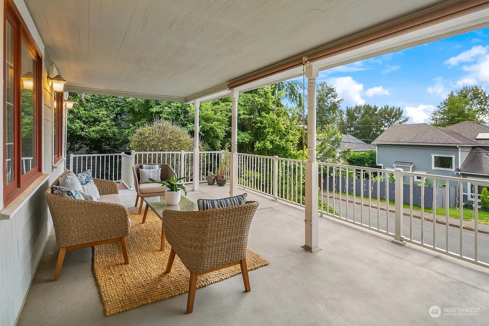A piece of history – Original Farmhouse! Charming & spacious farmhouse-style home filled with character, thoughtful design, & all modern finishes. Full, studs-out remodel in 2004 w/ a new foundation, fiber internet, seismic retrofitting, electrical, sewer lines, plumbing, siding, cat 5e wiring, electric car charger, 264-bottle wine storage, 1000sf wrap-around deck, & more. High-end, soundproof media room w/ equipment included. Bedroom & full bath on the main floor, primary en-suite w/ private balcony. Original, old-growth clear fir hardwoods, wainscotting, gas fireplace. Skylights add an abundance of natural light. Great Airbnb/VRBO rental. NO HOA! New covered waterproof deck 2017, A/C 2018, Stove 2023. Award-winning Northshore Schools!