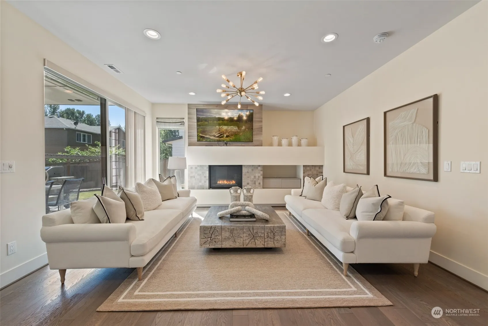 Featuring 5 bedrooms, 4 bathrooms, and a spacious 4-car garage, this home prioritizes comfort. The upscale kitchen impresses with designer cabinets, quartz countertops, stainless steel appliances, and a convenient drink station. Relax in the luxurious master spa bath and enjoy the elegant closet space. Upstairs, find an additional en-suite bedroom and a bonus room, complemented by a main floor bedroom/den and bathroom. Complete with air conditioning, the sunlit yard is fenced and professionally landscaped, complete with a sprinkler system. A covered, heated outdoor patio makes it perfect for gatherings throughout the year. Welcome Home!