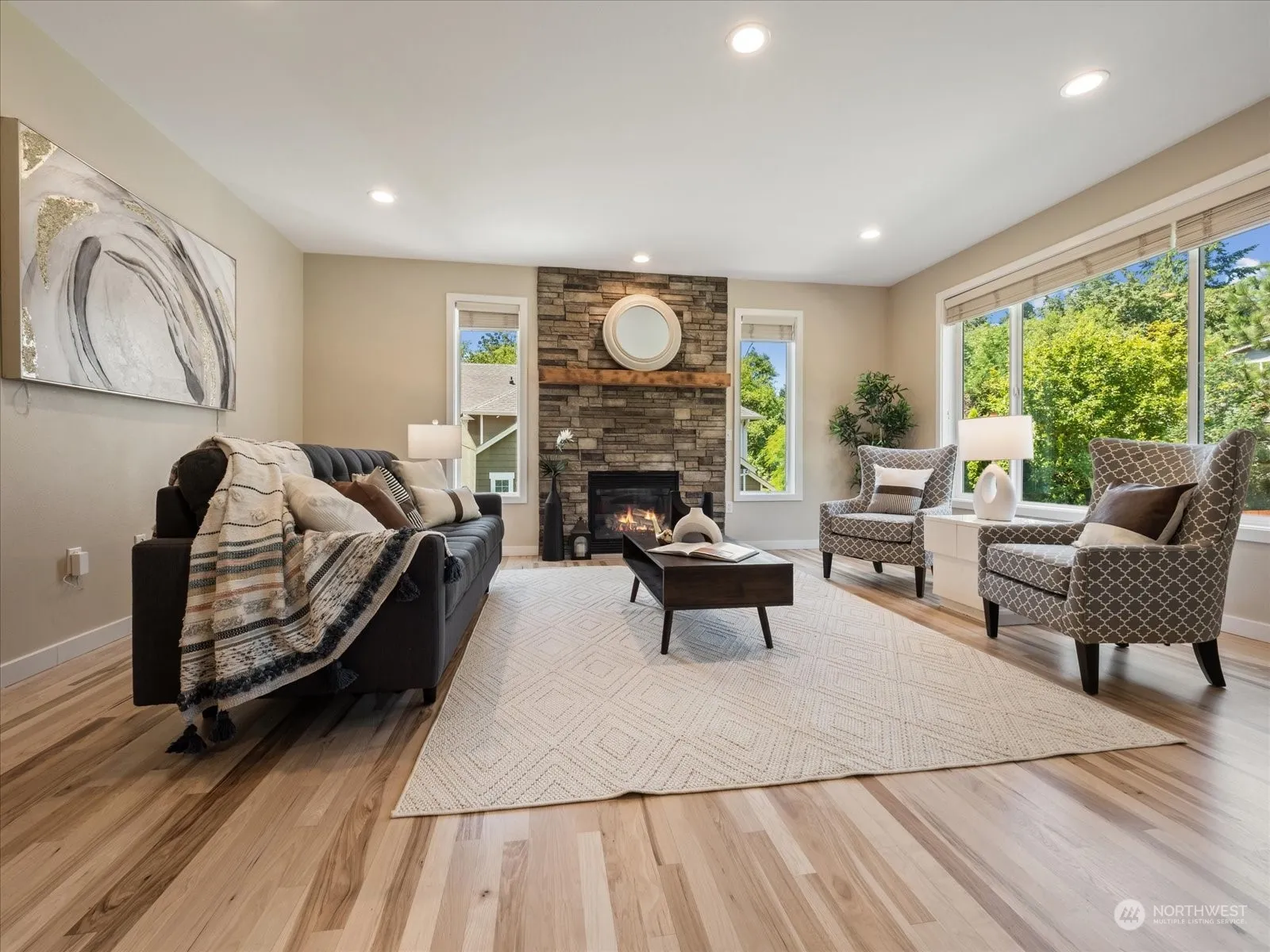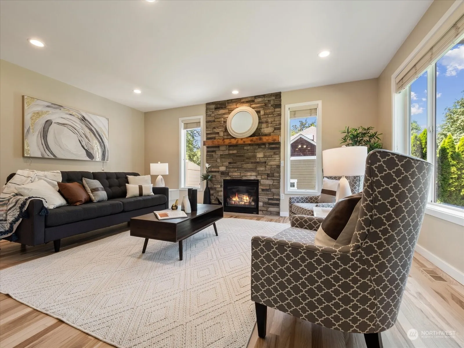 Experience modern living with this stunning, air-conditioned home! The remodeled kitchen boasts beautiful countertops, high-end stainless-steel appliances, and elegant cabinetry. Beautiful recently re-finished hardwood floors. Cozy up by the gas fireplace with floor to ceiling stone wall in the Living Room. This home offers 4 bedrooms, office, and loft area, all designed with an open concept. Large, spacious back yard that is an entertainer’s dream. Additional features include spacious paver patio, fully fenced, wired for generator, sprinkler system in front and back yard, new roof installed in 2021, new interior doors/trim and much more!. Coveted Northshore Schools. Don’t miss out on this incredible home!