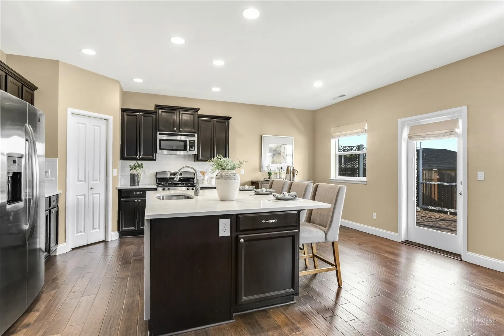 Welcome to Wynfield Meadows in Kenmore! This updated DR Horton home is in a quiet neighborhood and is ready to move in before school starts (Northshore SD). Enjoy year-round comfort with central A/C. Over $85k in upgrades: new hardwoods, carpet, quartz counters, kitchen backsplash, deck with Trex railing & Pottery Barn privacy screens, interior & exterior paint, baseboards, landscaping with sprinkler system, and more! The 3-car garage offers ample storage with built-in ceiling racks. Main floor boasts an open kitchen/living area, formal dining, and ½ bath. Upstairs: primary suite with 5-piece bath & territorial views, 3 additional bedrooms, and huge entertainment room. Easy access to Bellevue and Seattle. Pre-inspected for peace of mind!
