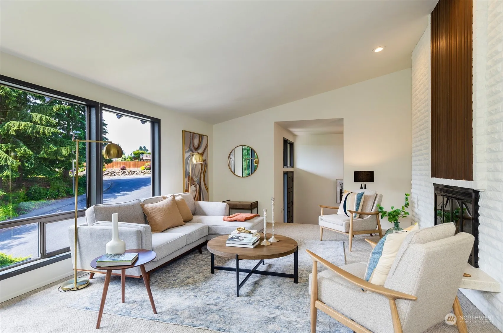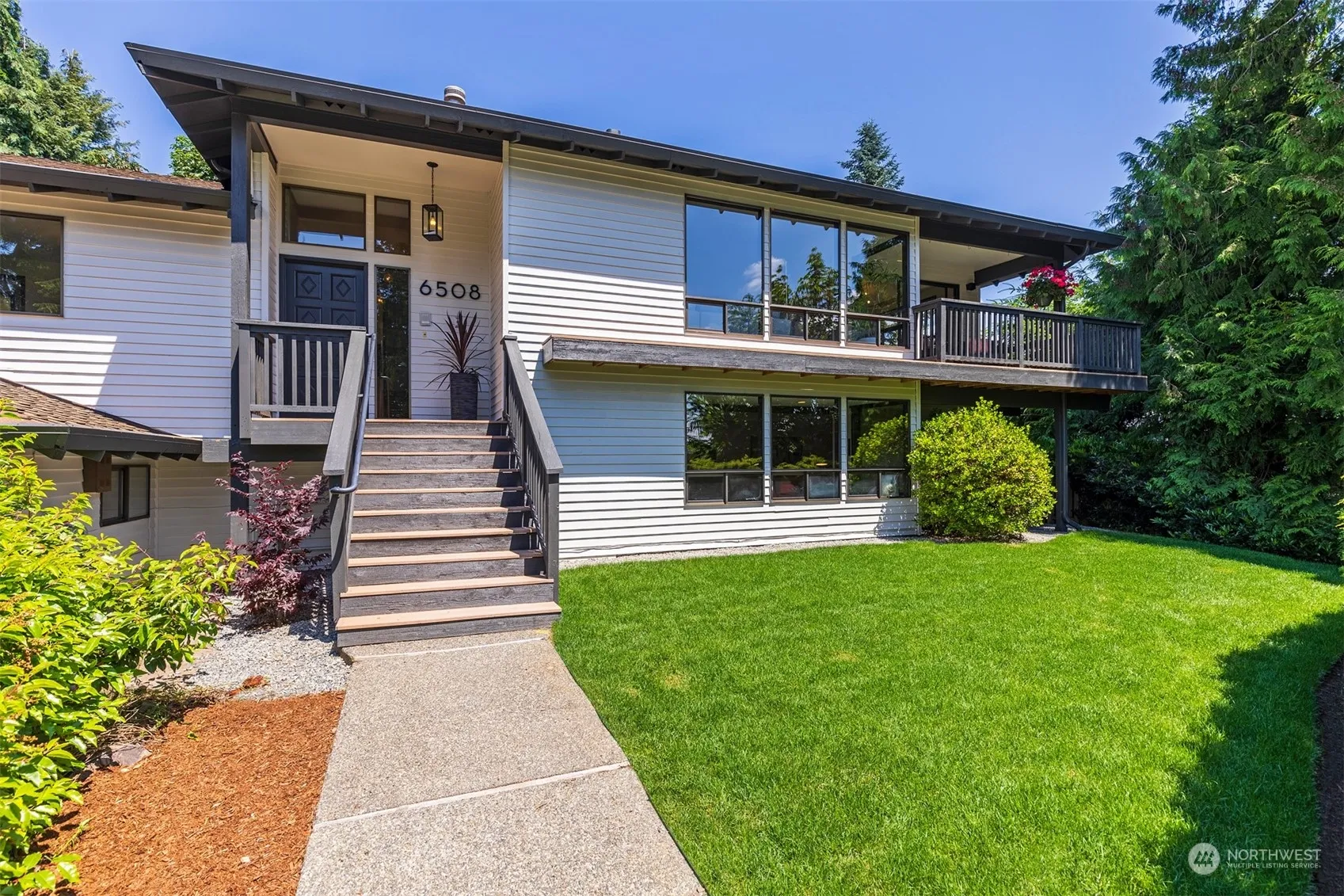 Welcome home to this one-of-a-kind Northwest Contemporary home high atop Kenmore in the Northshore School District. A dramatic foyer leads to a striking main level featuring cathedral ceilings, walls of windows, 2 striking fireplaces and wrap around deck. South-facing living & dining area, large eat-in kitchen, ready for your design touches, with adjacent family room. 3 large bedrooms and 2 baths are found in the sleeping wing. The lower level with cool retro rec room w/wet bar & another FP is a great spot for entertaining. A 4th bed/bath & sauna on this level creates even more living options. The 3-car garage (2 tandem) and huge workshop will please the auto enthusiast or handyperson. Fresh flooring, interior & exterior paint & newer roof.