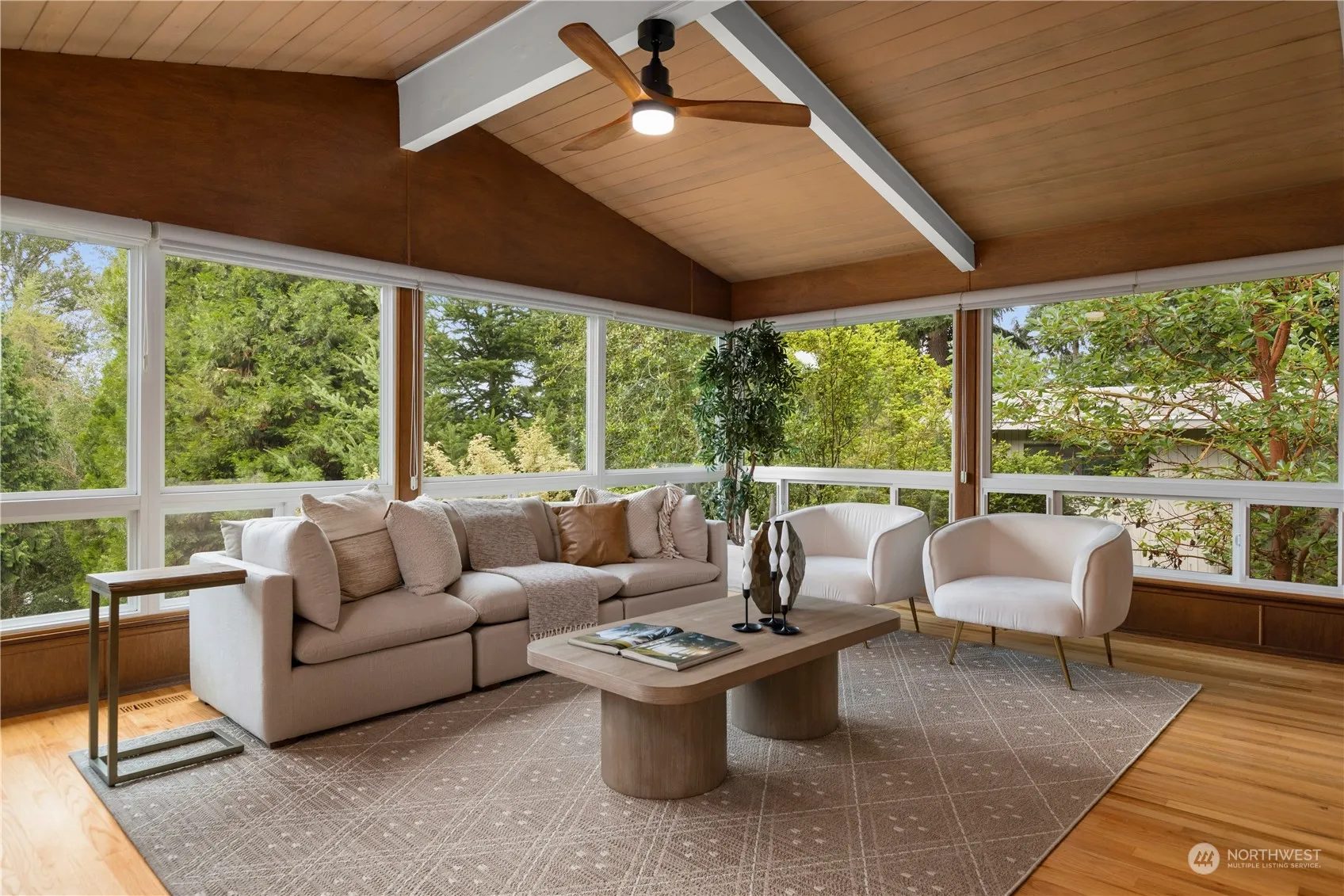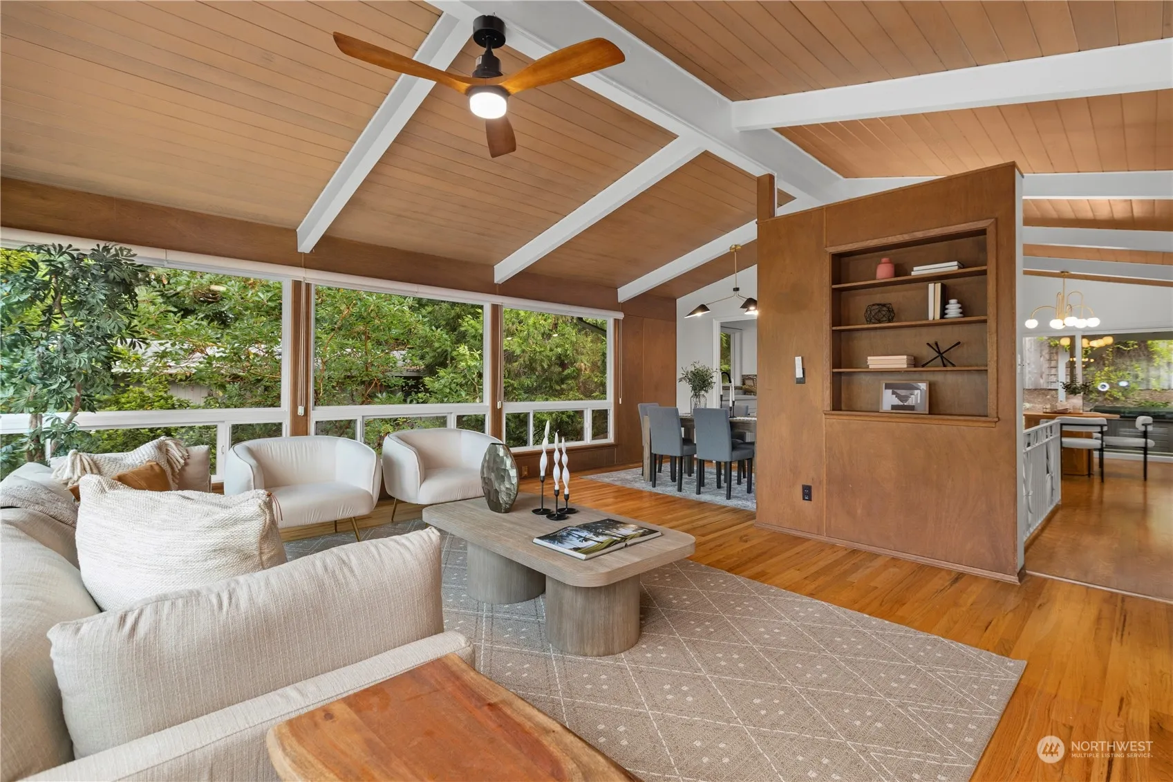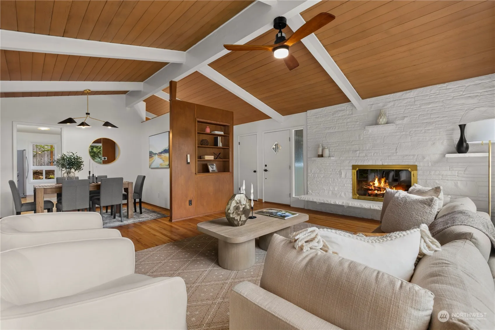 Experience mid-century charm in this beautifully updated 3 bed, 2.25 bath home. Nestled in a tranquil setting, it boasts lush landscaping, abundant natural light & a stunning paneled ceiling that will have all mid century lovers ooo-ing. The kitchen has brand new quartz countertops that give plenty of space to whip up something delicious. Enjoy outdoor living w/ hot tub, bocce ball court & a garden greenhouse. The versatile separate entrance offers potential as a mother-in-law suite or rental space. Don’t miss the primary en suite bathroom, solar panels AND AC!! Conveniently located near Inglewood Golf Club, Juanita Beach Park, downtown Bothell and Kenmore, this home blends classic style with modern comfort.