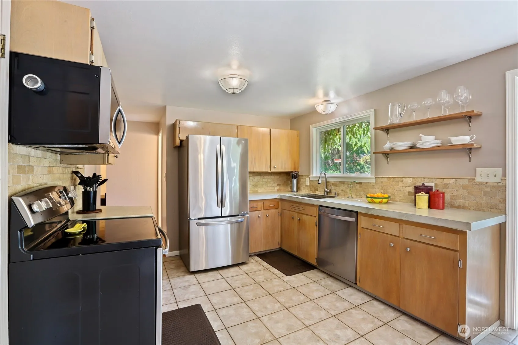 Beautifully maintained home on the market for the first time in nearly 40 years! This cherished home boasts a spacious living room with vaulted ceilings, a dining room with a cozy wood-burning fireplace, and an updated eat-in kitchen with a slider to the patio. The upper level features a primary suite with an attached bath and a 4th bedroom or office. The lower level offers a large laundry room, storage or hobby space, and a garage with ample storage. The yard is a gardener’s paradise with mature plants, a fully fenced backyard, and fruit-bearing trees. Located on a cul-de-sac on the edge of Kirkland and Kenmore, it’s an easy commute to tech companies, Village at Totem Lake, Northshore schools, parks, and services. Move-in ready!