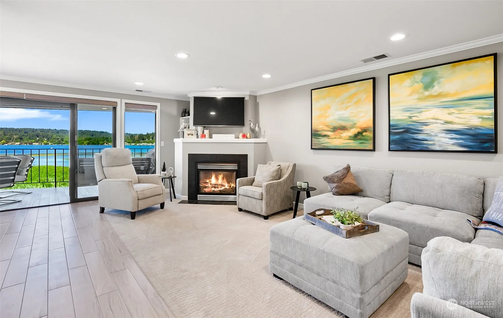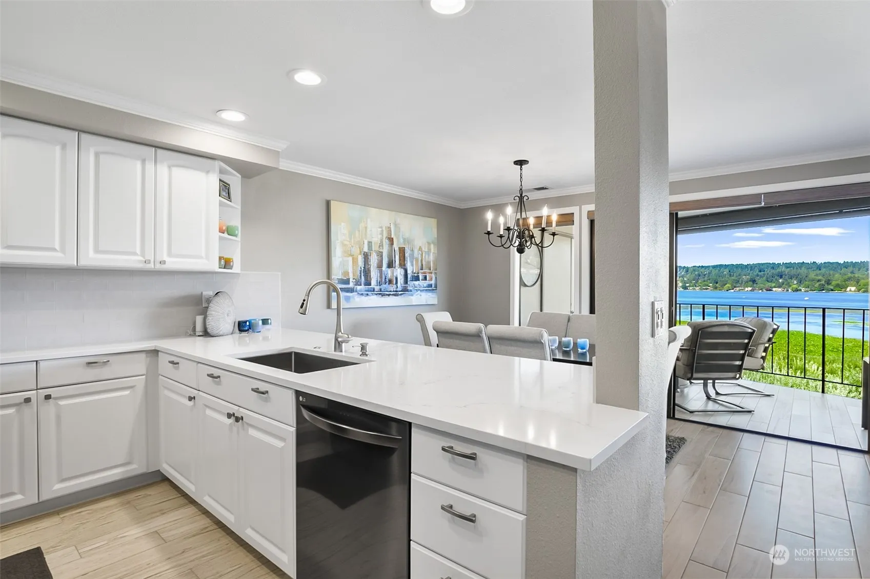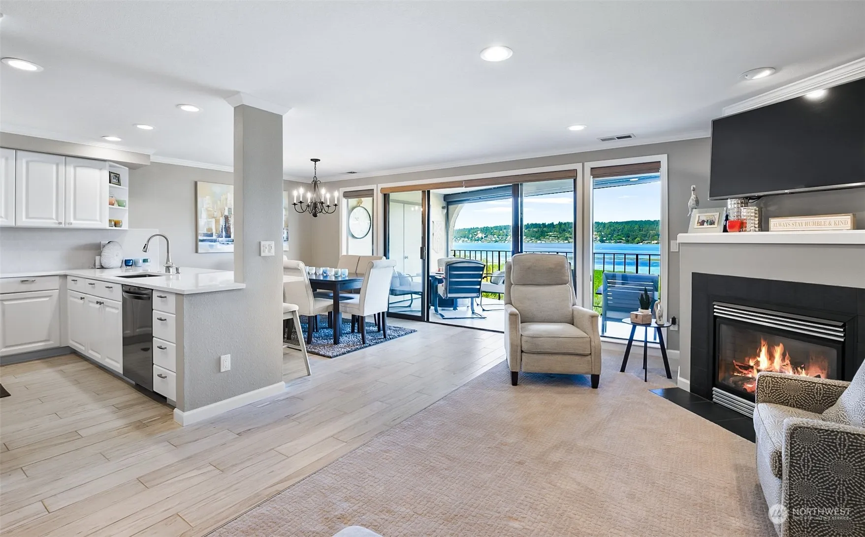 Extensive remodel of this unit means just move in and enjoy! Stunning views of Lake Washington and the unique opportunity to watch an occasional float plane take off and land right from your living room. Welcome to Inglewood Shores, a rarely available waterfront community. This home features tile flooring, some carpet, new furnace + A/C, black SS appliances, auto powered sunshade and so much more. Everything refreshed – lives like a 2024! Comfortable and stylish living spaces with big rooms and cov’d deck. With elevator access, secure garage with 2 parking spots (and plenty of storage), this condo combines modern conveniences with the serene beauty of lakeside living. Walk to golf, clubhouse socials, your community pool and tennis courts!