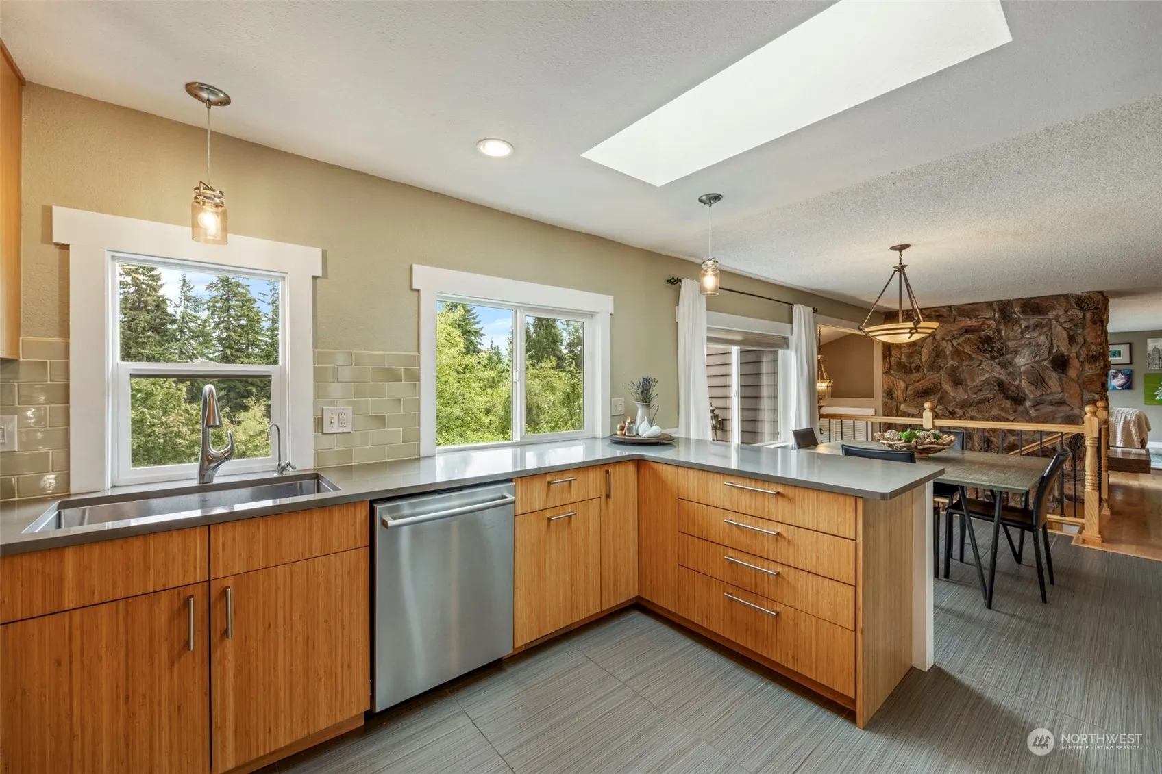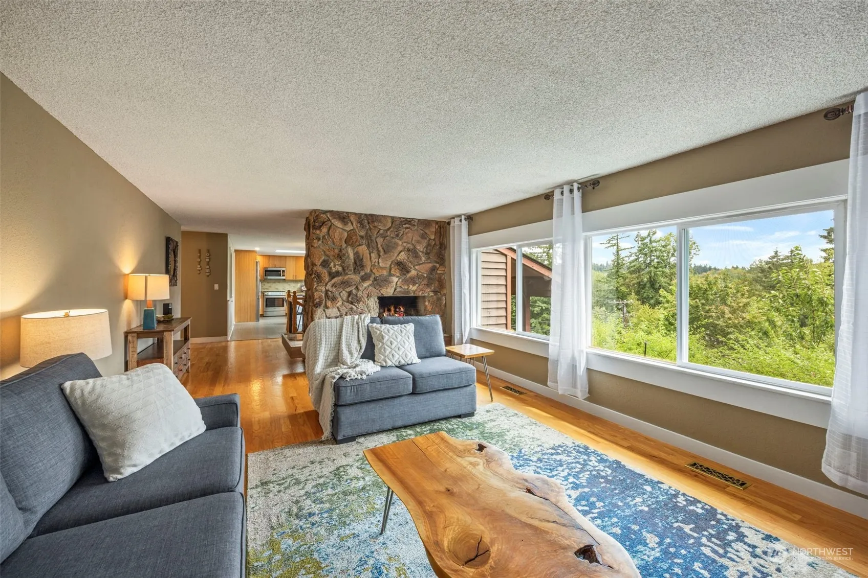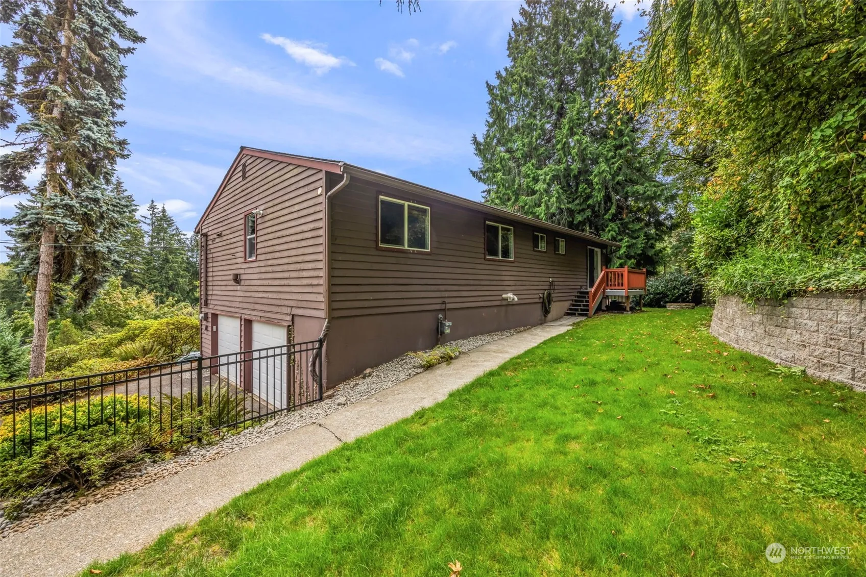 Your own little hideaway! This corner lot allows you to have privacy from neighbors and enjoy territorial views from the entire main floor living area. The upper floor boasts an open concept floorplan that is loaded with natural light & a gorgeous fireplace wall, updated flooring, fresh paint and spacious bedrooms. The primary bedroom is oversized and has access to a private deck allowing you to enjoy the outdoors! The Primary bathroom was recently remodeled & features a walk-in shower, floating vanity & updated tile flooring. Downstairs is a huge bonus room with a 3/4 bathroom and walkout patio; making the options on how you use this space endless. Don’t miss your chance to make this HOME! Close to everything & in top-rated Northshore SD!
