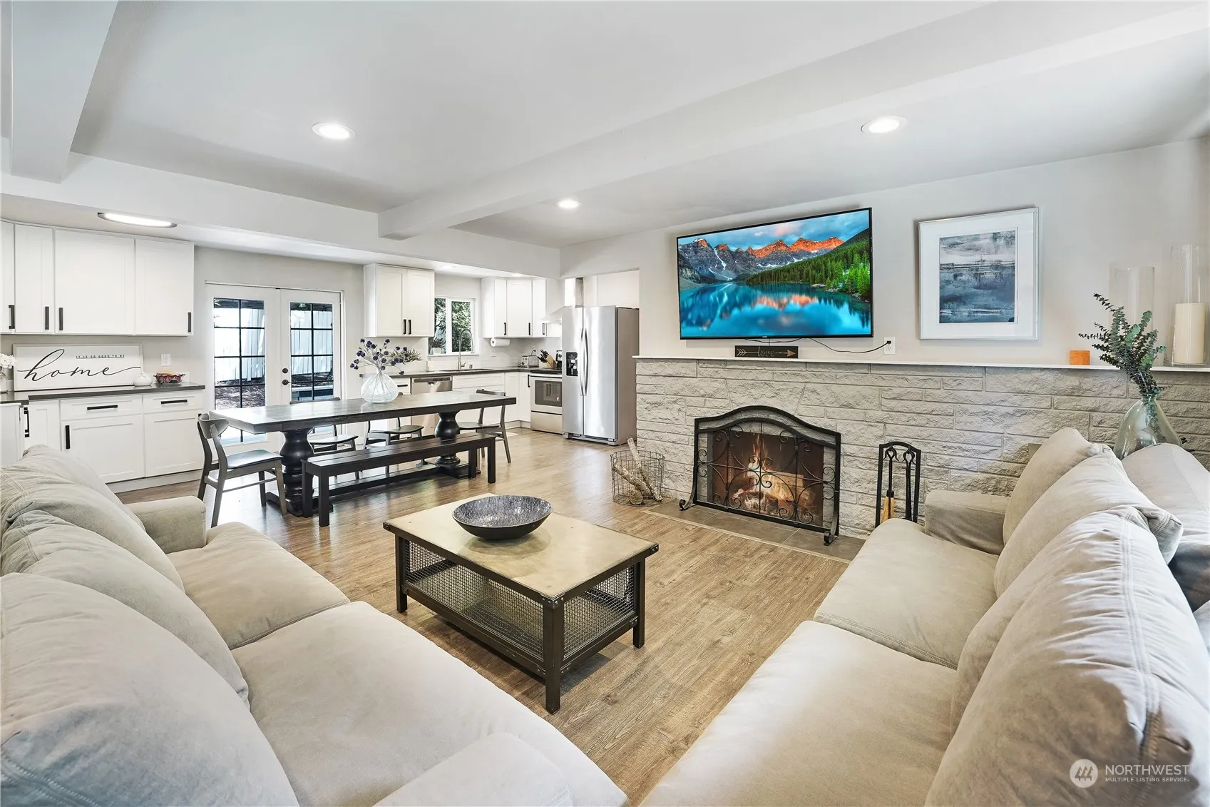 This remarkable farmhouse residence exudes nostalgic charm w/ updated amenities for modern conveniences. The walls of windows and French doors draw the outdoors in, filling the home w/ loads of natural light. This abode is refreshingly surrounded by beautiful greenery, & flowering trees & shrubs w/ spectacular seasonal blooms. The open floor plan is versatile & functional. The kitchen & the dining room open into the serene back patio where everyone connects. The bonus room (can be changed back to a garage) is perfect for indoor recreation as a homey hideaway. The airy primary bedroom is comfortably sized. Explore St Edward State Park w/ sprawling lawns and fun forested trails which is just steps from your front door. Award-winning schools.