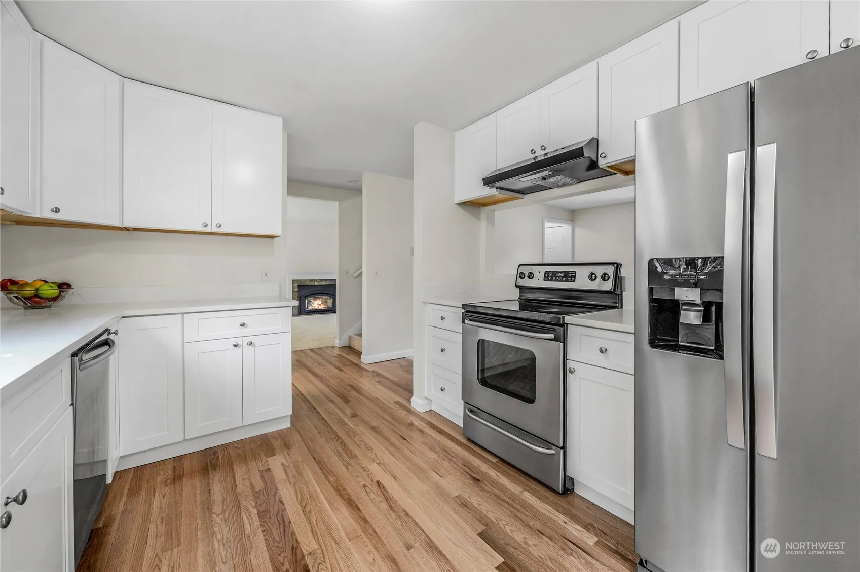 Your search is over. This impeccable 4 bedroom 2 story is beautifully remodeled and move-in ready. Remodel includes gorgeous kitchen with new cabinets, quartz counters, SS appliances, and refinished hardwood floors, tastefully remodeled bathrooms, new carpet and new interior paint. Super-convenient location with easy access to bus lines, shopping, restaurants and services in Kenmore and Lake Forest Park. Convenient to Log Boom Park and the Burke-Gilman Trail. Acclaimed Northshore School District. Home has been pre-inspected for your convenience and most noted items have already been remedied. All appliances are included plus a One Year Home Warranty. Level fenced backyard features a spacious covered patio. Great value!