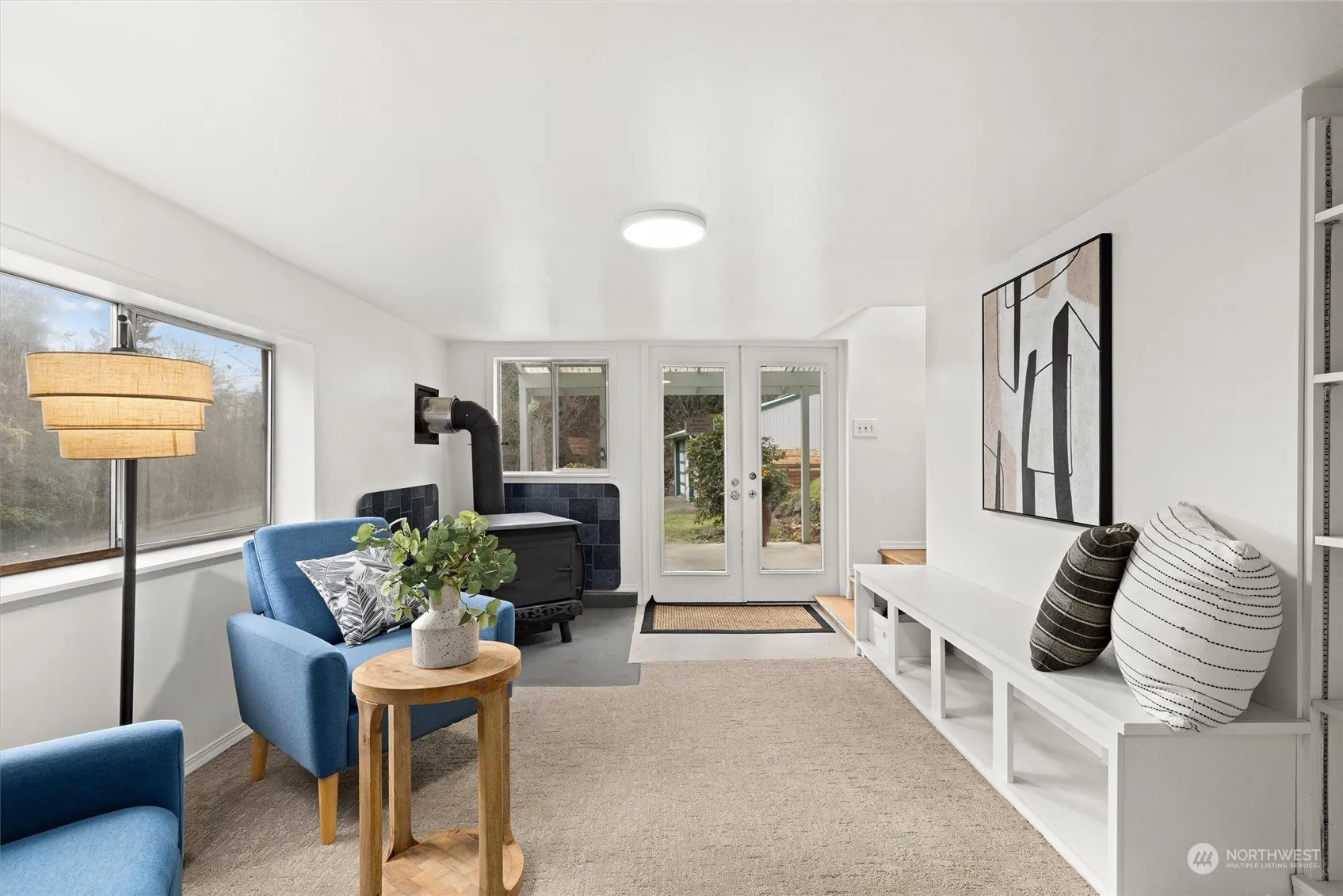 This spacious home offers privacy with a big lot and no immediate neighbors. Ideal for hobbyists or contractors, it features a large detached garage & ample parking for projects & vehicles. Inside the freshly painted house you will appreciate hardwood floors, new flooring in both baths & lots of windows that provide natural light. The bottom level is newly done with cozy wood stove to create a warm ambiance for those chilly evenings. The large covered front deck is perfect for year-round barbecues & entertaining. There is also a large patio in back! With a 6-year-old roof & leaf guard gutters, this home is move-in ready. Near Bastyr University and Burke Gilman Trail and quick access to I-5 and 405 to eastside and Seattle