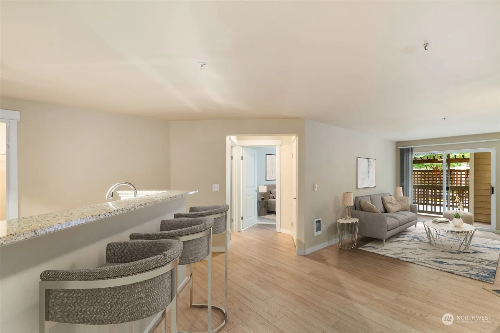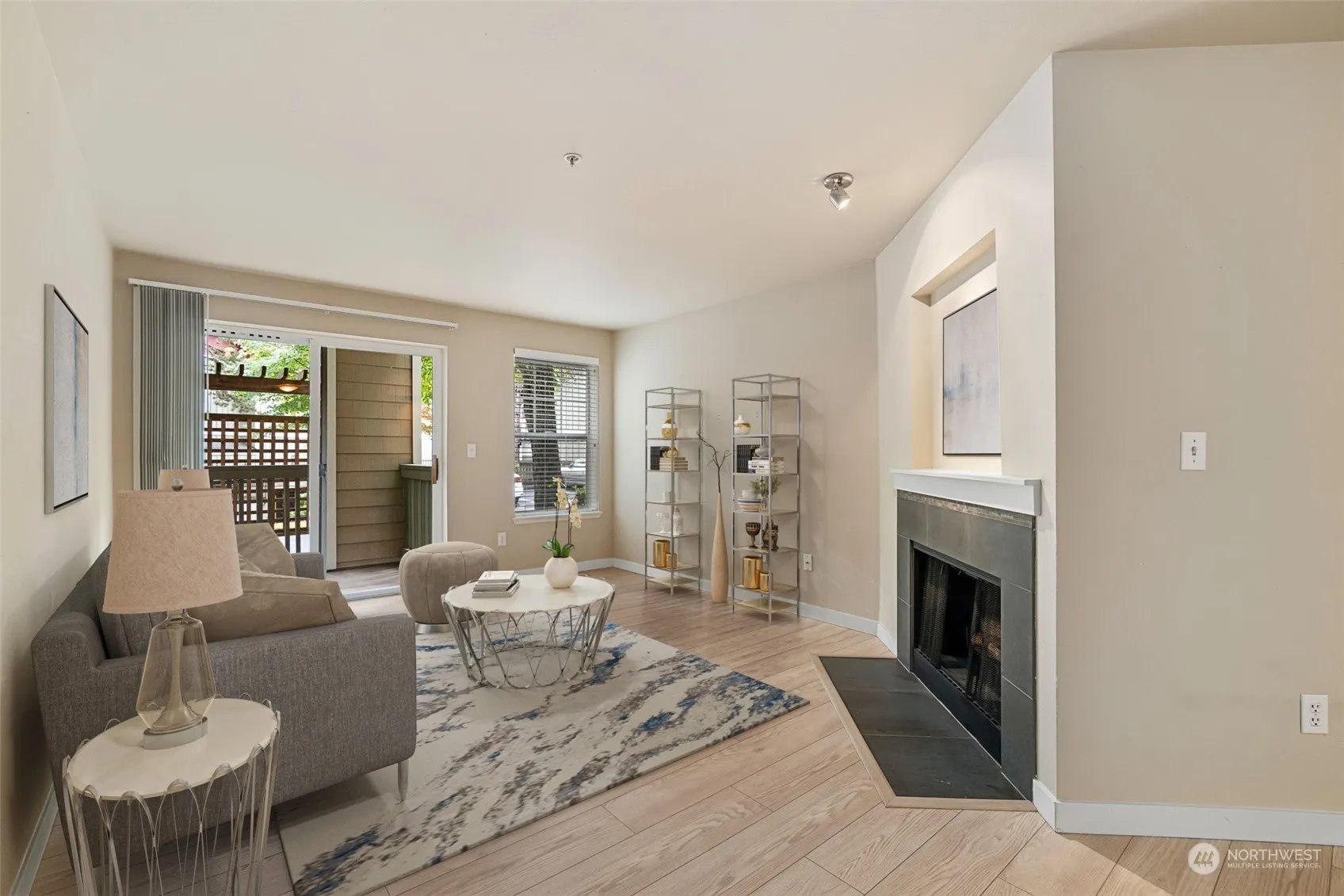 Welcome home to the desirable Trail Walk community! This spacious ground floor 1 bedroom home features an open layout with brand new hard surface plank flooring throughout. Cozy up in front of the fireplace on chilly evenings or let the fresh air in through the patio sliders on warmer days. Utility room with laundry right off kitchen can double as a pantry. Two reserved parking spots including one in the common garage. Spacious club house offers outdoor pool and hot tub & fitness center. Walkable to local entertainment & shopping! Steps from the Burke-Gilman Trail and the newly restored Tl’awh-ah-dees Park where you can launch a kayak or enjoy nature. Easy access to freeways, UW & all the desirable Eastside amenities.
