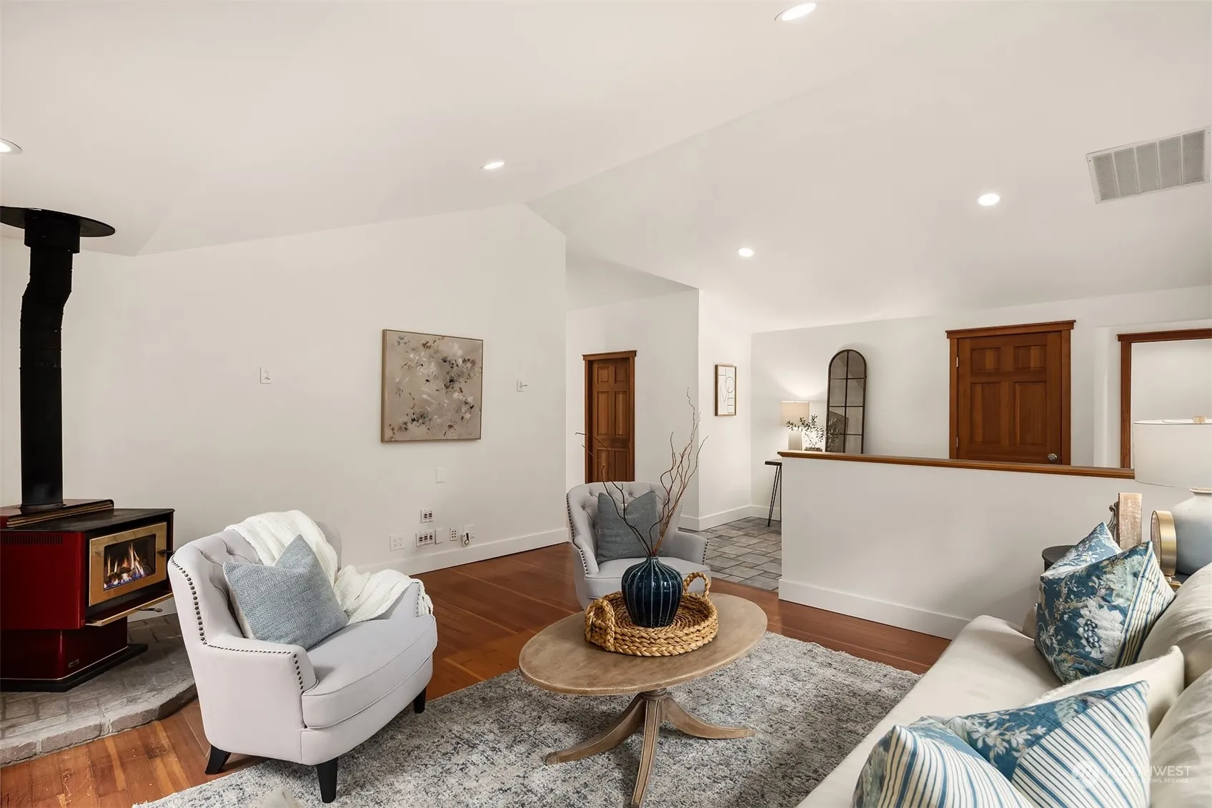 Welcome to this charming Kenmore home on .3 acres. Picturesque covered porch overlooks the beautiful landscaping. Entry & main floor living showcase the vaulted ceilings & picture windows for ample natural light. Kitchen feat. quartz countertops, eat-in bar & dining space. Located on the main floor, 3 bed, den/office & 2 full bath make this home a rare find. Venture upstairs to the theater room, a bright bonus room(could be a 4th bedroom) & an add. flex space w/half bath—perfect for a yoga studio, craft room or office. Additional highlights inc. fresh paint, new carpet, spacious 2 car garage, landscaped yard & storage shed for all your gardening tools. Situated within Northshore School District & pre-inspected for buyer’s peace of mind.