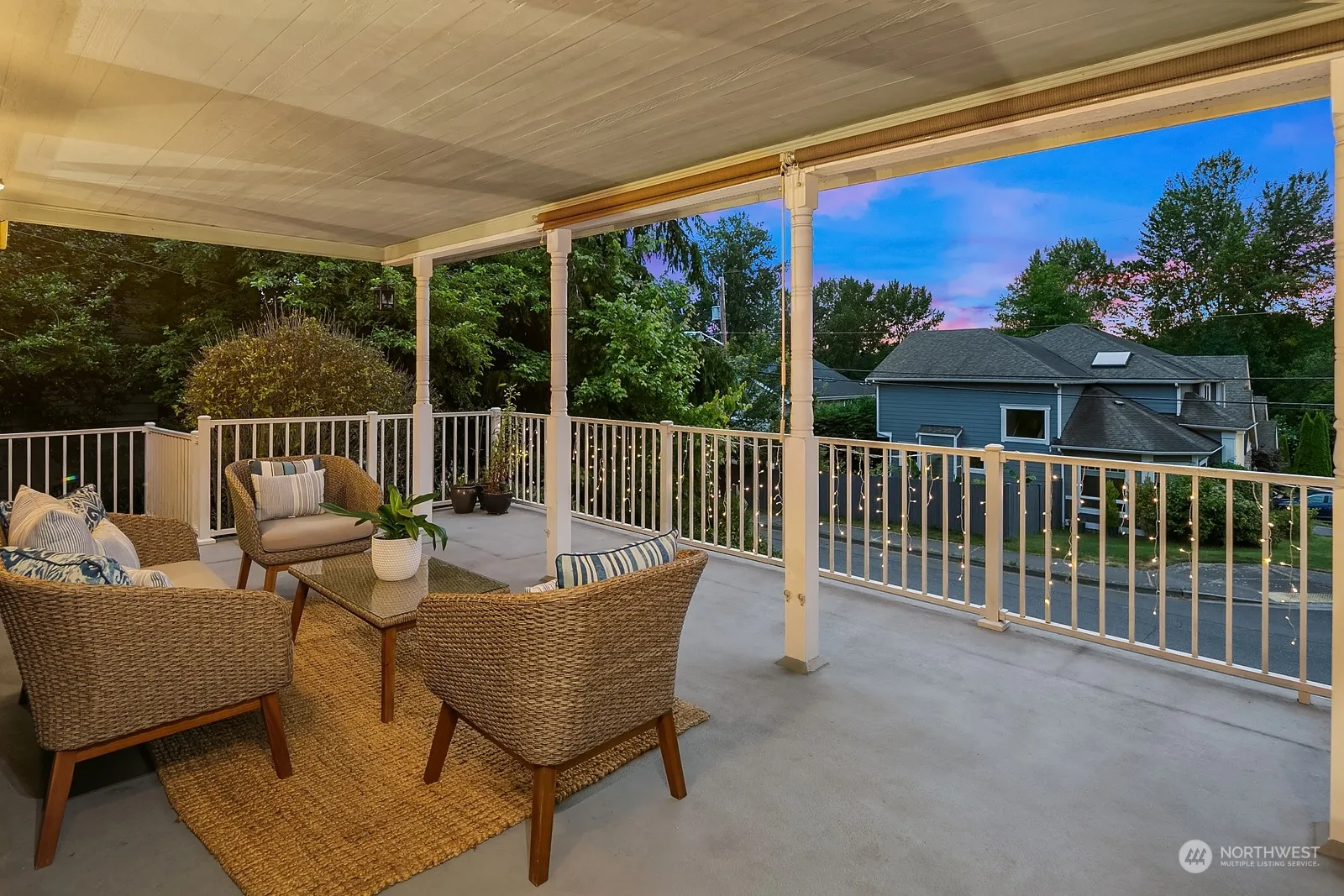 Just in time for the holidays! Full, studs-out remodel in 2004 w/ a new foundation, seismic retrofitting, fiber internet, electrical, sewer lines, plumbing, insulation, windows, roof, siding, cat 5e wiring, electric car charger, 264-bottle wine storage, 1000sf wrap-around deck, & more. The main floor includes a bedroom & full bath, original 1926 old-growth clear fir hardwoods, wainscotting, gas fireplace, laundry, & high-end, soundproof media room w/ equipment included. The upstairs has a primary en-suite w/ private balcony, walk-in closet, attached bath, & solid oak hardwoods & bonus room. Skylights add an abundance of natural light. Covered waterproof deck, A/C & HE furnace 2019, SS appliances. NO HOA! Award-winning Northshore Schools!