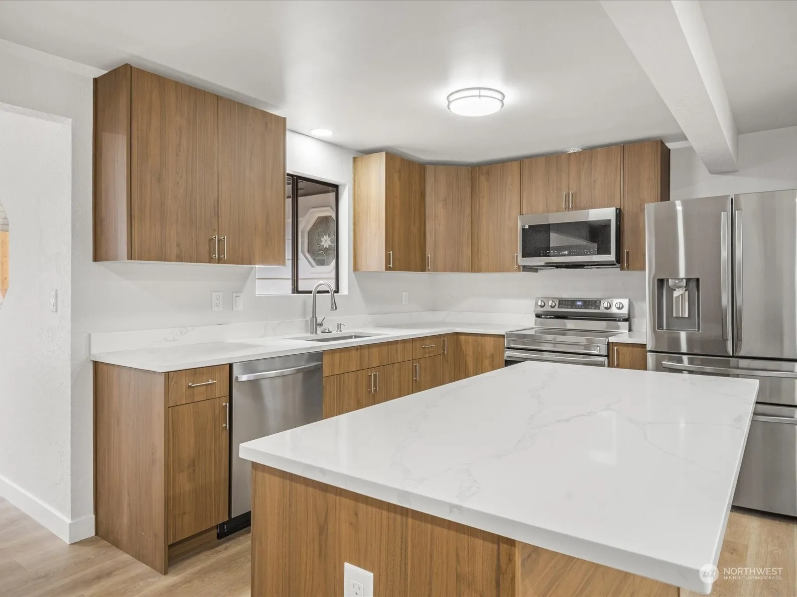 Discover this stunning 4 bd, 1.75 ba, newly remodeled to offer modern comfort and timeless charm. The open-concept design creates seamless flow between the spacious living, dining and kitchen areas, perfect for entertaining or everyday living. The kitchen boasts sleek quartz countertops, stainless steel appliances and generous cabinet space, ideal for cooking and gathering. A large entertainment area provides the perfect setting for making lasting memories. Your gorgeous wood deck is perfect for hosting BBq’s, or enjoying relaxing evenings. Yard offers endless potential for gardening, play or creating your dream outdoor retreat. Updated flooring, int/ext paint make this home is move-in ready. Short walk to dining and Lake Washington