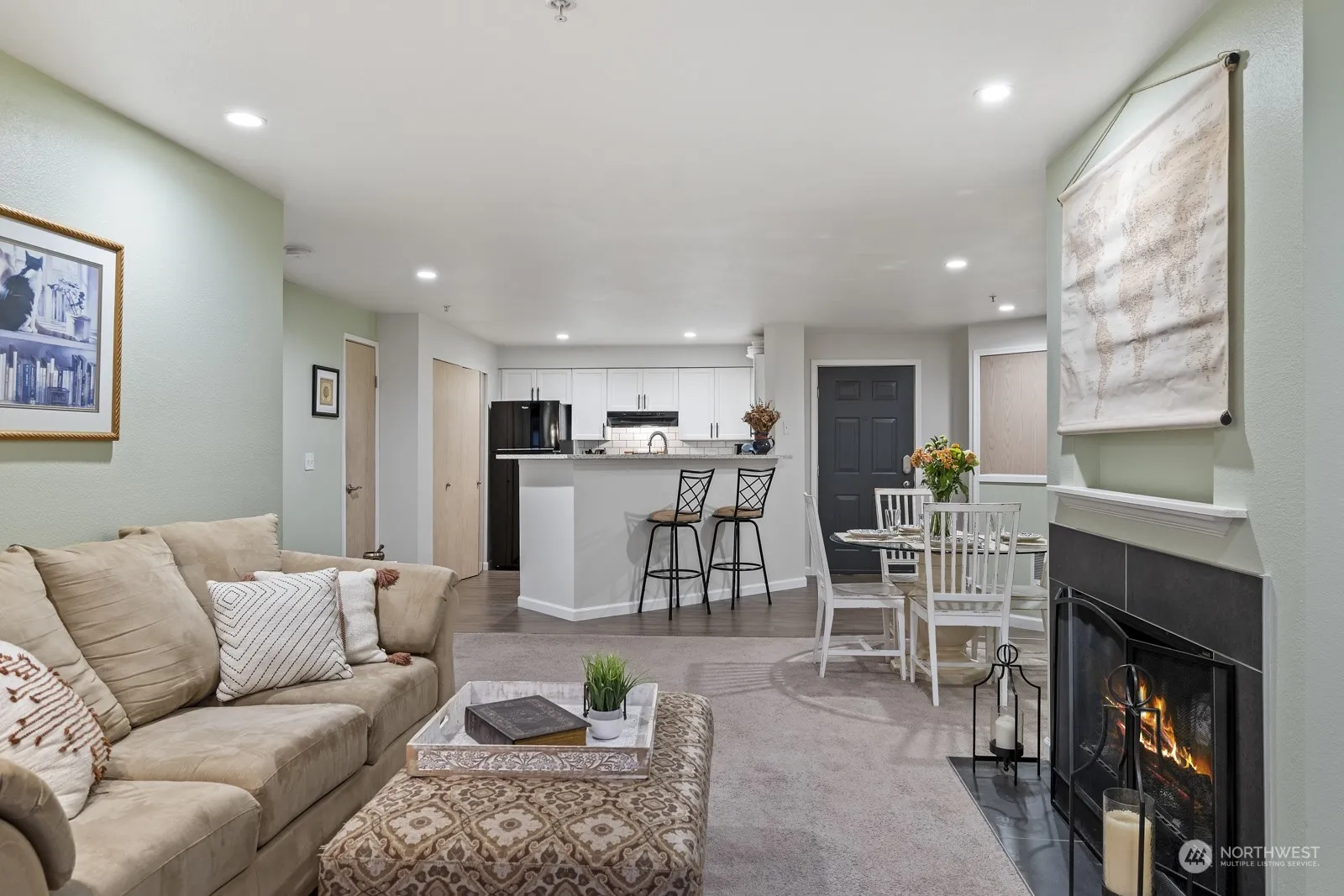 IMAGINE BEING IN THE MIDDLE OF IT ALL! Discover relaxed ground-flr living in this bright 2BR/2BA condo near the Burke-Gilman Trail & Lake Washington. Enjoy LVP flooring, NEW CARPETING & NEW WATER HEATER, & a stylish kitchen featuring quartz countertops & subway tile backsplash. W/D in unit. Step from the cozy living rm onto a covered deck, perfect for yr-round relaxation. Curl up by the wood-burning fireplace on cool evenings. The owners suite has dual closets, the 2nd bedroom offers a spacious walk-in. Amenities include a clubhouse, outdoor pool, hot tub & gym. Pet friendly. No special assessments! Covered garage space & 10 mins from UW Bothell. Imagine this beautiful home becoming your own sanctuary, your own adventure, your own reality!