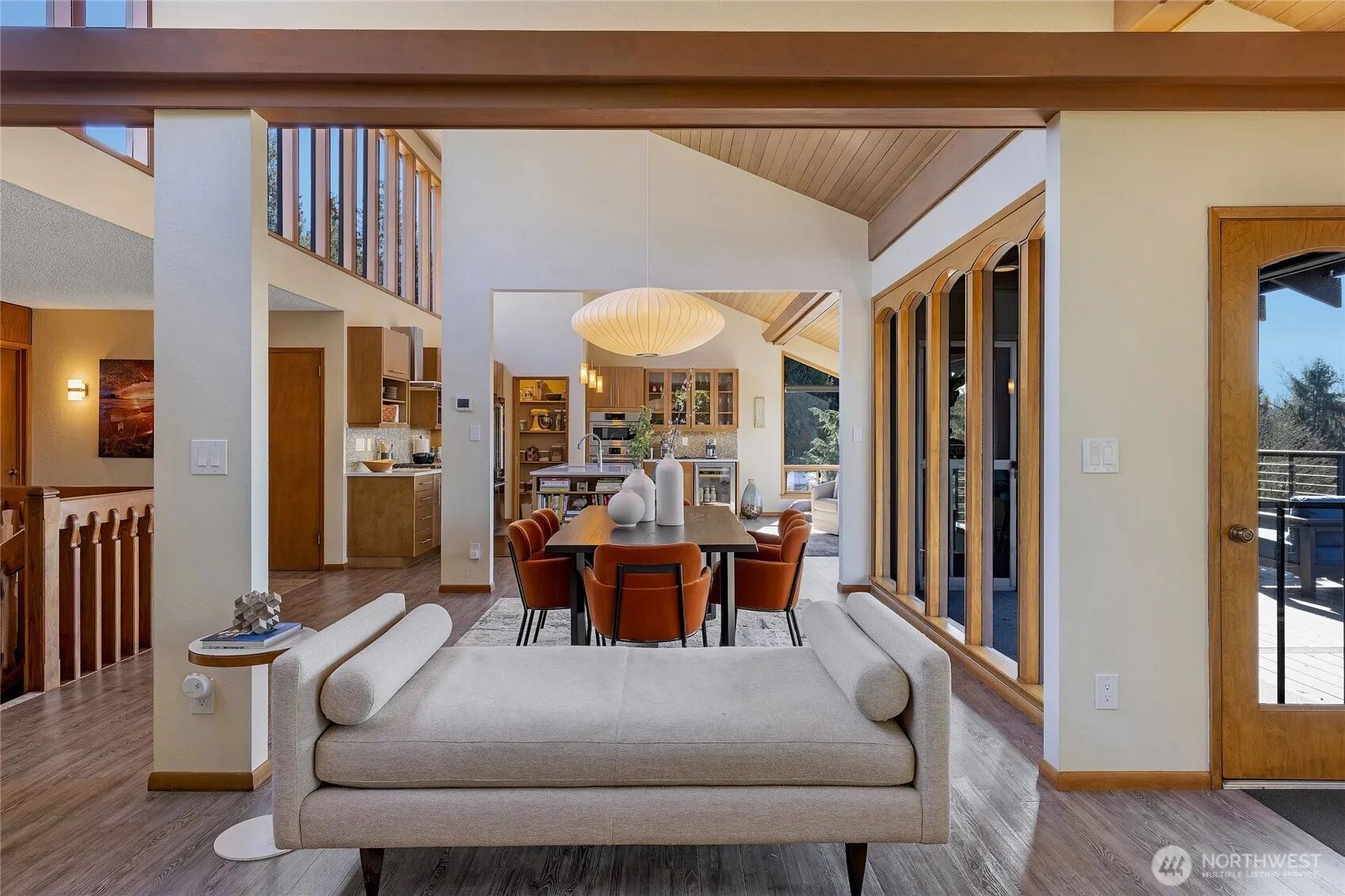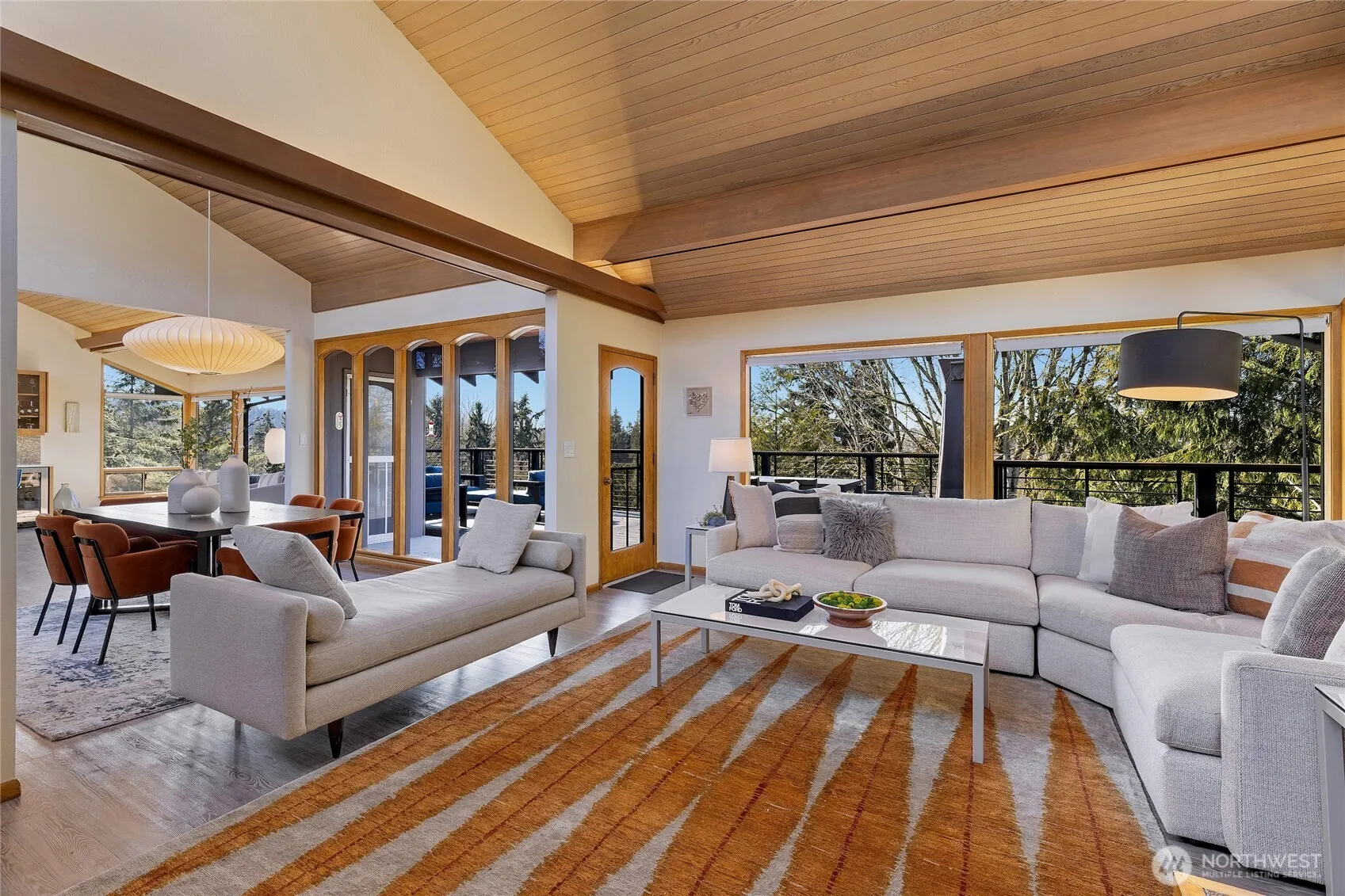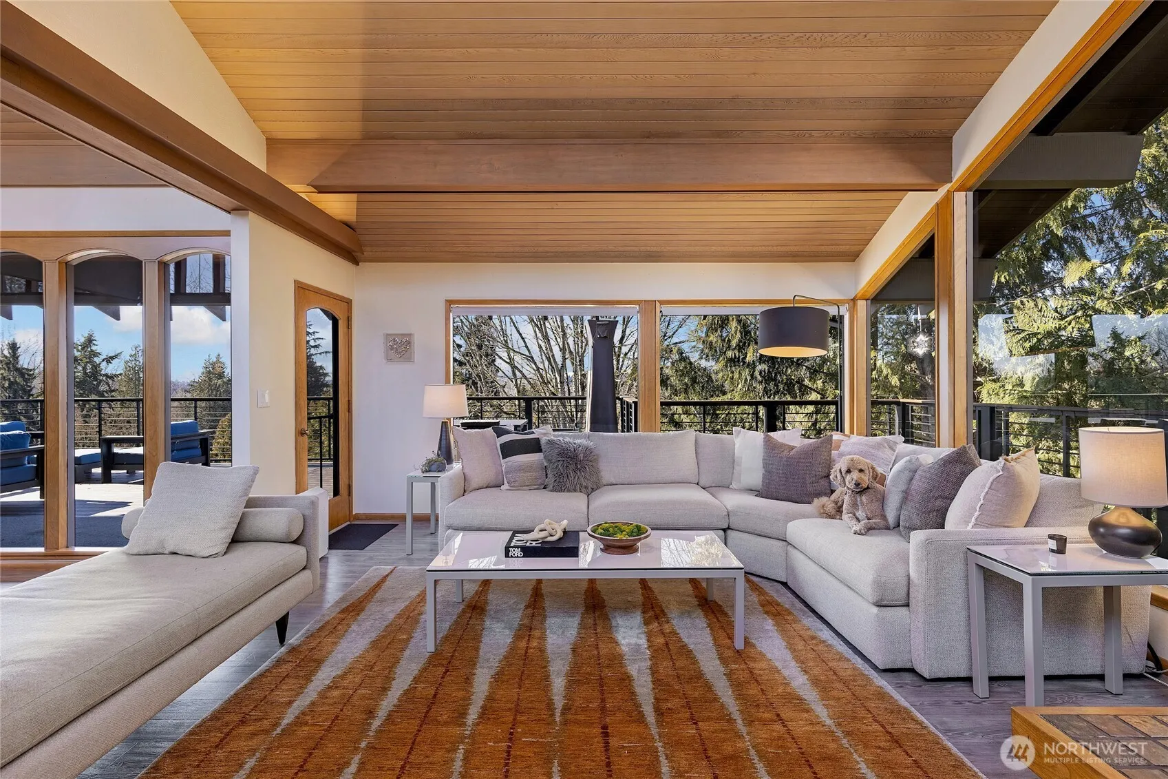 Discover windows & wonder in this beautiful Northwest Modern home. Soaring ceilings, combined with clerestory and picture windows fill the open floor plan with year round natural light. Stunning chef’s kitchen nods to the formal living areas creating the perfect entertaining space. New celebration size deck with sunset views allows for seamless indoor-outdoor living. Three bright bedrooms including primary round out the main floor while the daylight lower-level features rec-room with treehouse vibes, full kitchen, bath, workout room & sunny elevated 4th bedroom. 2-car garage with EV hookup. New furnace, A/C, electrical & more. Pre Inspected! Fabulous location with easy access to freeways & downtown Bothell, Juanita & Woodinville.