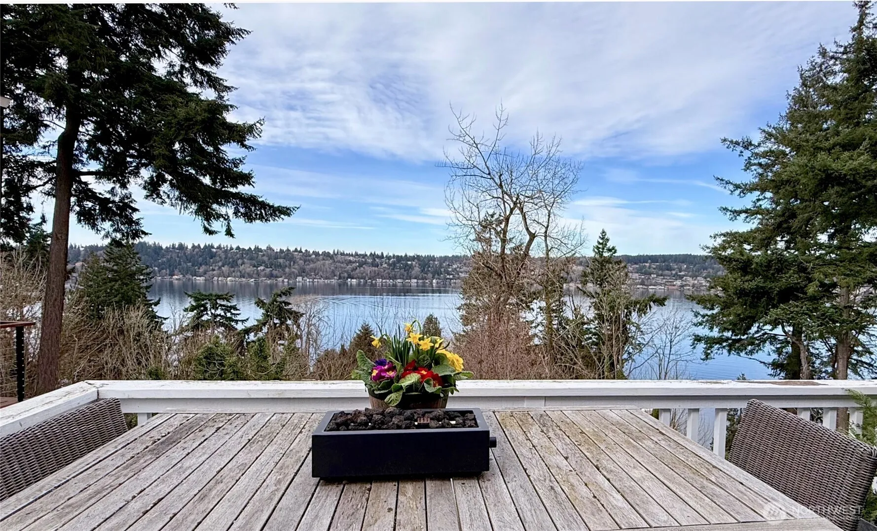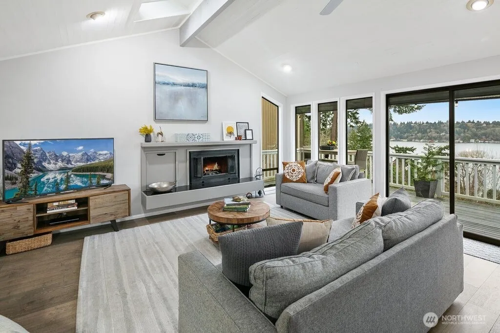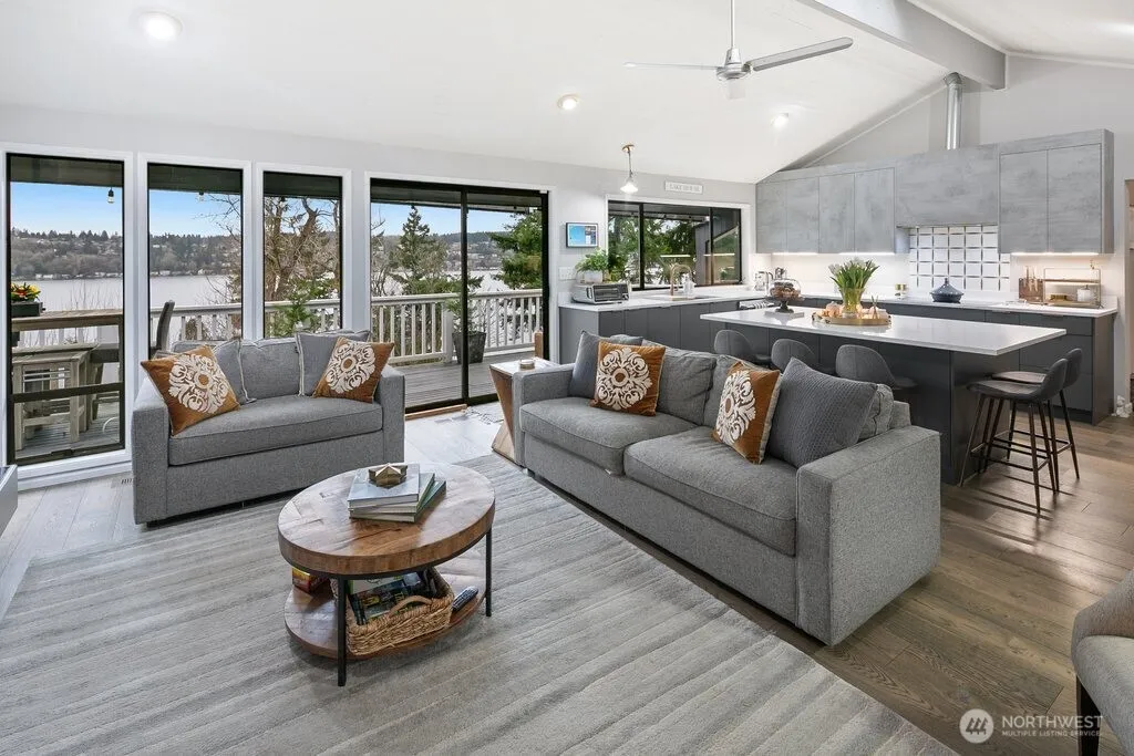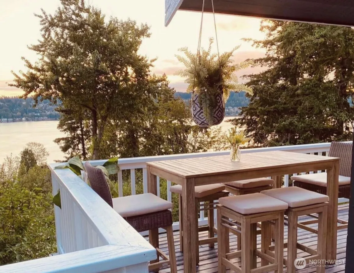 Beautifully remodeled 4 bed/3 bath home w/breathtaking 180-degree LAKE VIEWS from every room. Experience the ultimate in Northwest living with this extraordinary private oasis. Main level features vaulted ceilings, rich hardwoods, and a newly renovated kitchen w/quartz countertops, gorgeous tile backsplash, & beverage fridge. Elegant formal dining just off the entry along with an office/flex space next to the kitchen. Multiple decks provide the perfect setting to take in picturesque sunsets. Spa like owner’s suite boasts 5 piece bath w/soaking tub, stamped tile. Big bedrooms and gorg updated baths on each level. 2 car detached garage. Perfectly located in Northshore SD, near Inglemoor Golf Club, St. Edwards State Park, Burke-Gilman Trail.