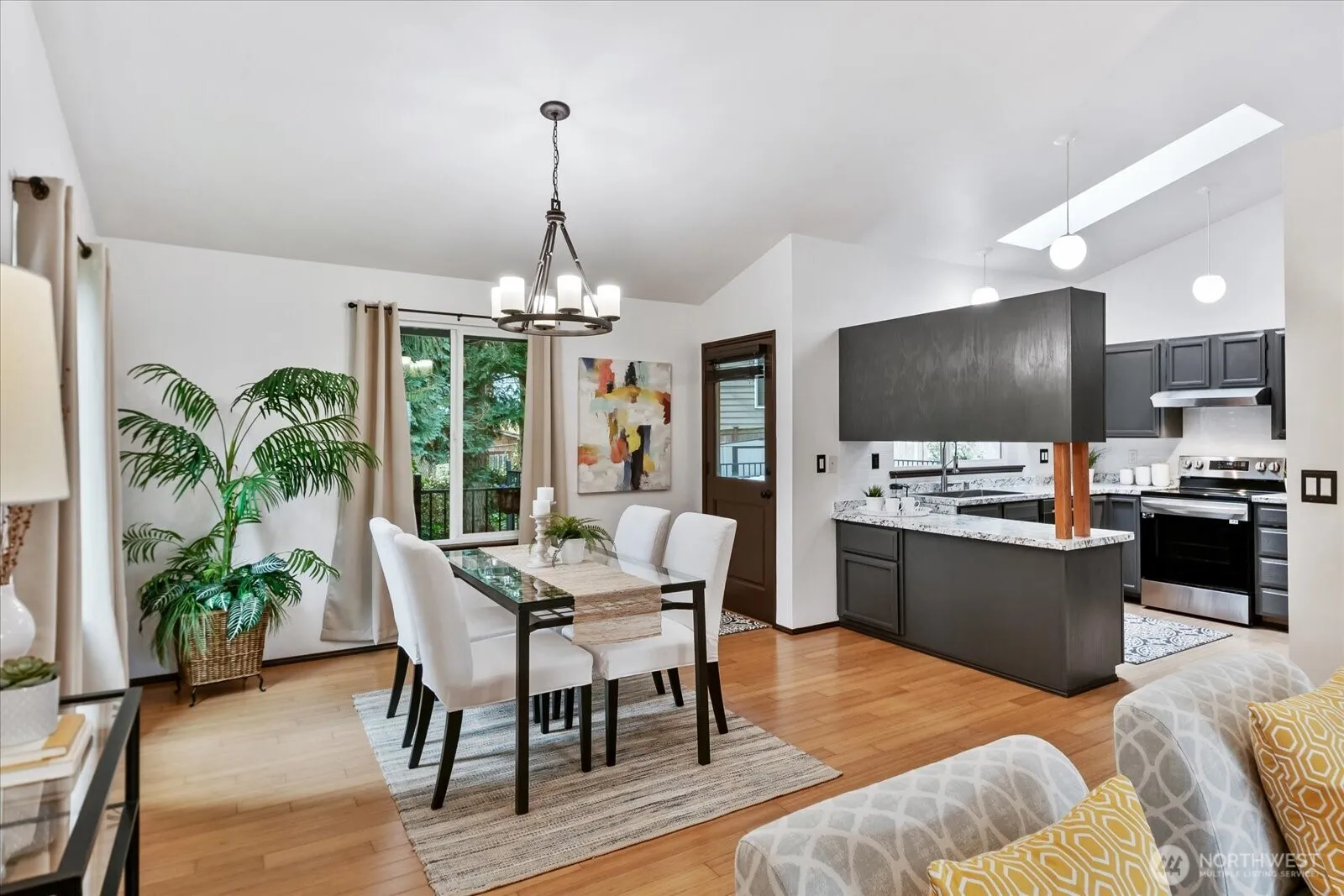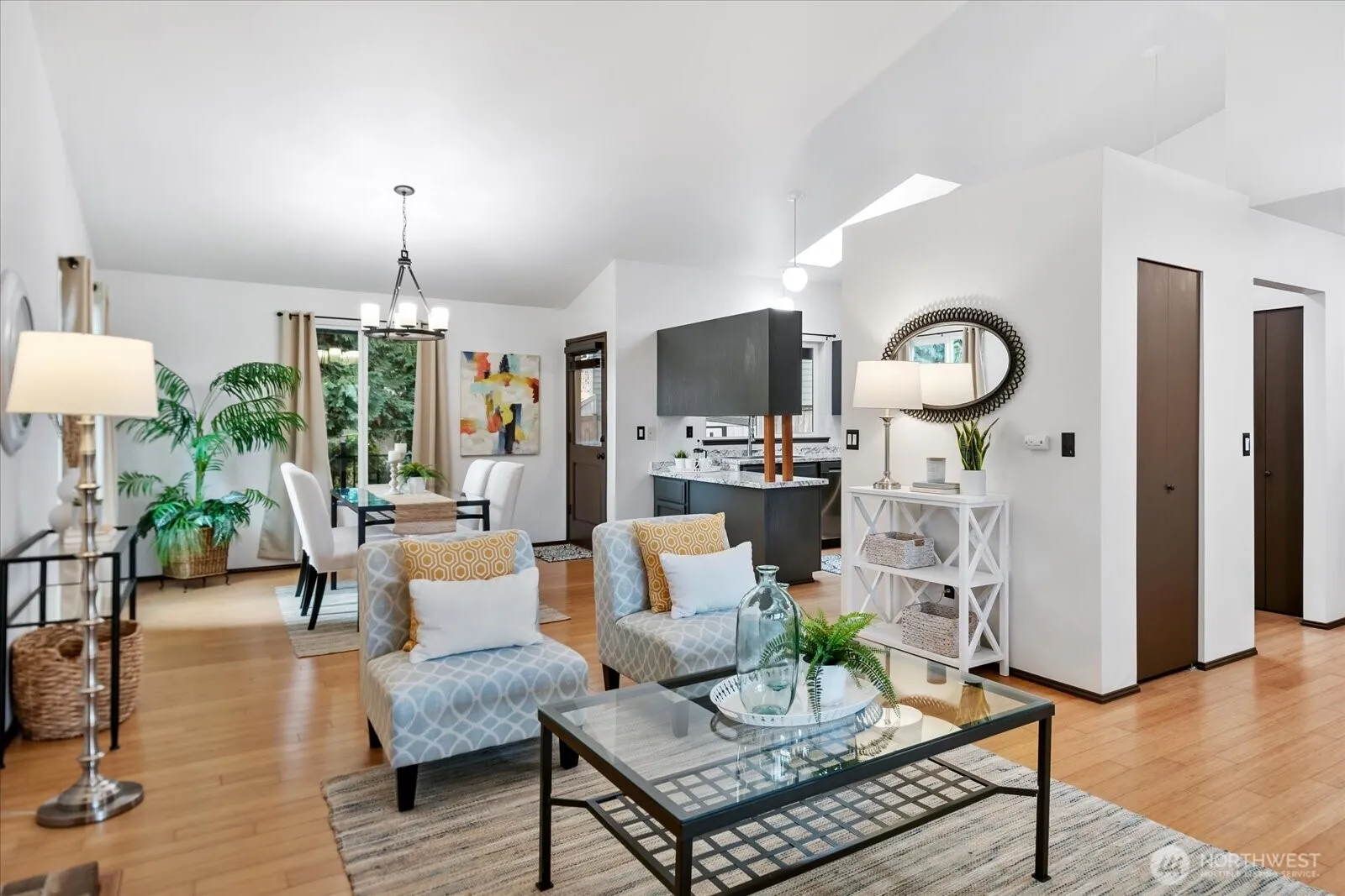 Privacy awaits in this 1-story situated at end of private lane in quiet neighborhood. Semi-open concept w/vaulted ceilings & skylight offers great flow, light & storage. 3 Bedrooms incl. primary suite w/bath & walk in closet. The XL cedar deck beckons outdoor gatherings and yard provides ample space for gardening & play. Lovingly maintained thru the decades by members of same family; most recent updates ’20-’23 incl. new: roof, gutters, deck, windows, garage doors, A/C, furnace, water heater, appliances, int. & ext. paint. Low maintenance yard & major projects complete leaves more time for you to: relax by woodstove, tinker in 2-car garage, explore the many local parks & Burke Gilman Trail, or paddle the shores of Lk WA. Northshore Schools!