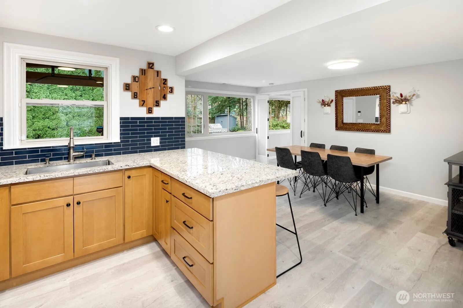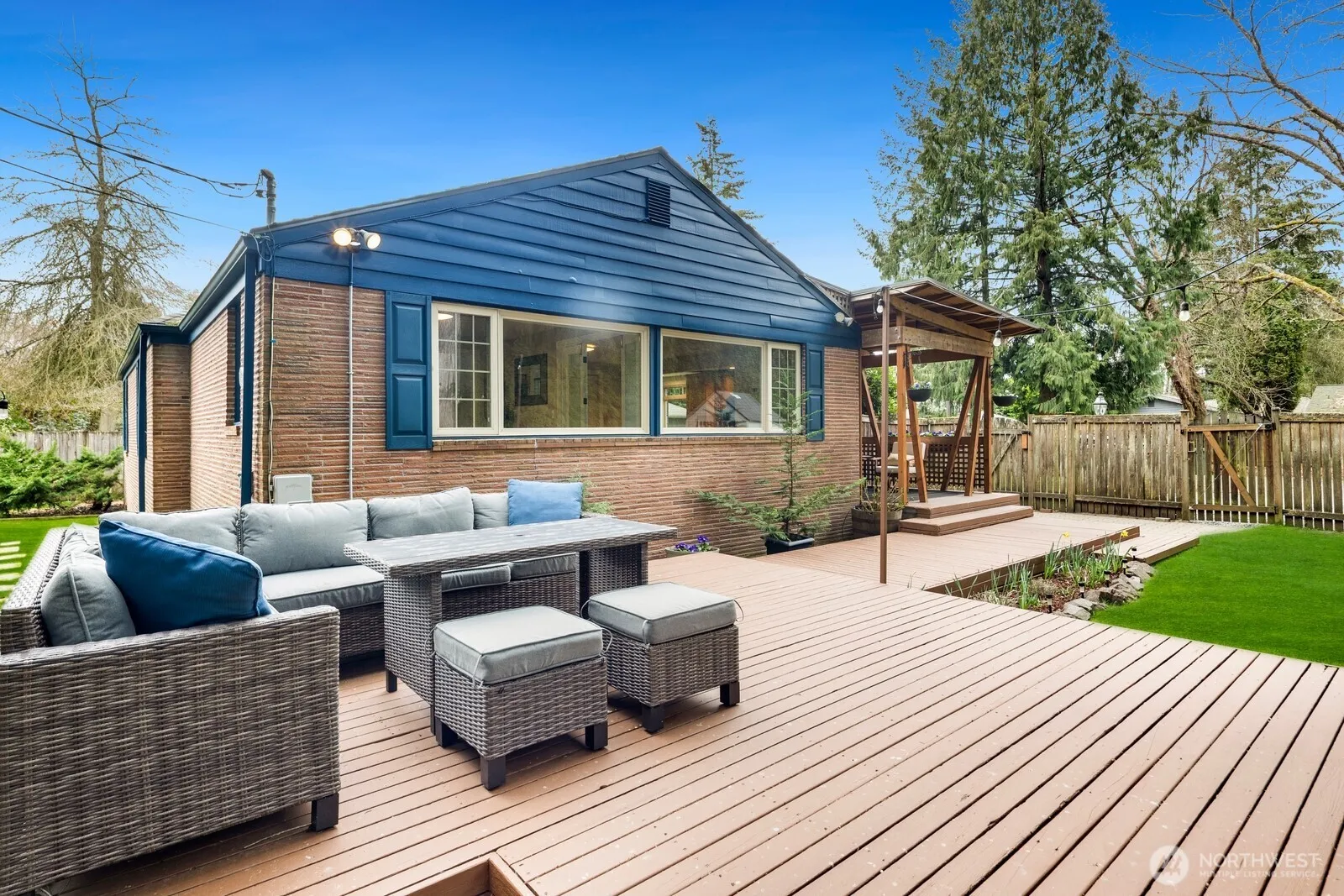 Don’t miss this mid-century rambler on a quiet cul-de-sac in Kenmore! This three bedroom, one level home has two bedrooms and full bath on one side, and a primary suite with ensuite bath and walk-in-closet on the other. The mature garden spaces are brought inside by oversized windows on every wall. Enjoy the natural flow from the kitchen and dining room into the large living room. You’ll love the PNW summers and sunsets on the oversized, fully fenced lot with a large deck, as well as patio with fire pit. Within Northshore School District and walking distance from Kenmore Elementary, as well as the Burke-Gilman trail! 2 parking spaces out front!