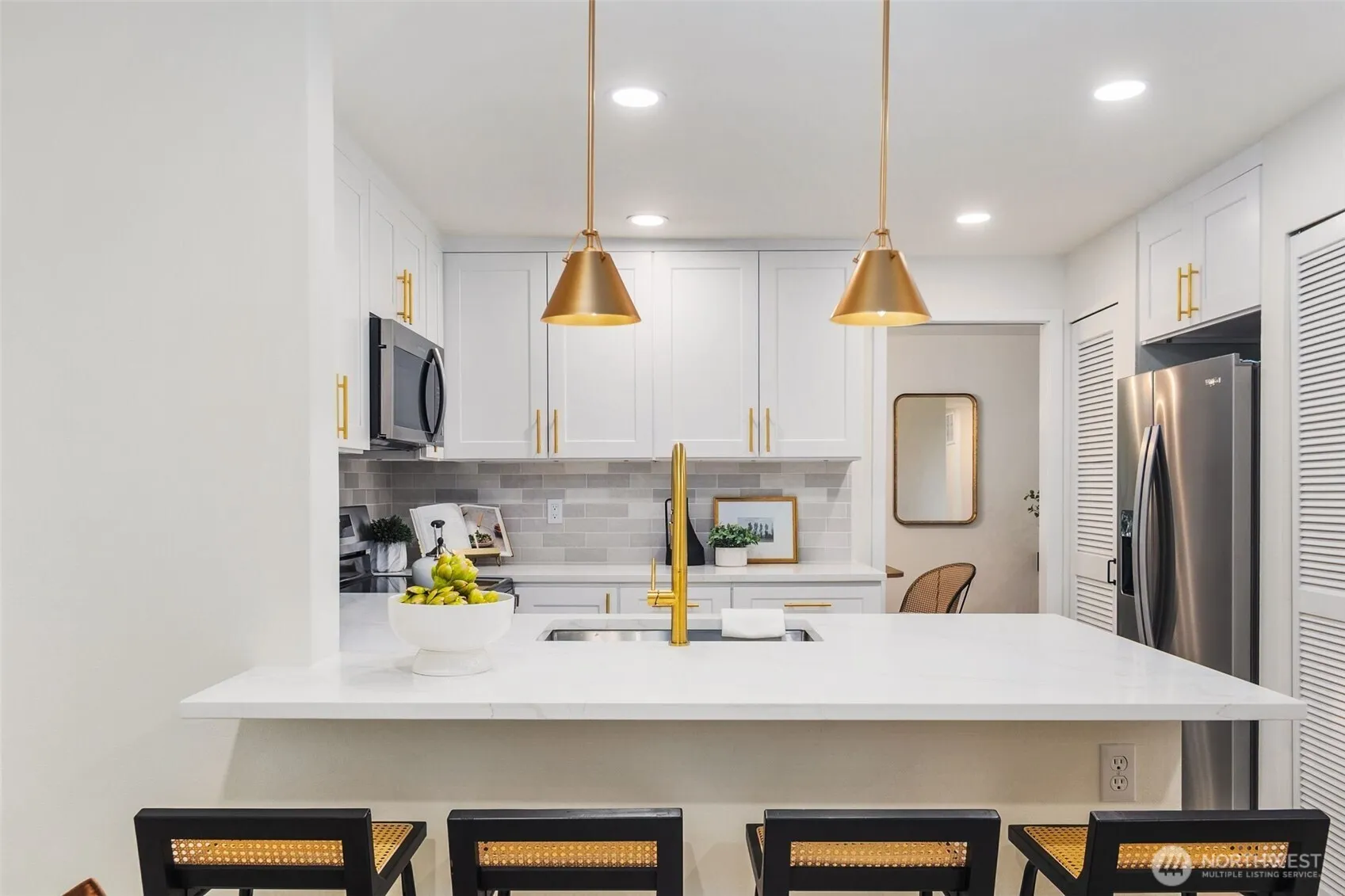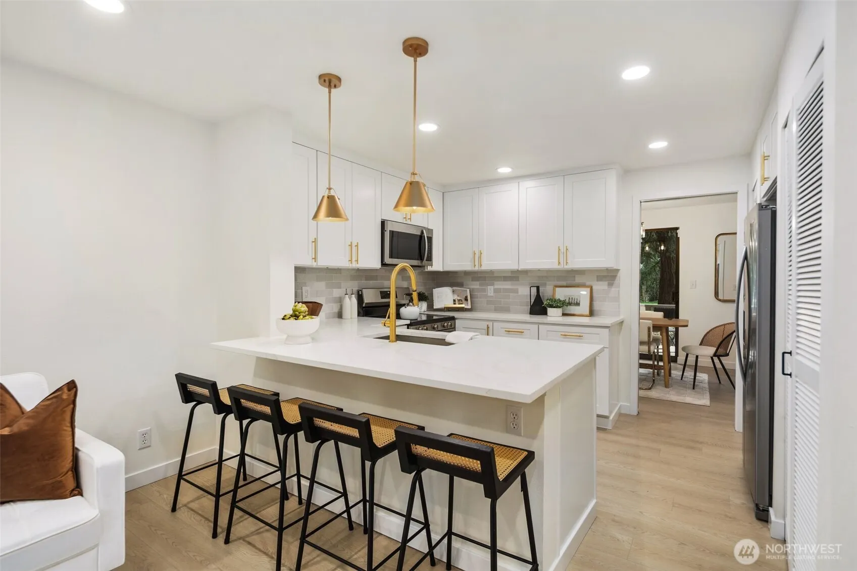 A rare opportunity to live in updated luxury on the perfectly manicured 9th fairway of Inglewood Golf Course. This 2025 remodel features new kitchen & baths w/ quartz counters, designer tile & stunning fixtures. Every surface has been touched including new flooring, carpet, paint & LED lighting. In the living room you’ll find cathedral ceilings w/ a cozy gas fireplace. The expansive primary suite includes a double sink vanity & luxurious shower. Enjoy indoor/outdoor living w/ golf course views from the back deck, 2nd floor balcony or take your coffee in the secluded courtyard patio large enough for a dining set. Dettached extra-large 2 car garage. Easy access to the Kenmore Boat Launch, Burke-Gilman Trail, tech hubs & Northshore schools.