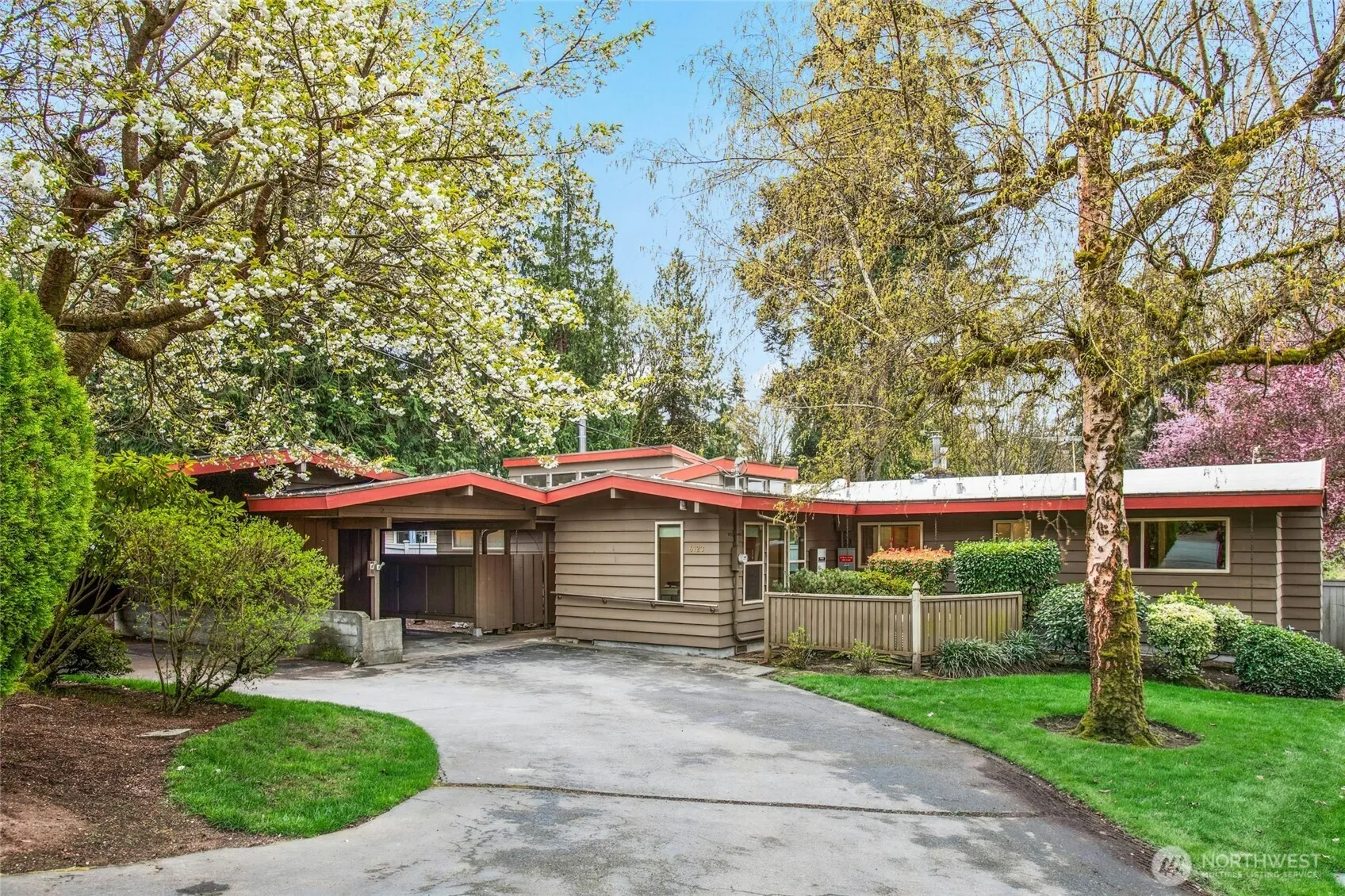 Nestled in the heart of Kenmore, this mid-century modern gem offers 4 bedrooms, 2 baths, and a welcoming design filled with unique touches. The vaulted ceilings with wood panels, expansive windows, and striking angles create an open, airy feel. You’ll appreciate the blend of original hardwood flooring, new carpets, and fresh interior paint. The primary suite features an updated bathroom & walk-in closet. Outside, enjoy a spacious yard perfect for entertaining & gardening with two sheds for extra storage. Recent updates include updated electrical, an automatic generator, and full crawlspace remediation. Plus 2-car carport & workshop! Located in the Northshore School District, this home is ready for you to move in & enjoy! Pre-inspected