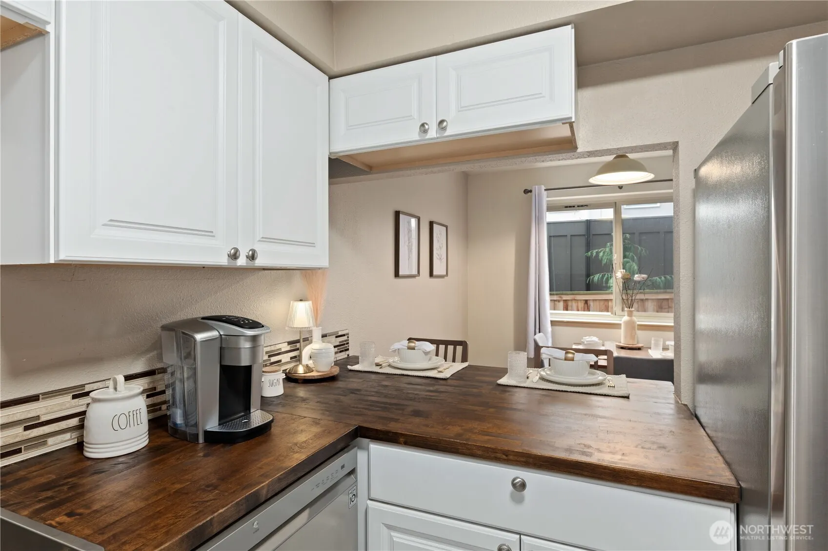 PRICE IMPROVEMENT – $15K DROP! Don’t miss out on this rare, ground-floor 2-bedroom, 1-bath condo in the heart of central Kenmore! Perfectly positioned near a vibrant selection of shops, restaurants, the Burke-Gilman Trail, HWY 522, & stunning Lake Washington. Enjoy coffee on the large covered deck, prep meals in the modernized kitchen, & get ready in the spacious, upgraded bathroom. Plus, you’ll have access to an onsite workout room, one reserved parking space in front of the unit, & a pet-friendly community. Step outside & embrace nature with a peaceful greenbelt backing the property & enjoy nearby outdoor recreation options just steps away. All this, within the highly-rated Northshore School District. Pre-inspected & NO Rental Cap!