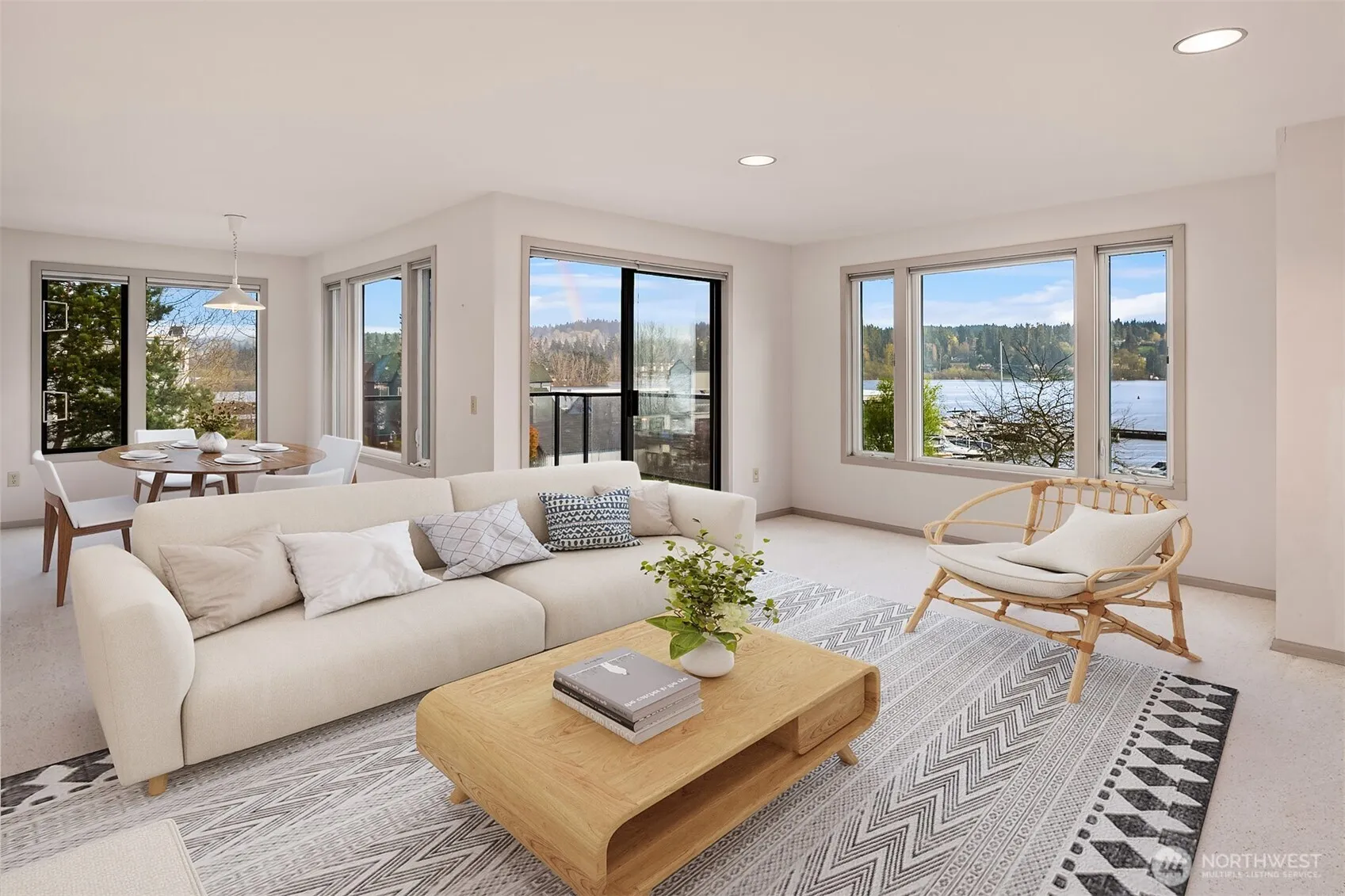 Lakefront living at its finest! Beautiful, top floor, two bed (and a large den/office), two bath condominium with south facing panoramic water views situated on the north shore of Lake Washington. Bright and spacious, perfect for cozy living and entertaining. This home is ready for your customization. Residents enjoy secure access, covered parking for 2 cars and a generous walk-in storage unit. Relax in the outdoor pool and hot tub, recreate on the Burke Gilman trail and at Tracy Owen Park & Pier. Enjoy world class lake living! Beautiful grounds, well managed HOA.