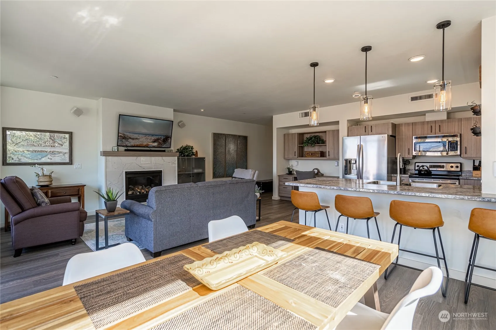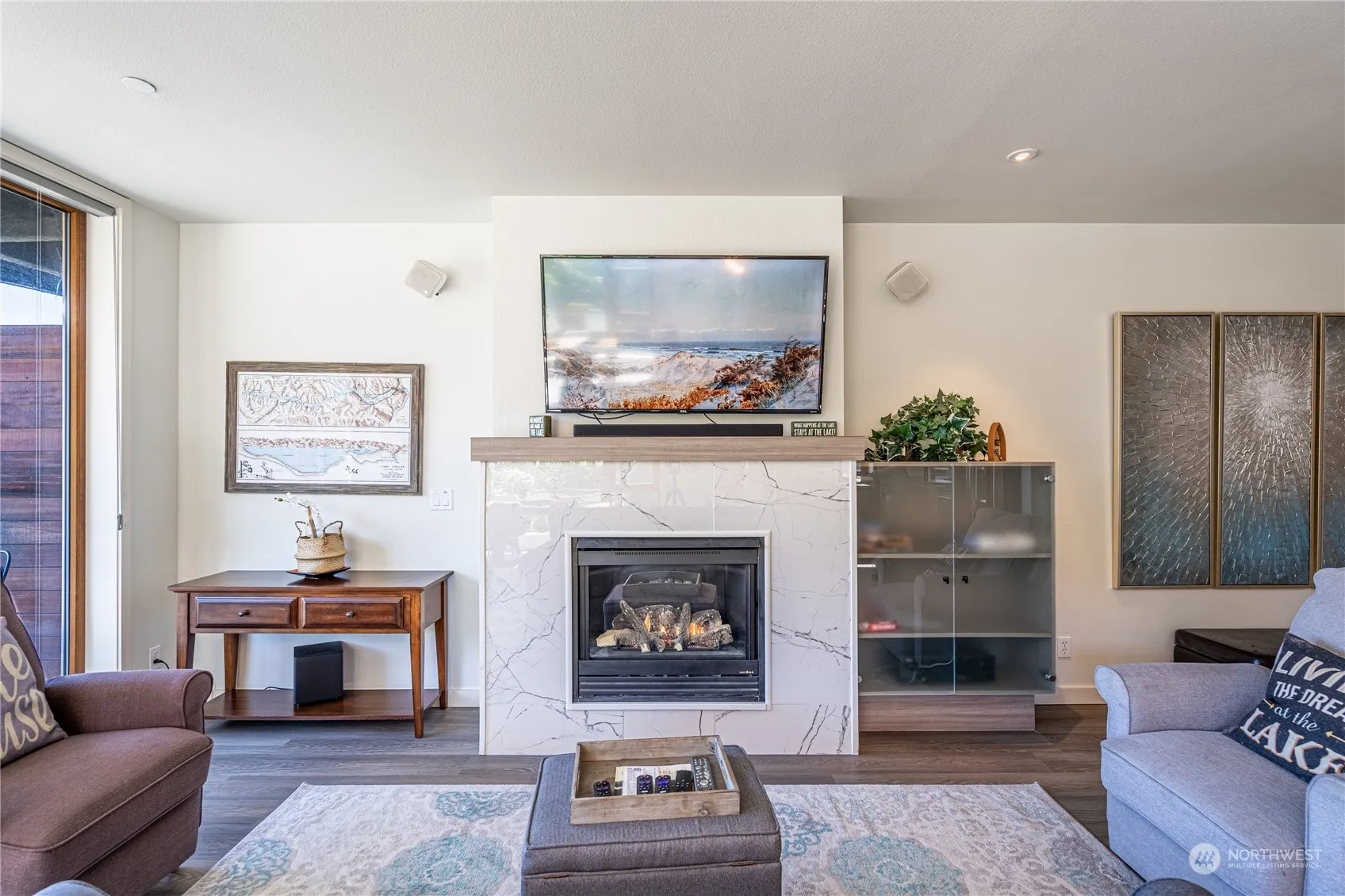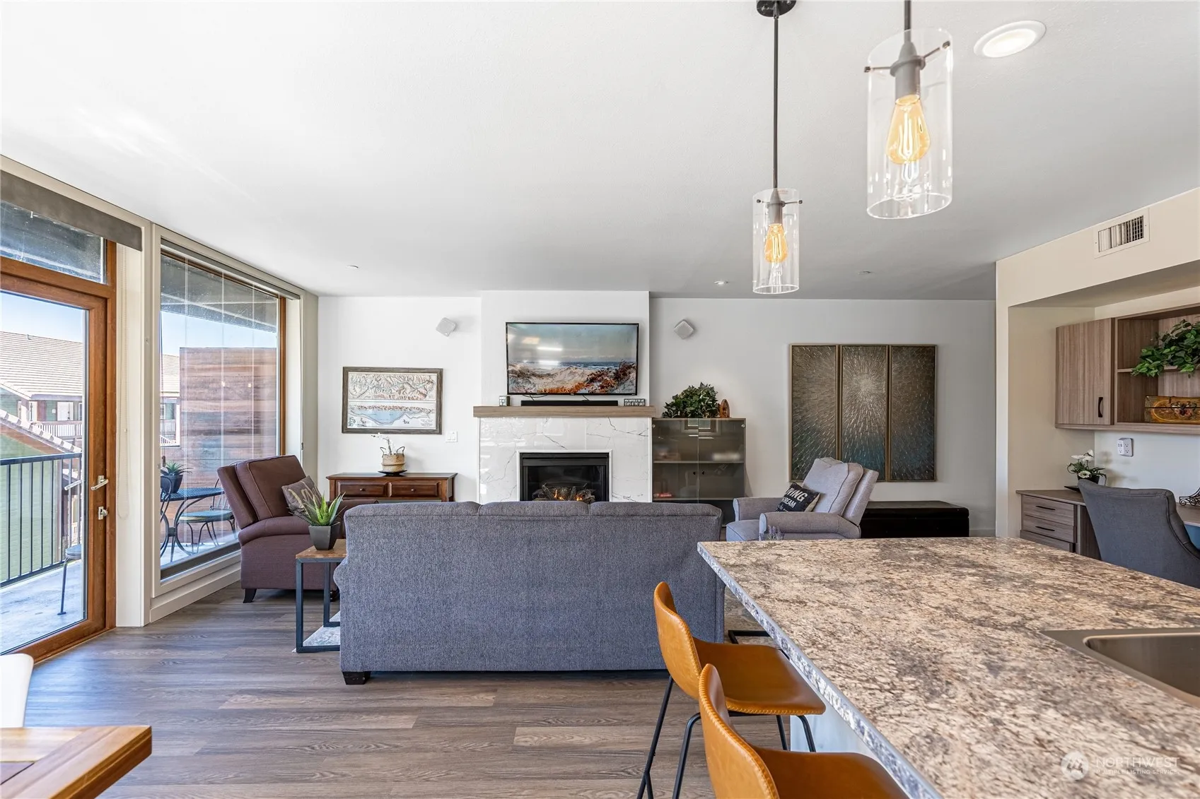 Stylish lakeside vacation rental at Chelan Resort Suites! This sprawling 1,200+ sq. ft. condo is the largest floorplan and hands down one of the finest condos available. Light & bright w/ floor-to-ceiling windows that highlight a renovated kitchen with breakfast bar & cozy living area. Enjoy lake vistas from the patio or unwind by the custom fireplace in this inviting space with modern lakeside decor. INCLUDES: 3 months of pre-paid HOA dues & comes fully furnished & ready to vacation rent! New appliances, flooring, paint, blinds, beds, TVs, lighting, full-size WD, and sleeps 6 guests. Year-round pool/spa, BBQ area, elevators, covered parking, in-house cleaners & E-key system perfect for Airbnb/VRBO. Great beach access & close to downtown!