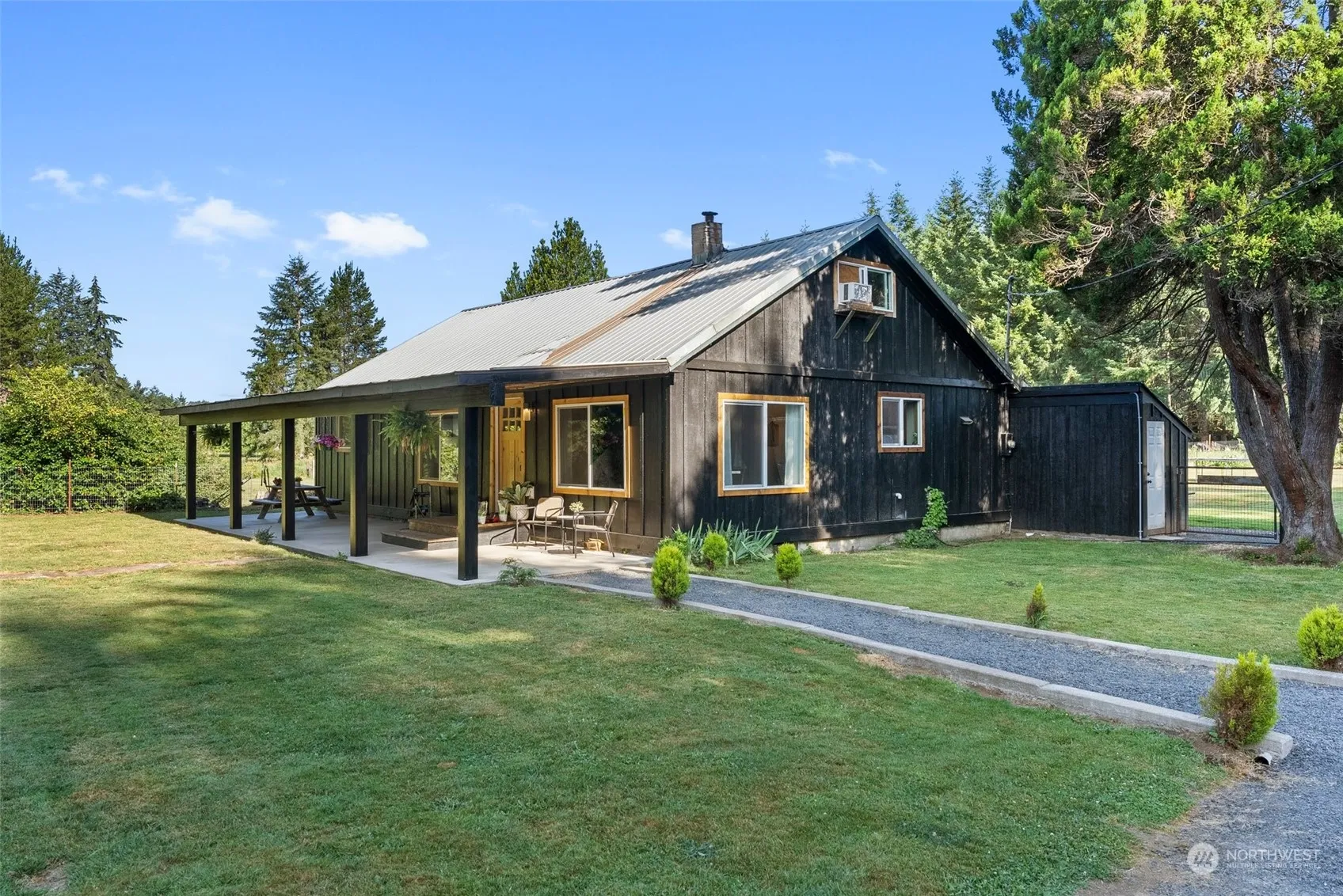 “Let’s Move to the Country” Into a stylish farmhouse sitting on a flat fenced and cross fenced 4 acres providing ample opportunities for a hobby farm with a 45×60 pole barn, chicken coop, goat house, detached garage, fenced garden area, fenced back yard, fruit trees, and the covered front and back porches beckon for relaxation. This 3-bedroom home has an extra room/office/or bedroom, it boasts over 1700 sqft, 2 updated bathrooms, a wonderful updated kitchen, cute woodstove with a tile surround, living room, dining room and new paint, lighting and floor coverings throughout. It’s the perfect homestead for someone who embraces the quiet country life. The septic system was installed in 2004 and Internet is provided by TDS.