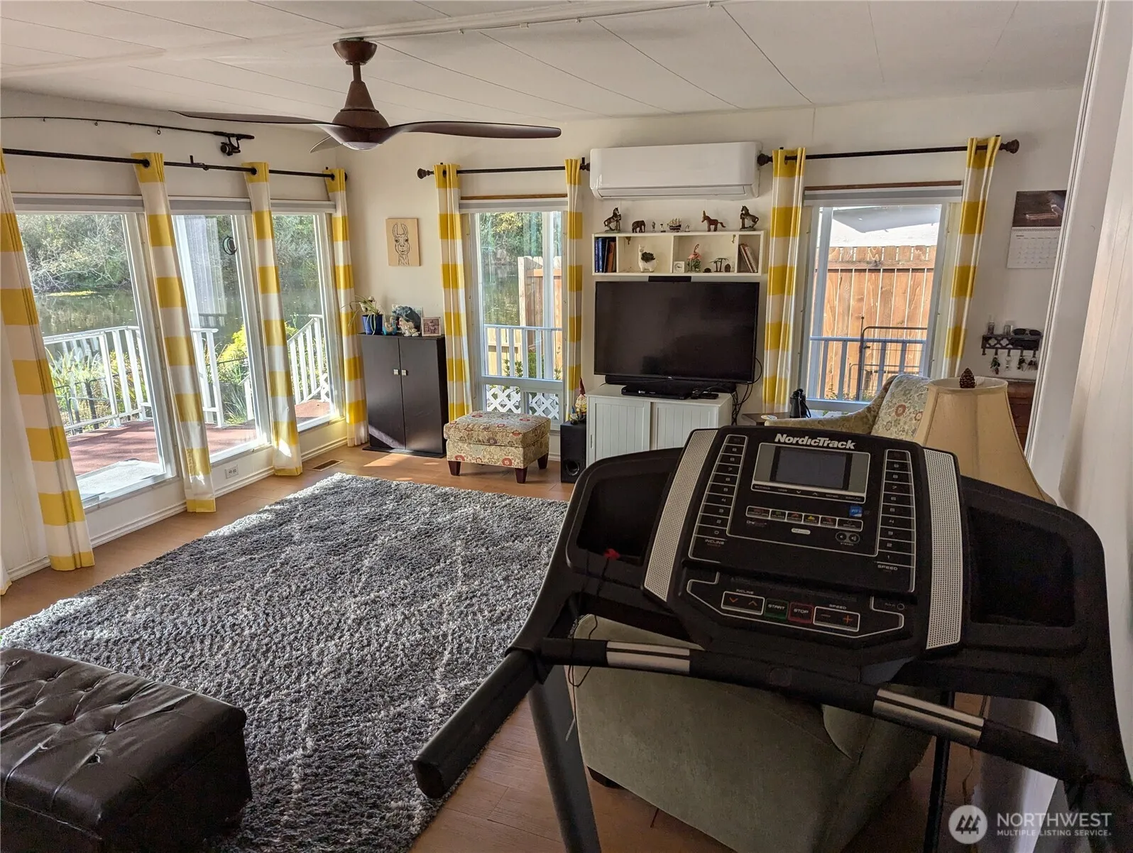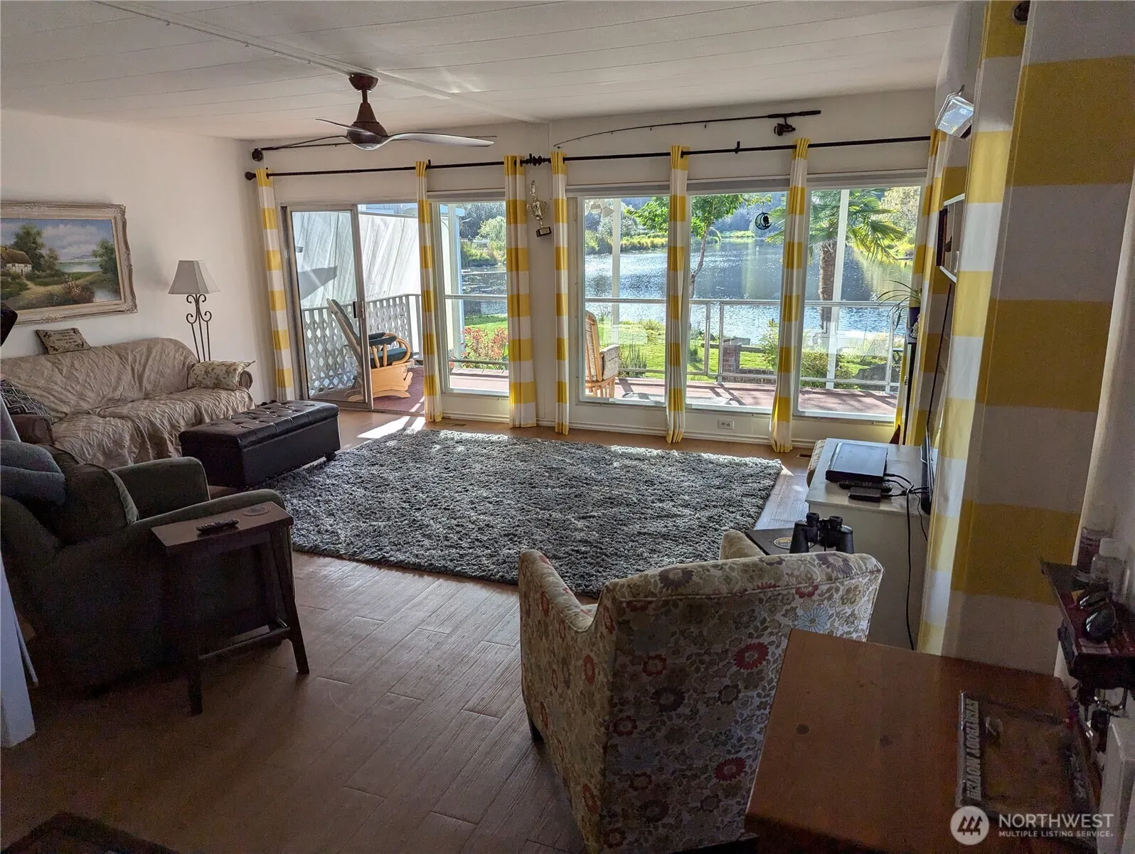 1,180 square feet, 2 bedroom, 2 bath double-wide mobile home with panoramic Sammamish River views and a private dock in a 55+ park Nearly floor-to-ceiling windows facing the river. Wrap-around covered porch Covered carport. New heat pump, heat-pump water heater, Whole-house electrical surge protection system, PEX-A water supply plumbing, under-floor insulation and barrier membrane, ground vapor barrier, HVAC crossover duct with new insulation, Entire HVAC duct system professionally sealed, Dual-glazed windows, Drapes, Insulating window blinds, Upgraded insulation, New light fixtures, New kitchen cabinets, sink, faucet, garbage disposal and tile countertops. Walk-in pantry and Master closet. EPDM membrane roof. Storage shed.