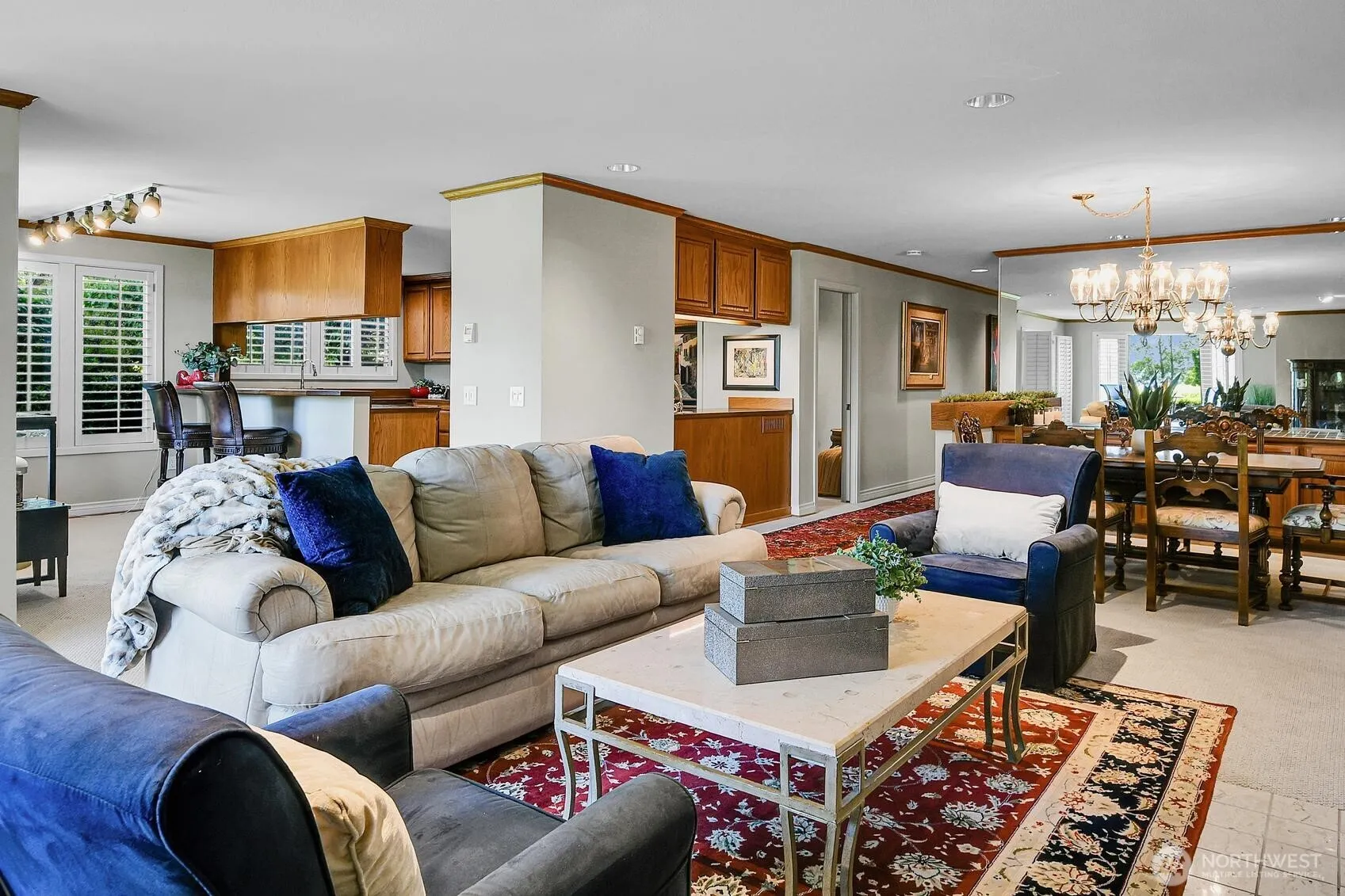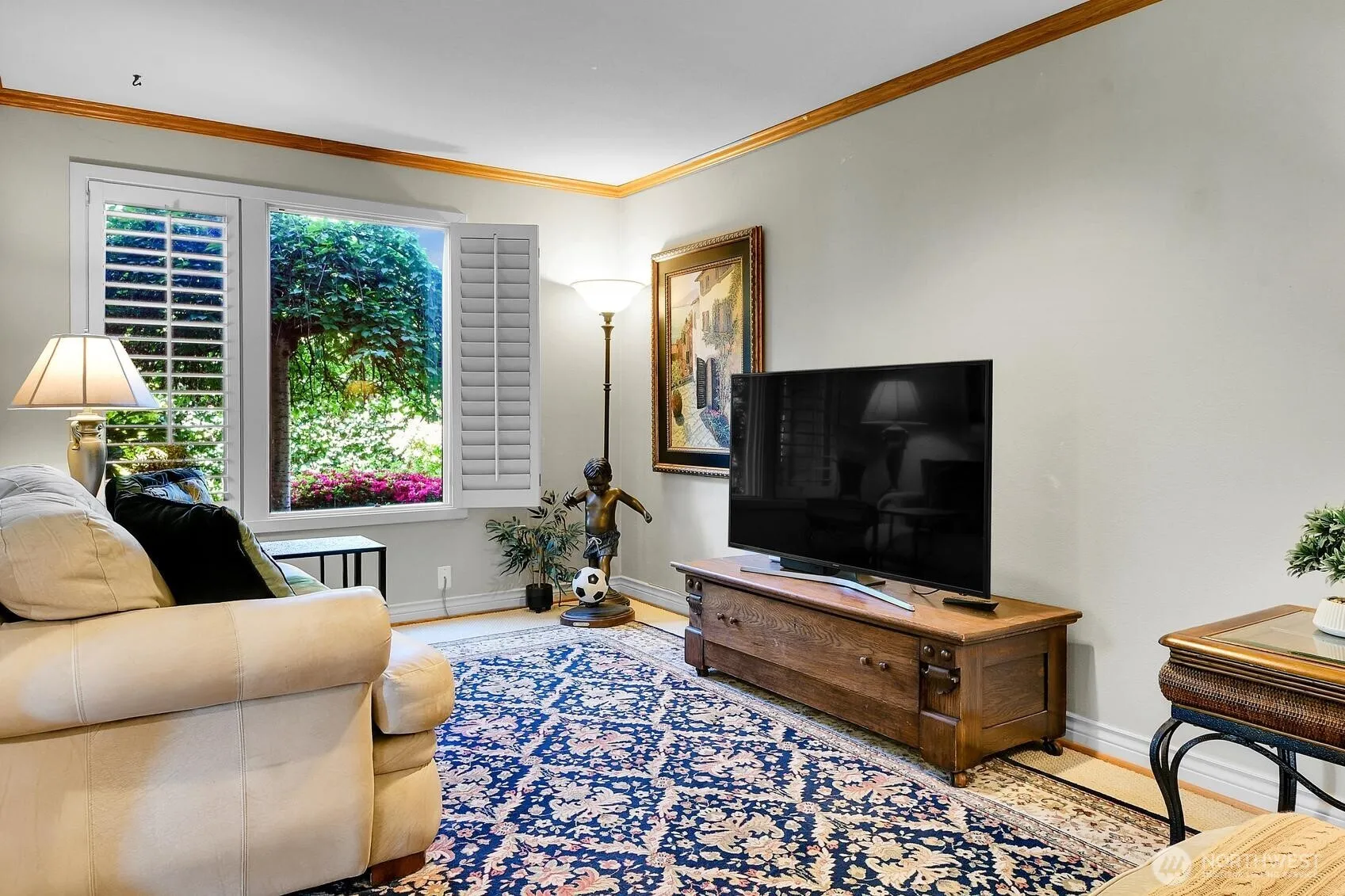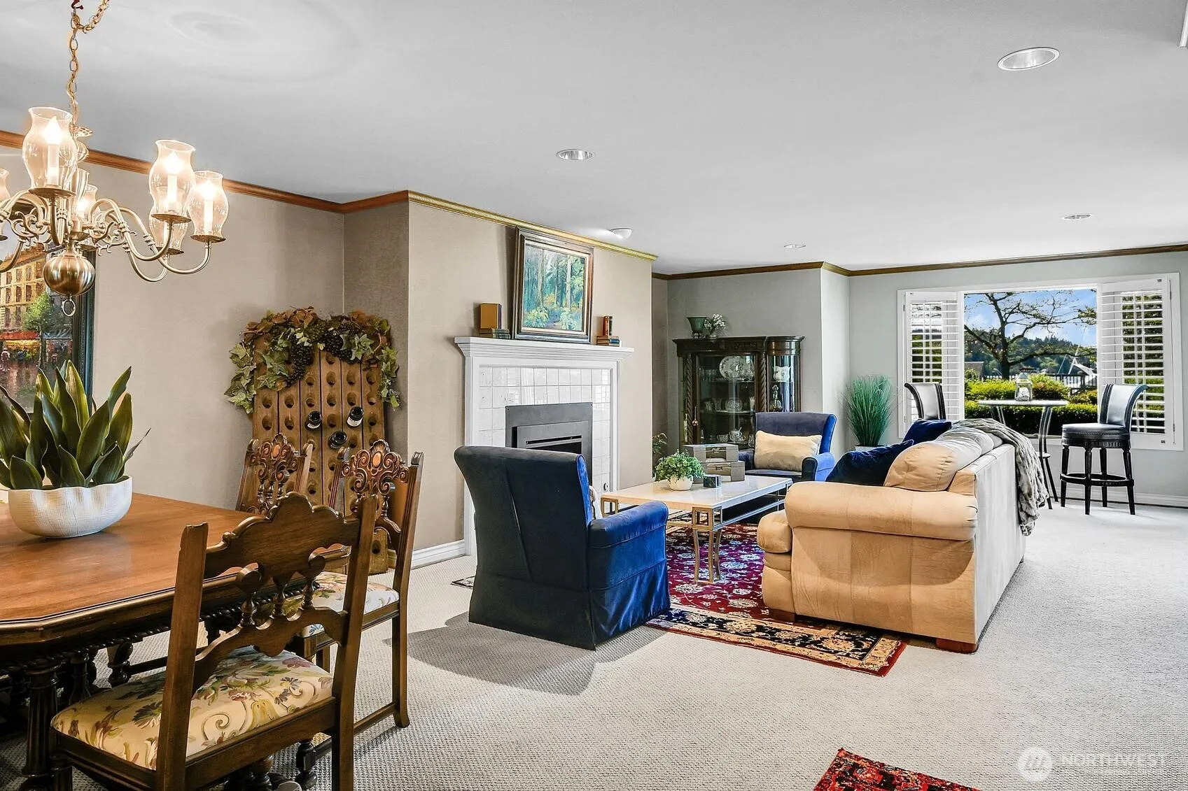 The tiled entry introduces beautifully what this home has to offer. Enjoy one level living in this elegant ground floor unit with no stairs from the garage to the front door. This 1,970 sq ft home offers 2 bedrooms & 2 luxurious bathrooms plus an additional finished room/den. Primary bdrm has a lovely sitting area with bookshelves & a cozy fireplace. The bathroom has a soaking tub, shower and a walk-in closet that completes this area. The dining area opens to the inviting formal living room with a gas fireplace, poetic views of Lake Washington and access to the entertainment sized patio. The kitchen is large with lots of cabinets and loads of counter space with a wet bar. Close to the pool, hot tub and the Burke Gilman trail. Welcome home!