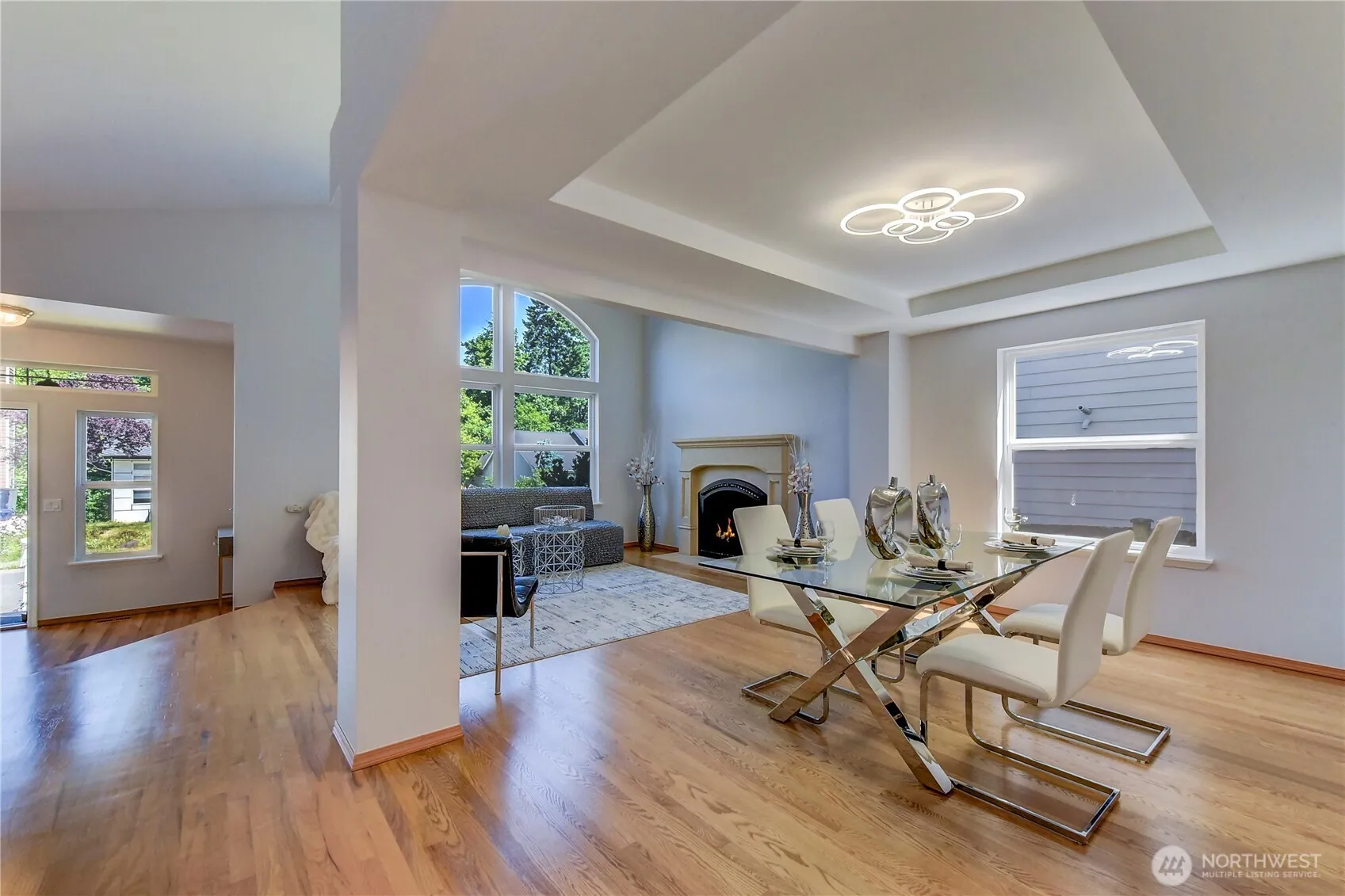 Stunning well-loved 4BR/2.5BA on quiet cul-de-sac! Top Northshore schools. Main Level: Wide foyer opens to living room with high ceilings & large windows. Updated kitchen (2023): Viking range, quartz, Bosch dishwasher, walk-in pantry. 2 gas fireplaces in the Living and Family room, refinished oak hardwoods (2023), Formal Dining area. Primary suit: granite, soaking tub, walk-in shower, heated floors. bedrooms on a top floor, 3 beds, skylights in bathrooms & laundry. Upstairs laundry room with Miele washer & dryer. TimberTech deck with the hot tub overlooks landscaped yard. Smart lights, thermostat, keyless entry, irrigation. Whole-house generator, central air condition. Large 2-car garage (615sf), fire pit, newer roof (2014). No HOA.